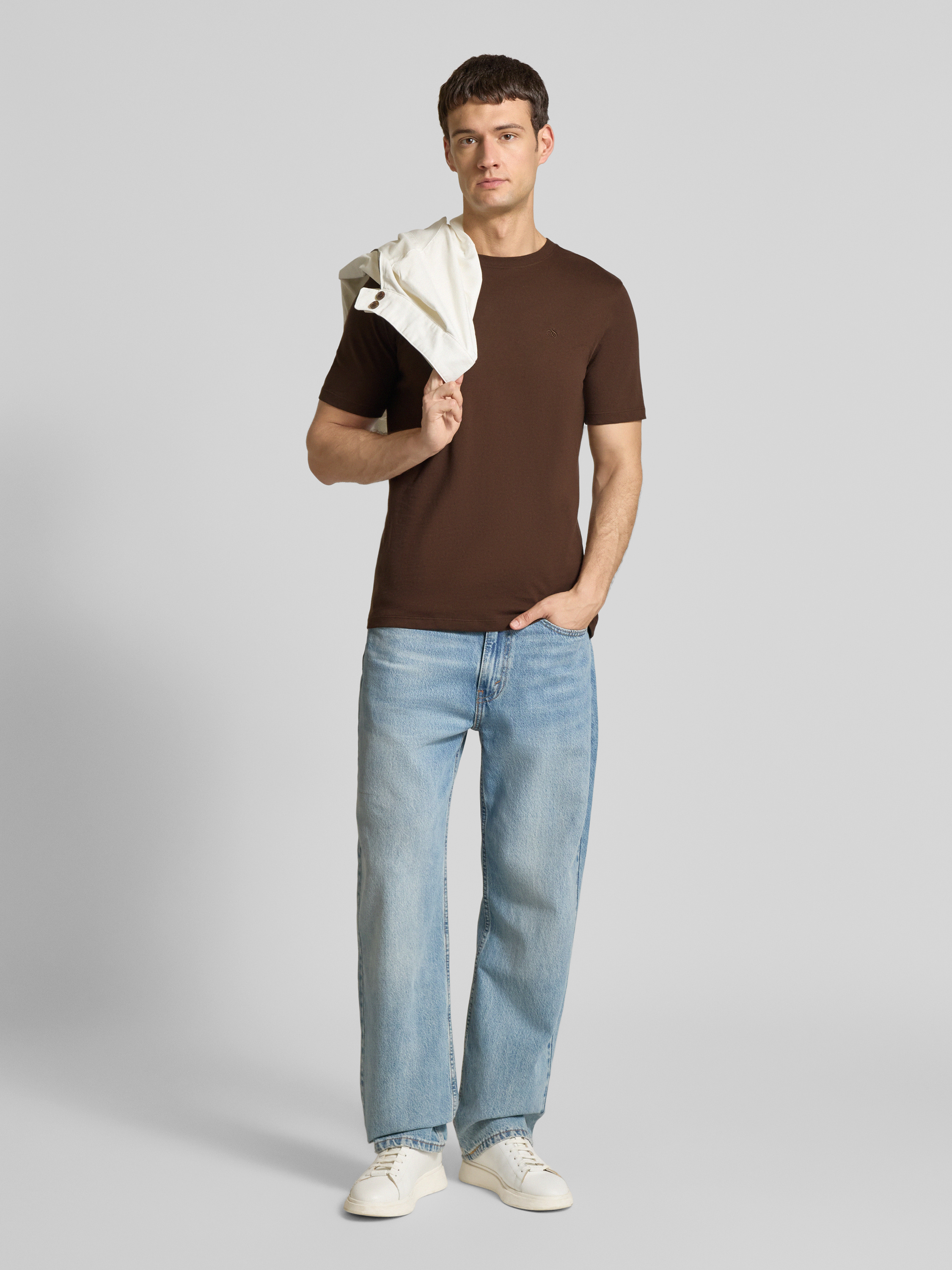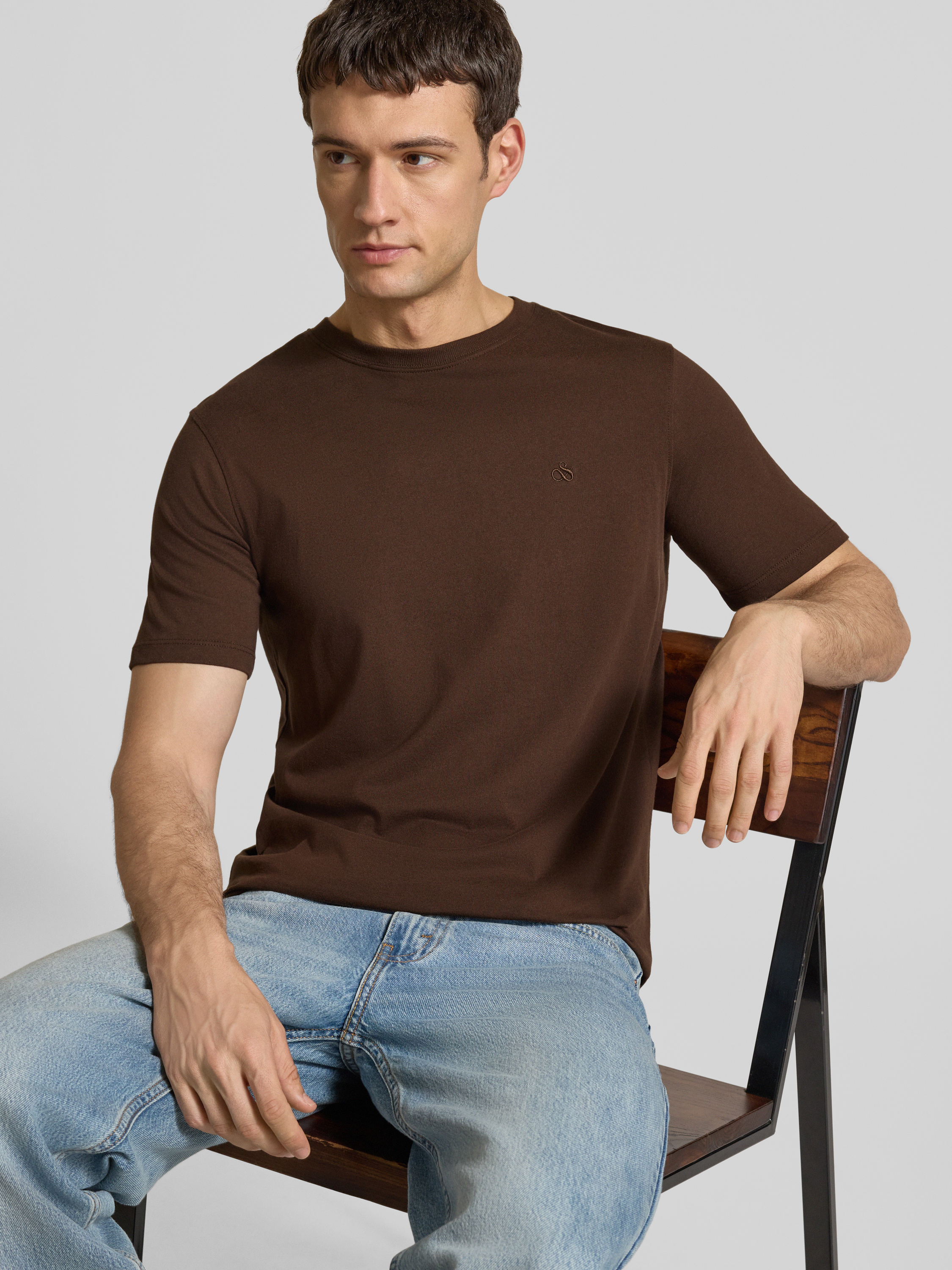 Scotch & SodaRegular Fit T-Shirt mit Label-Stitching in dunkelbraun