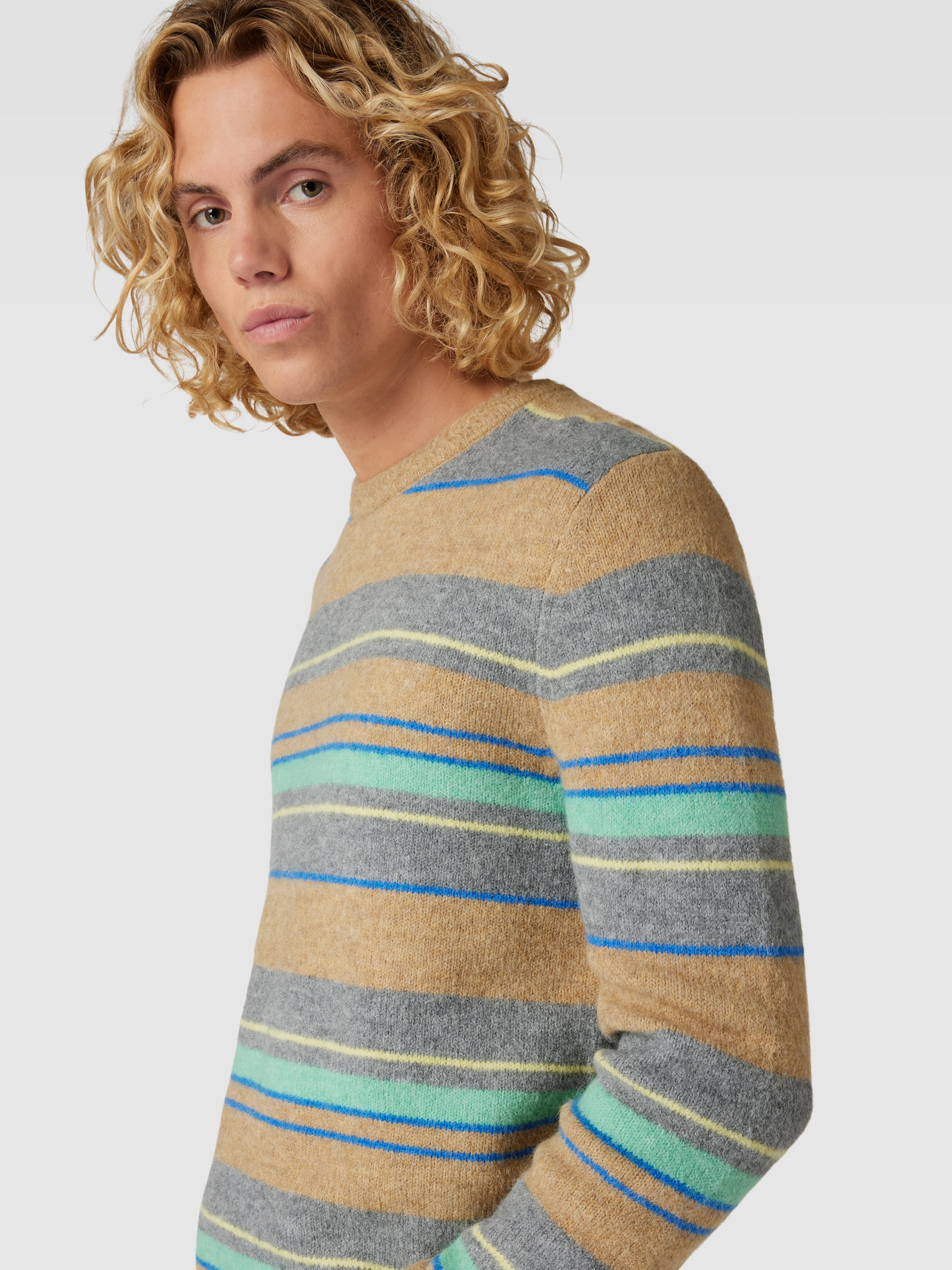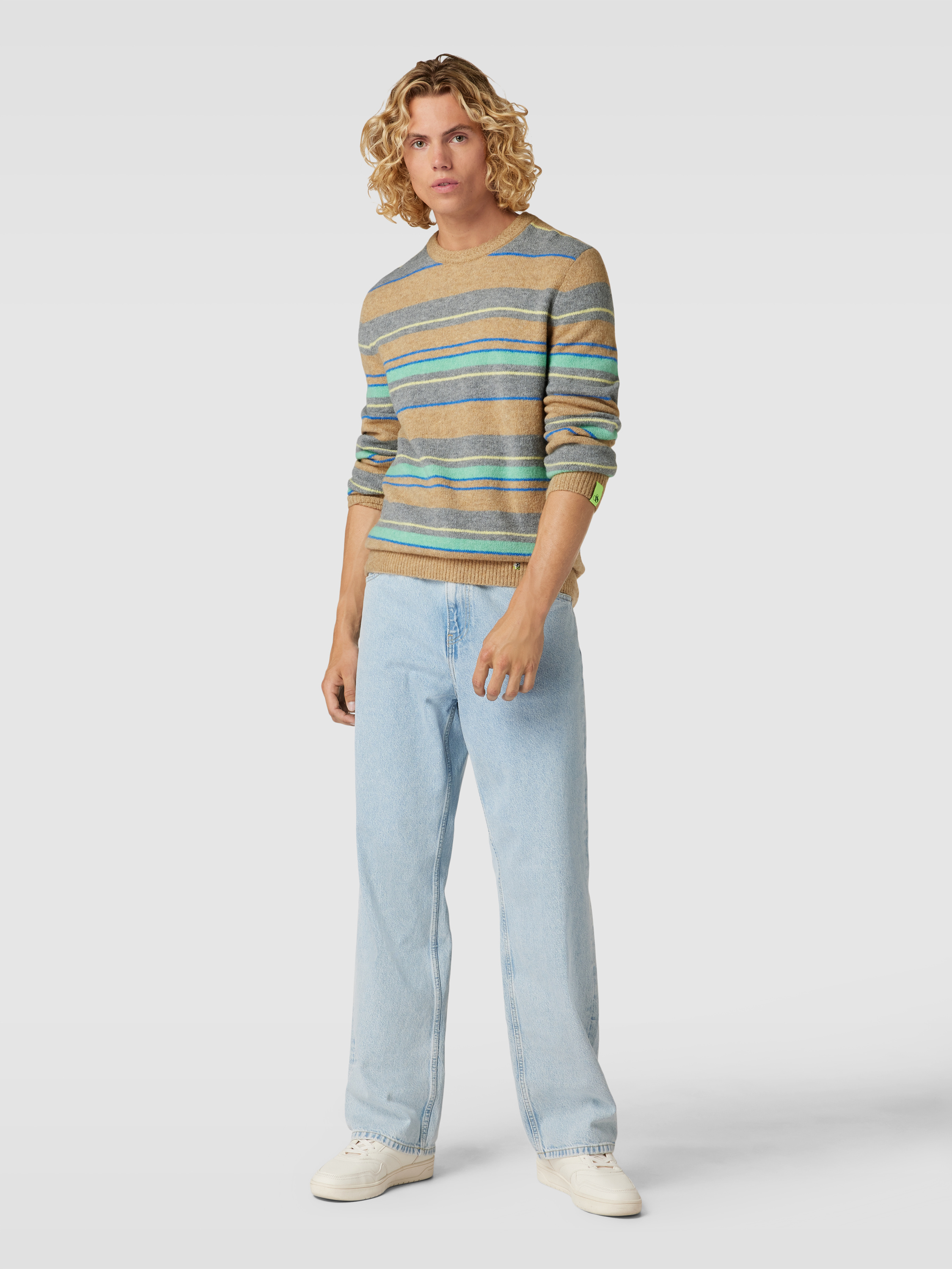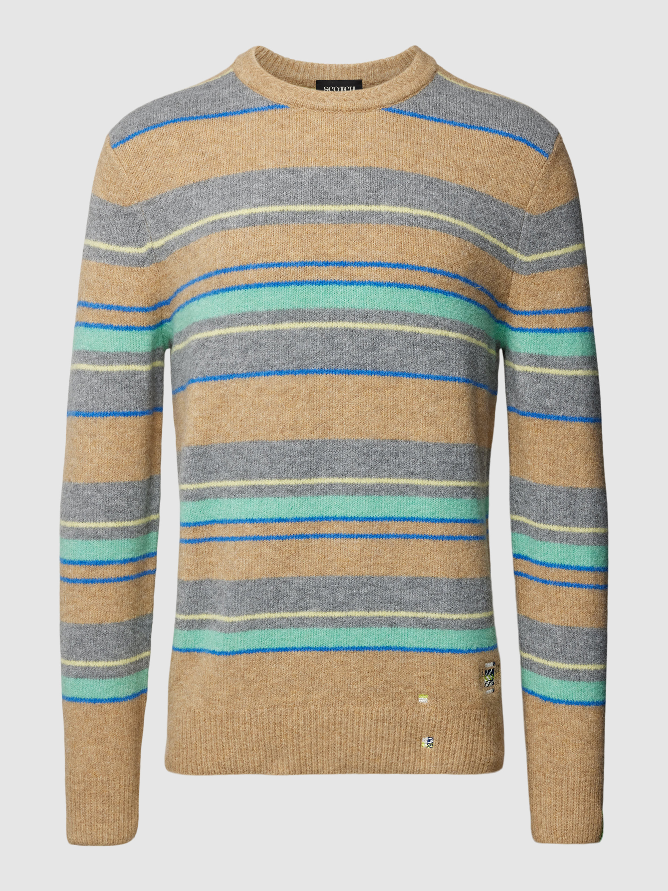 Der Herren Strickpullover von Scotch & Soda kombiniert einen geraden Schnitt mit einem lebhaften Streifenmuster, was eine vielseitige Verwendung ermöglicht. Der Material-Mix mit Woll-Anteil sorgt für angenehme Wärme und Komfort. Ein klassischer Rundhalsausschnitt rundet das zeitlose Design ab.
