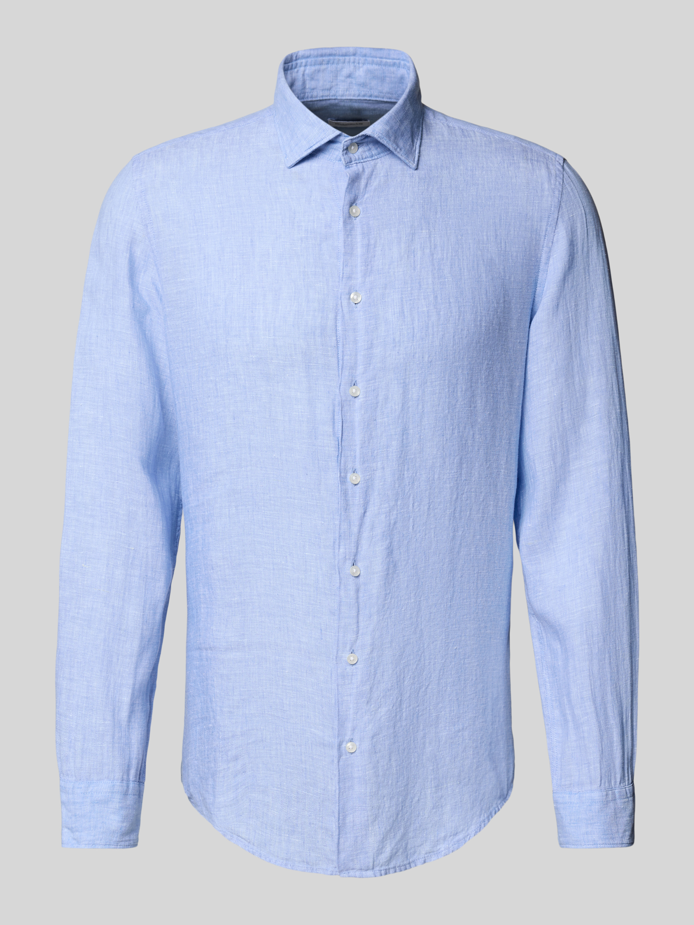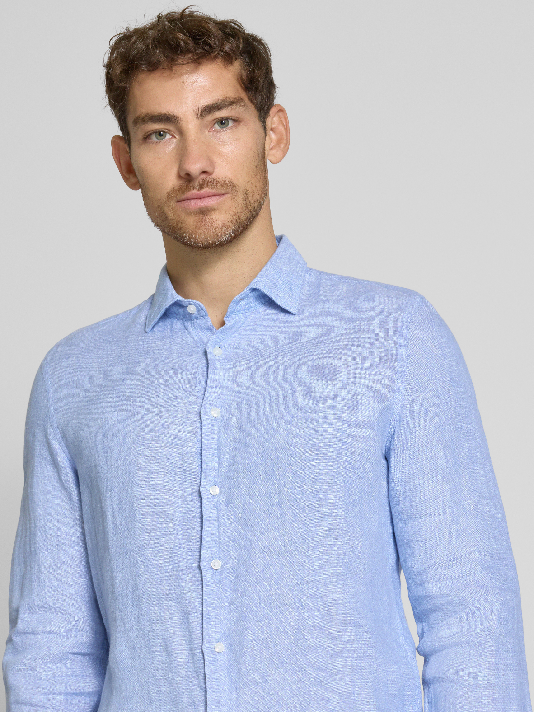 SEIDENSTICKERSlim Fit Business-Hemd aus Leinen mit Kentkragen in bleu