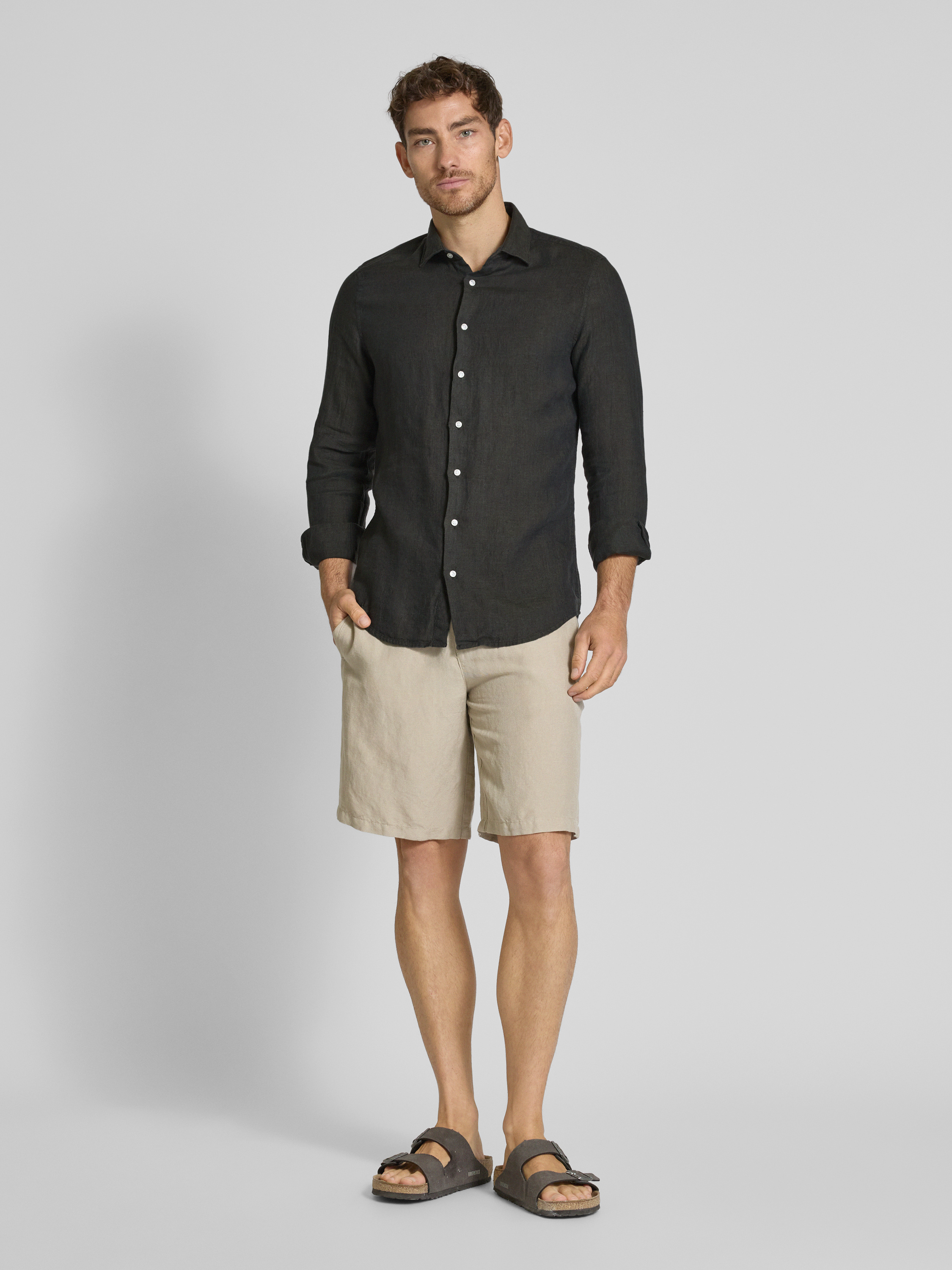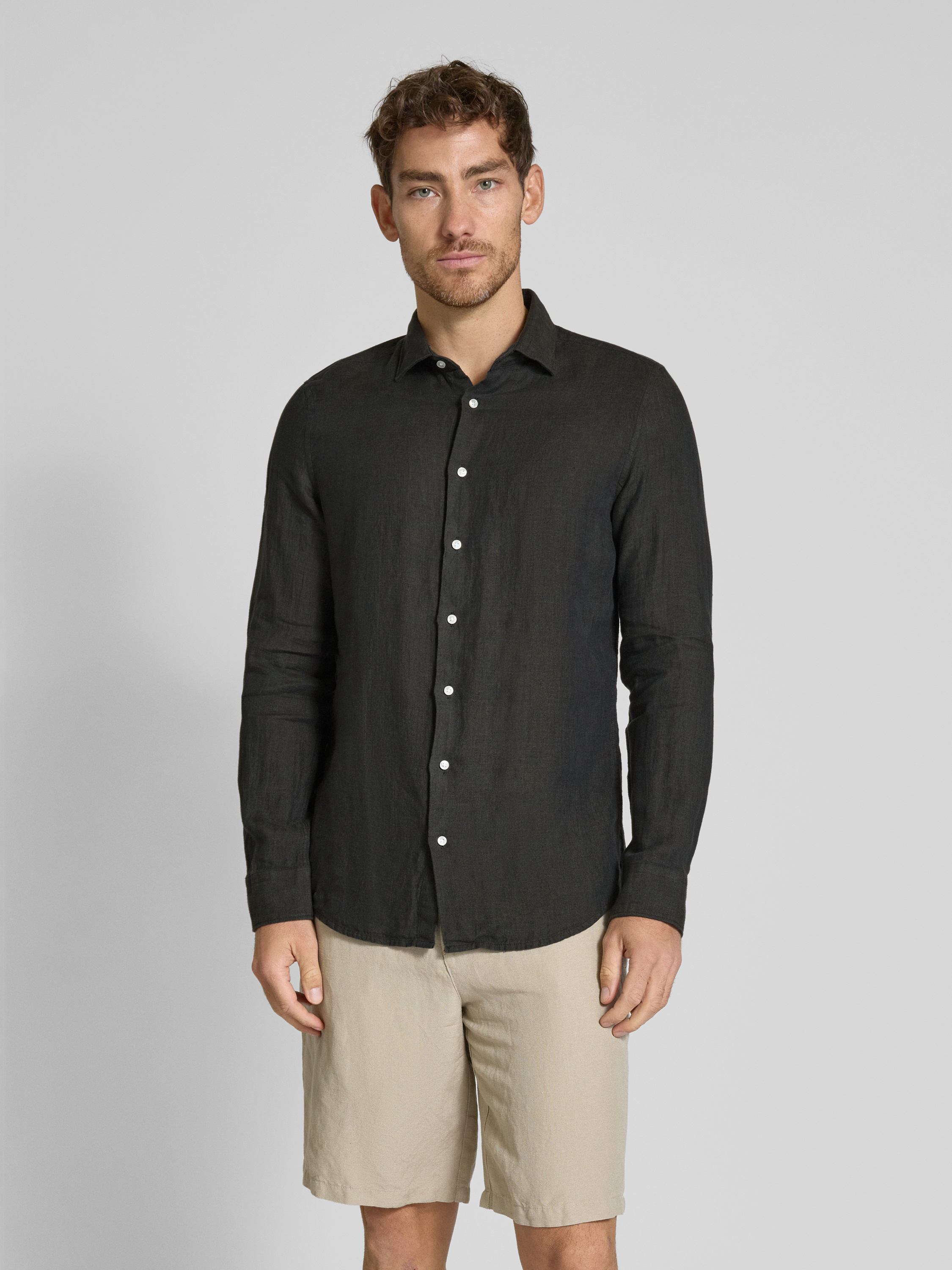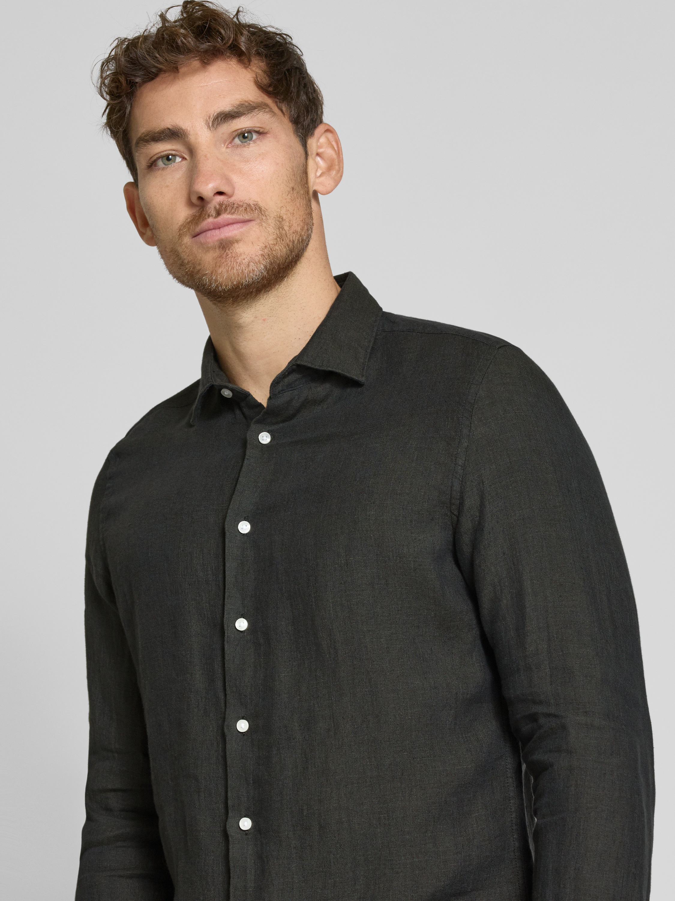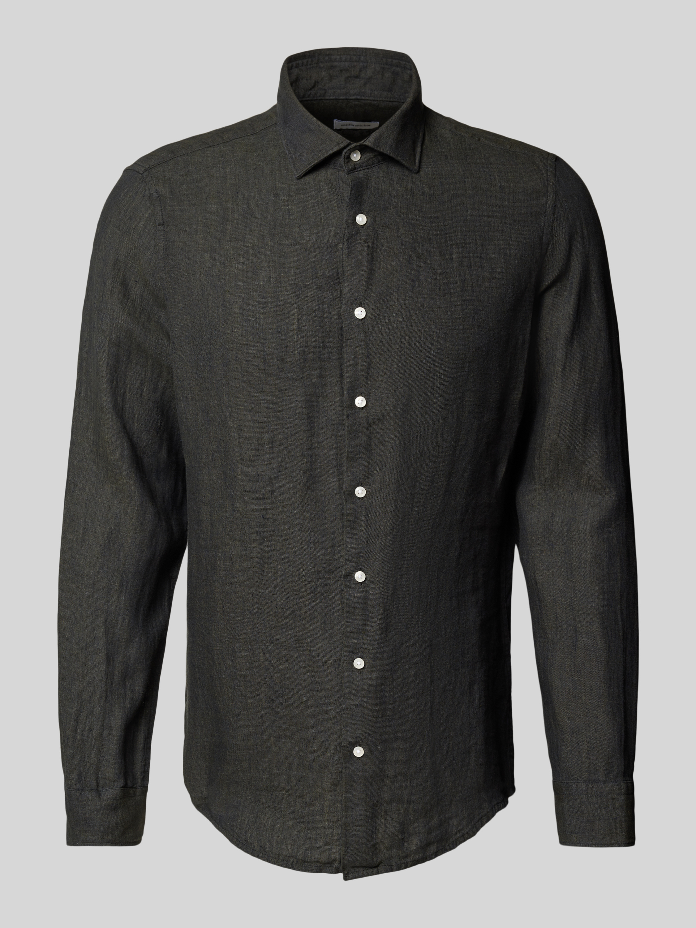 SEIDENSTICKERSlim Fit Business-Hemd aus Leinen mit Kentkragen in oliv
