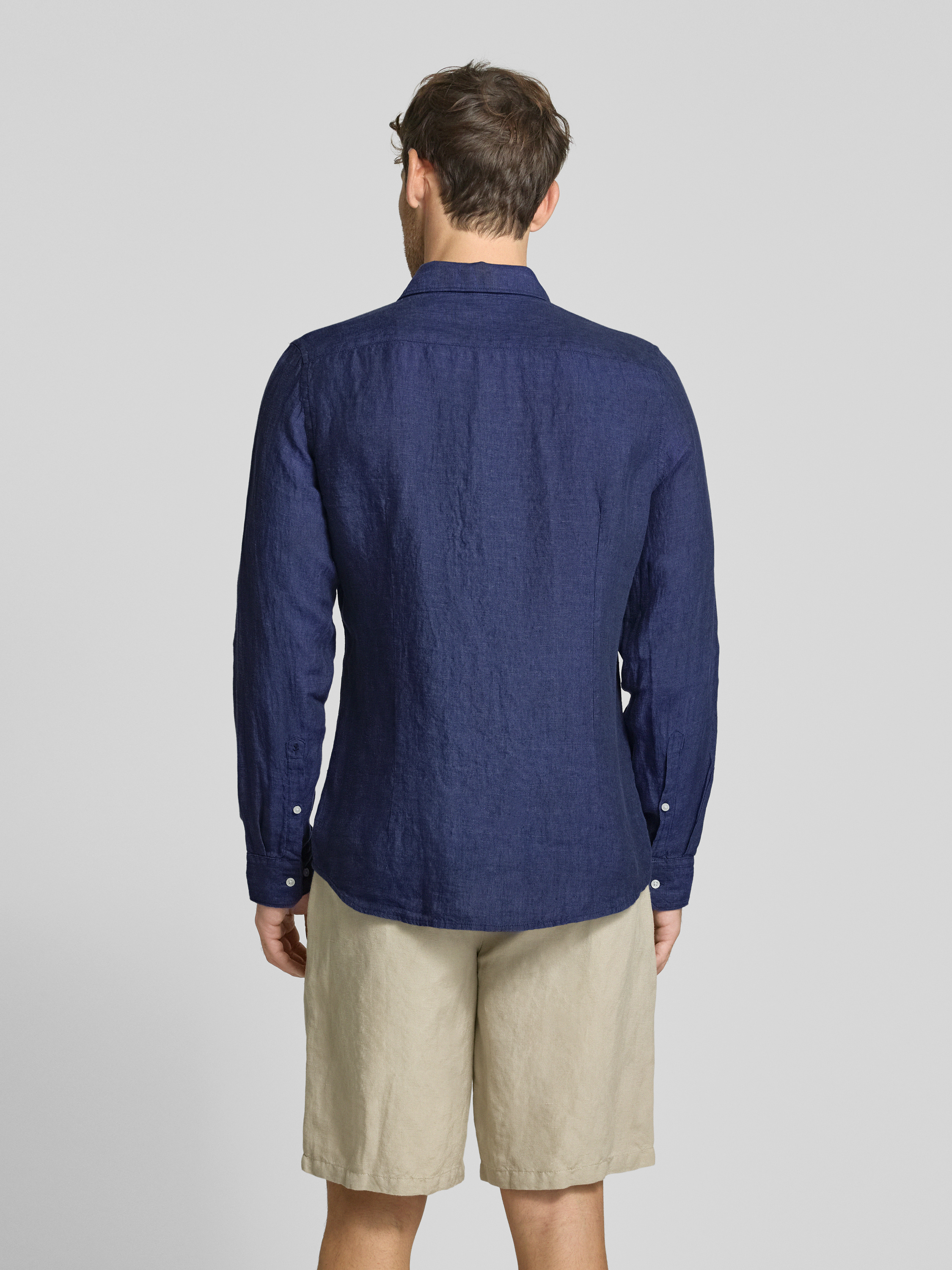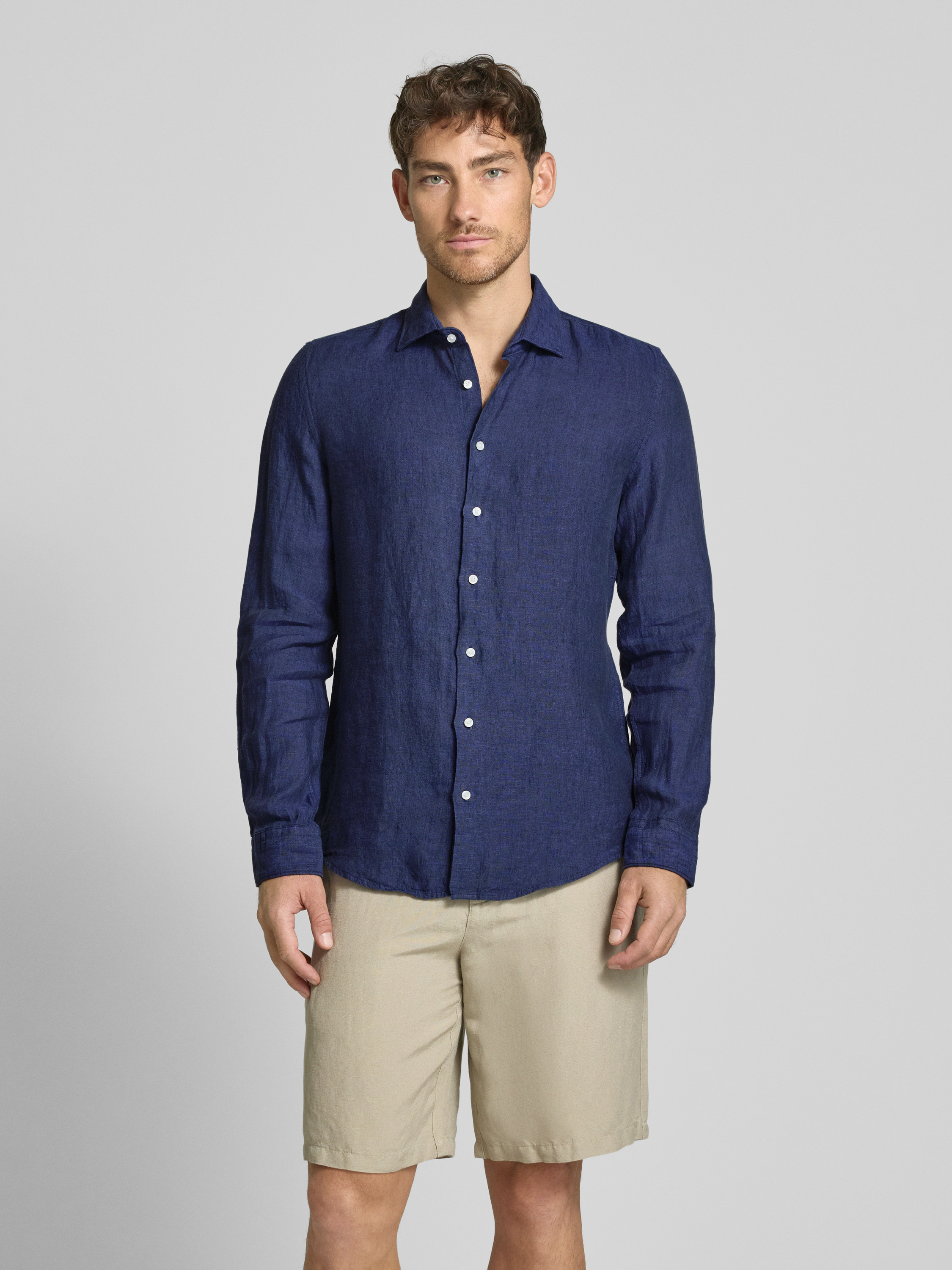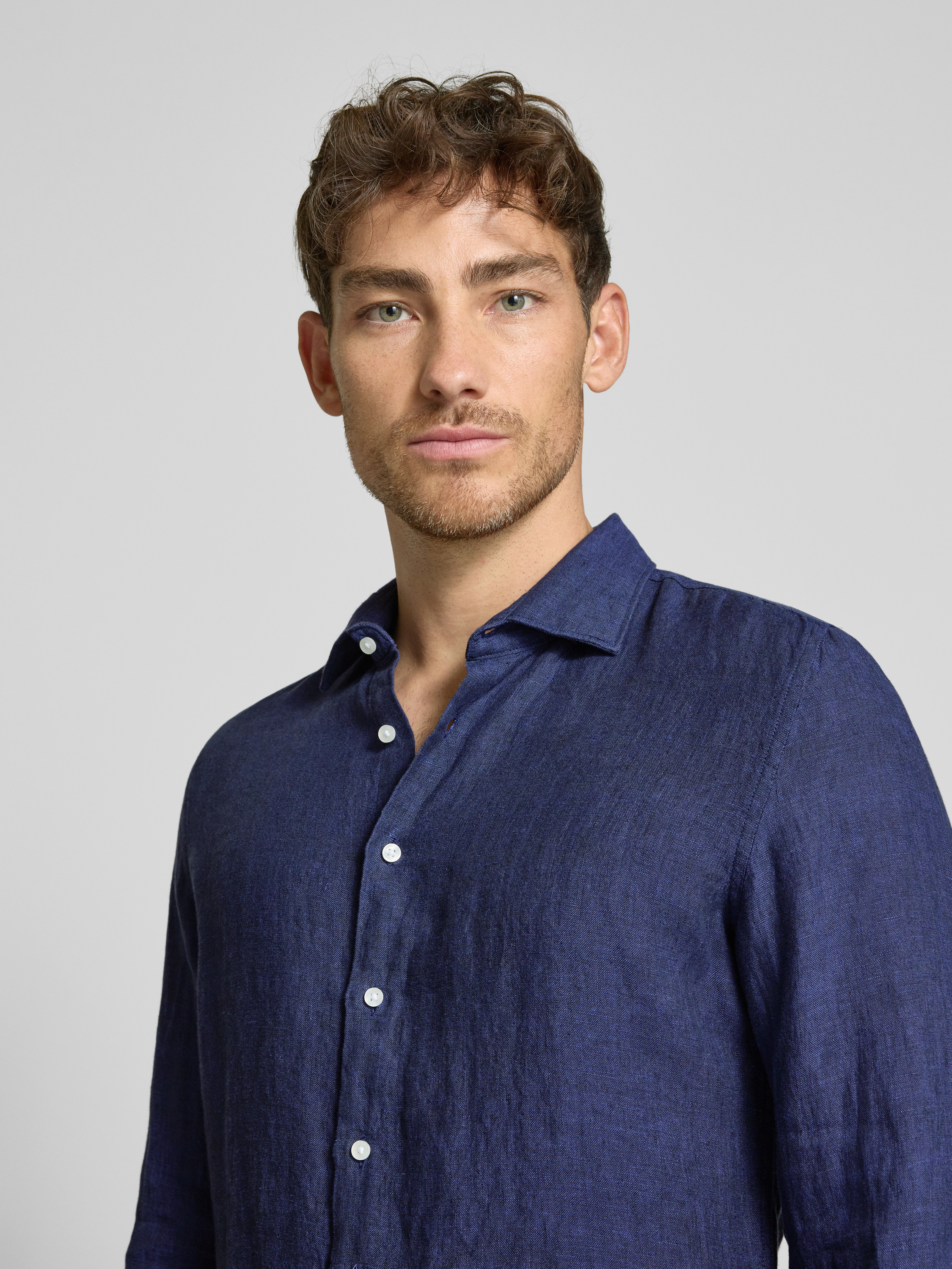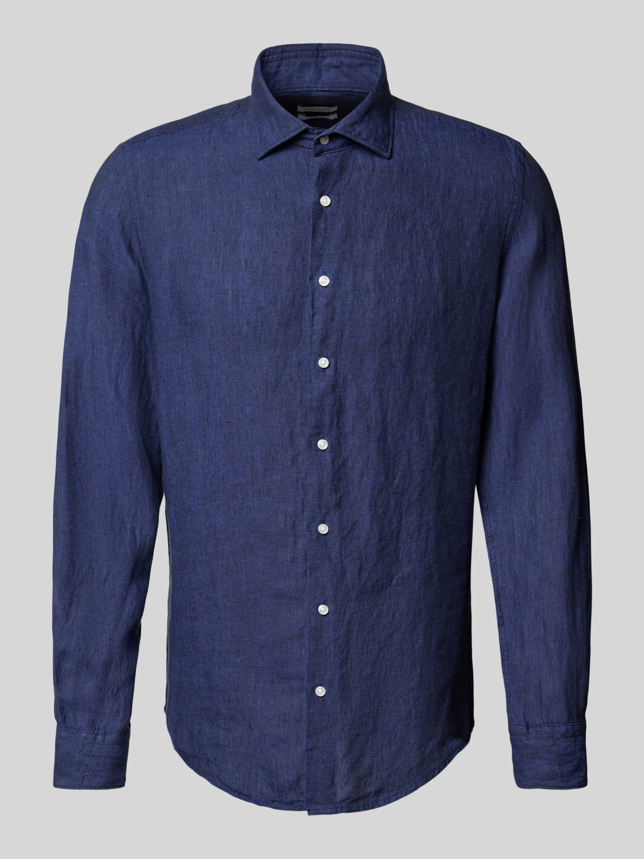 SEIDENSTICKERSlim Fit Business-Hemd aus Leinen mit Kentkragen in royal