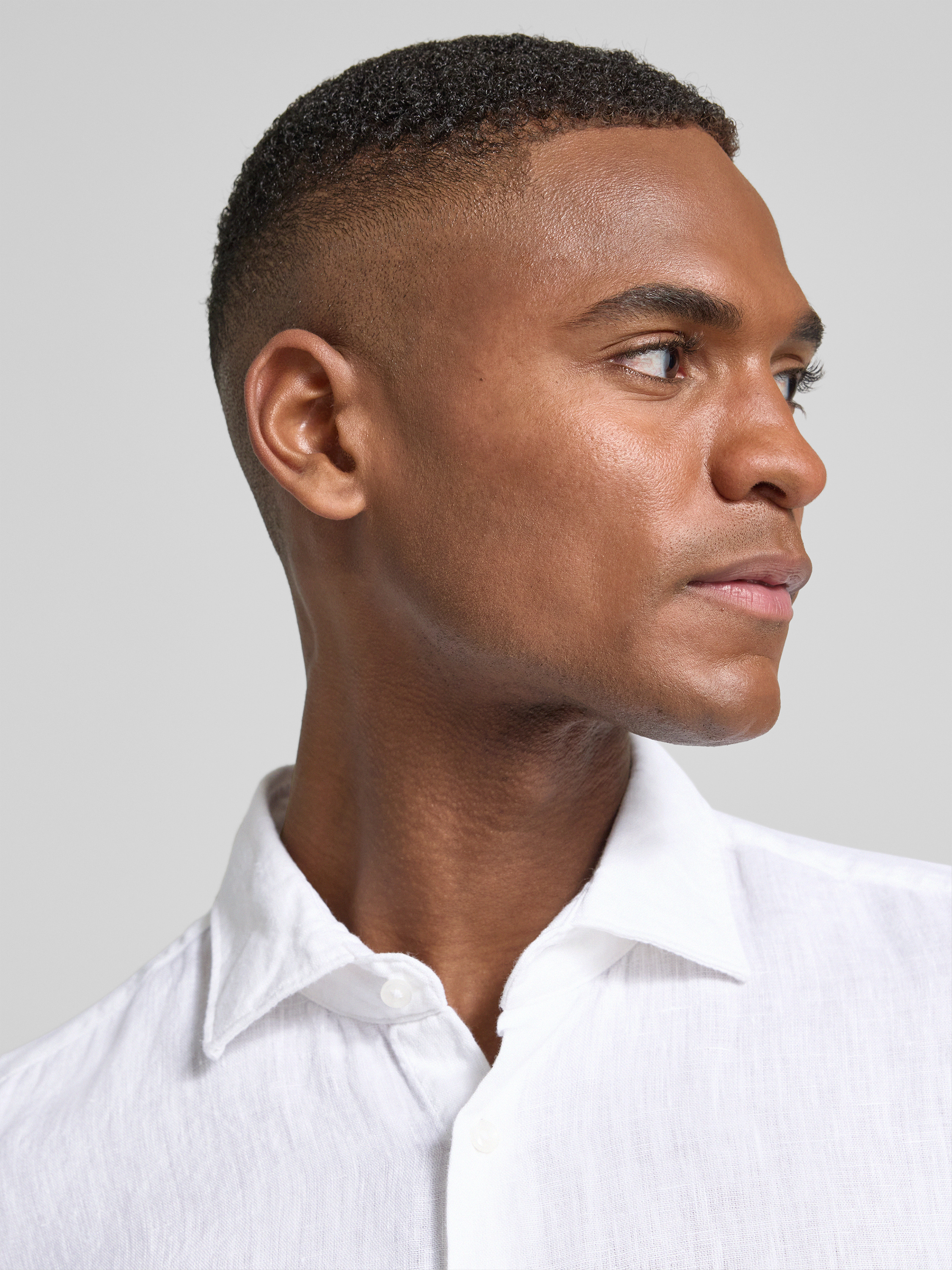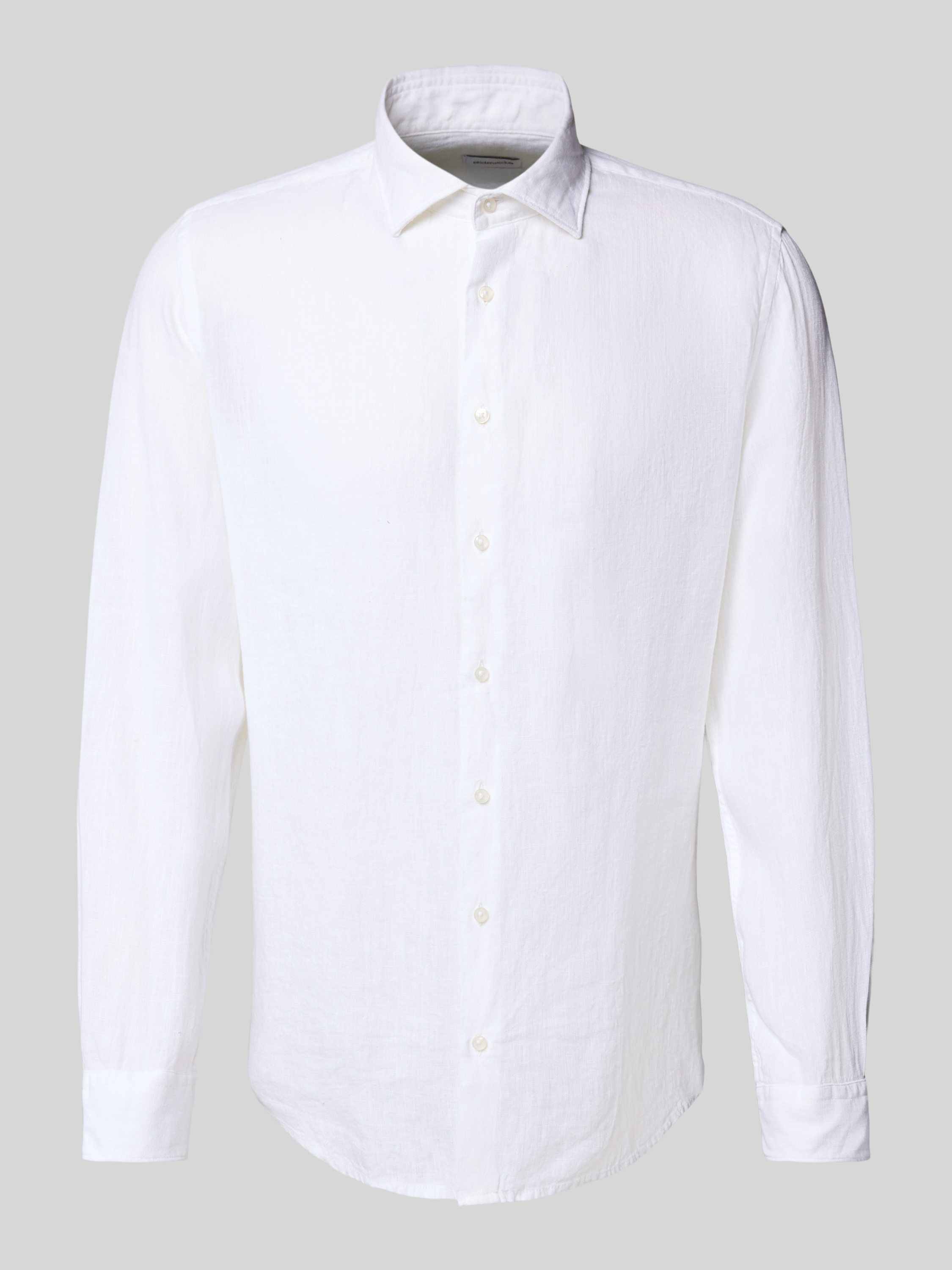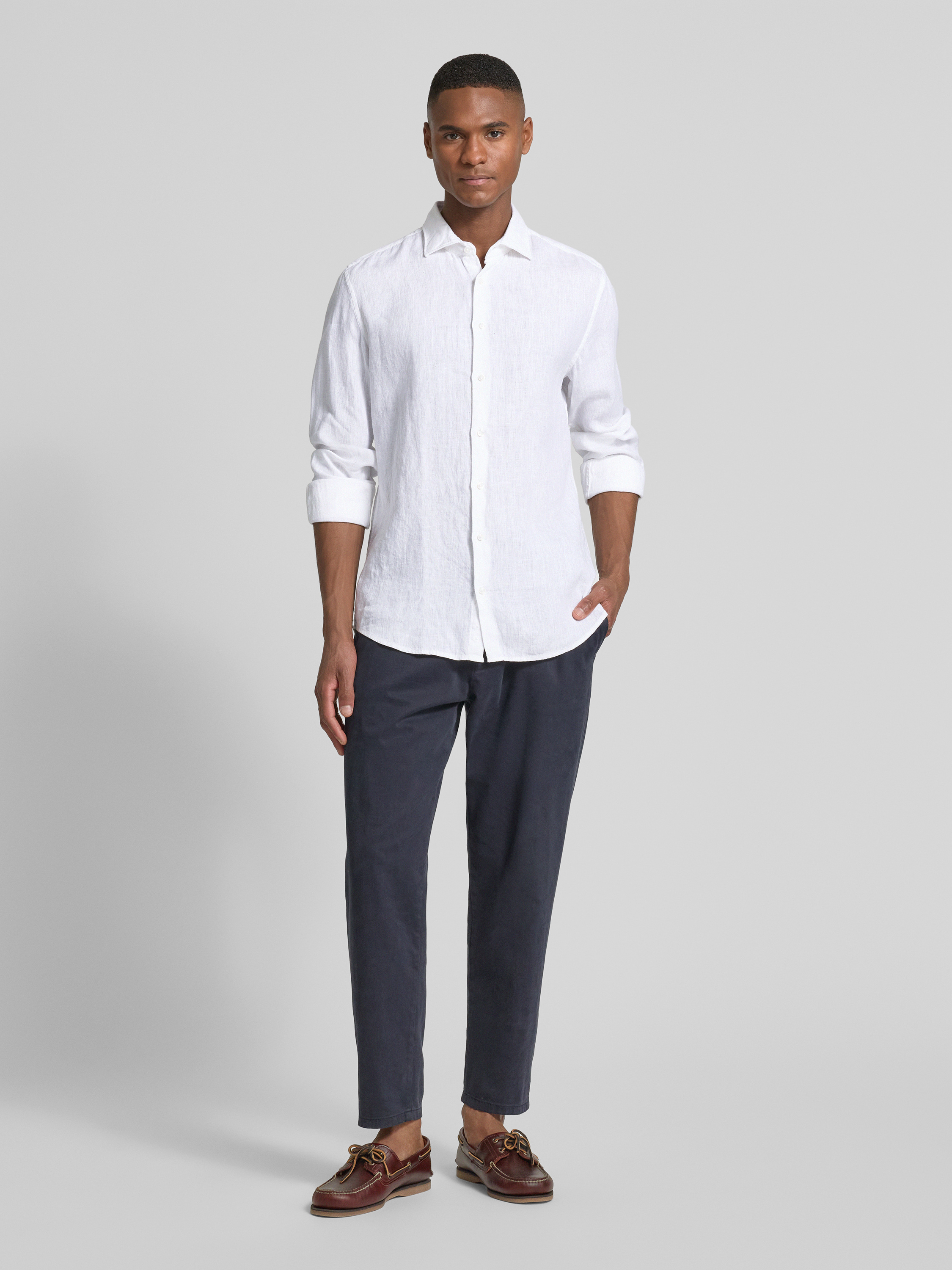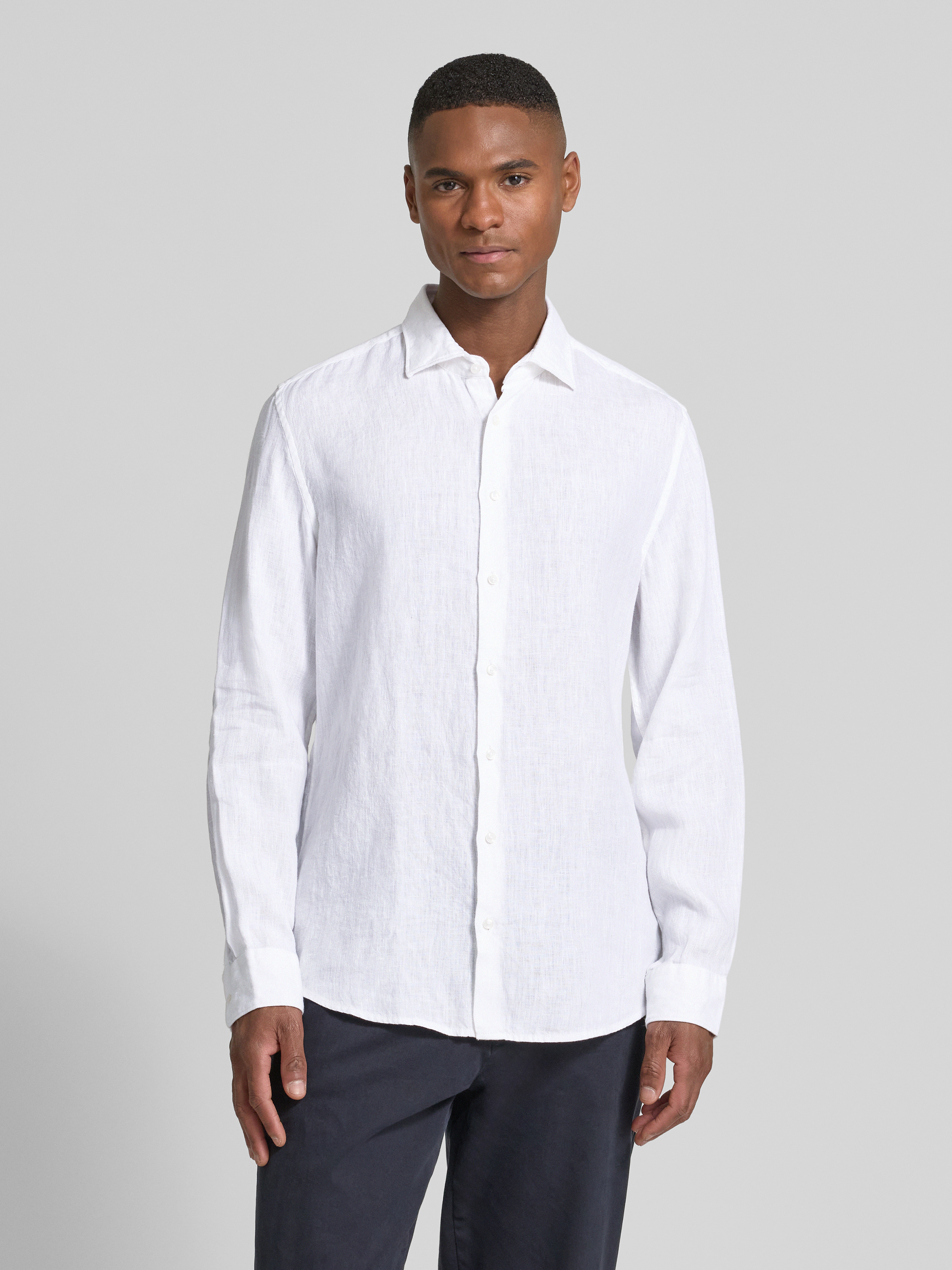 SEIDENSTICKERSlim Fit Business-Hemd aus Leinen mit Kentkragen in weiss