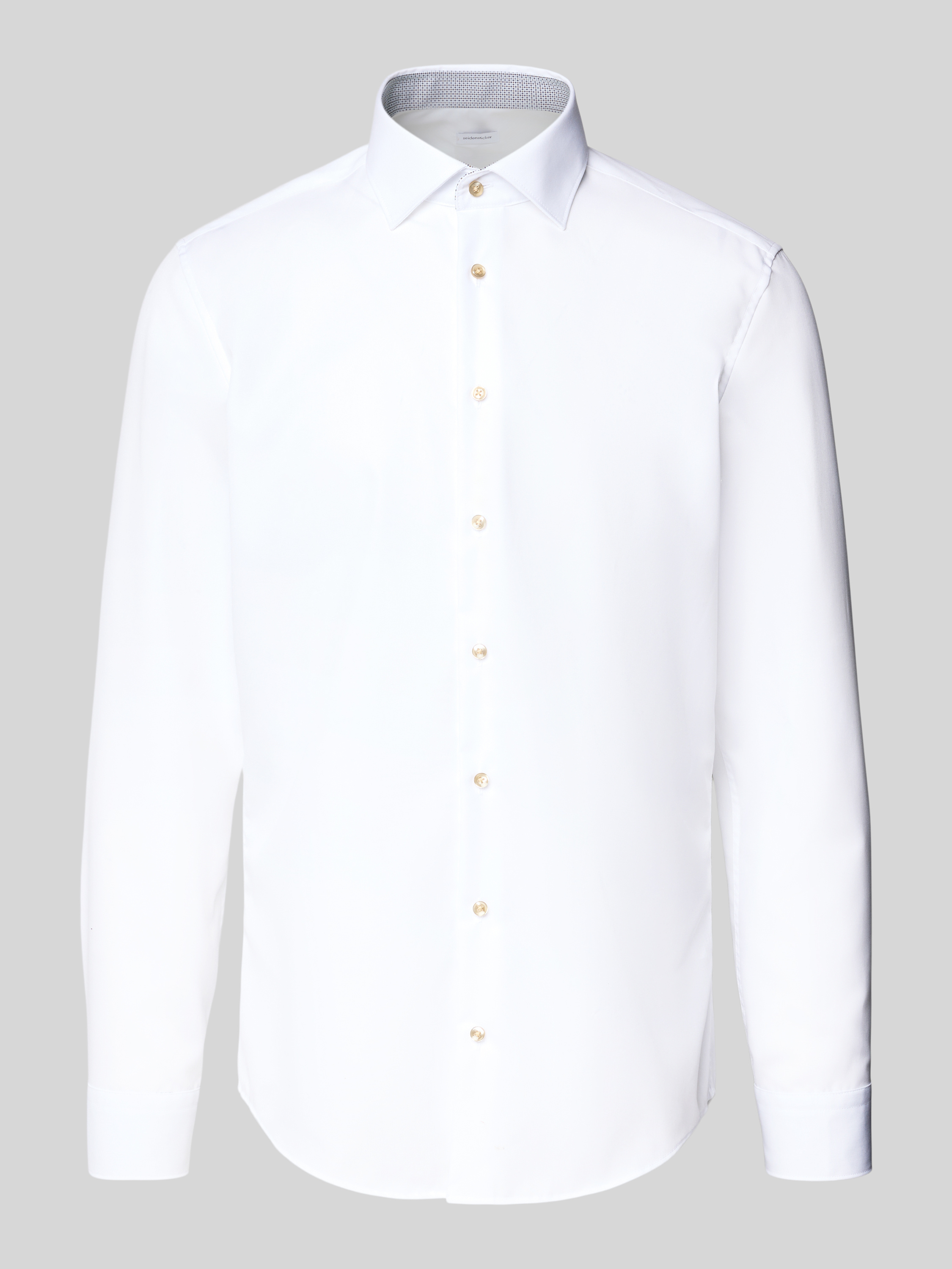 Das Herren Slim Fit Business-Hemd von SEIDENSTICKER besteht aus reiner Baumwolle und legt sich angenehm leicht auf die Haut. Der klassische Kentkragen und die schlanke Passform sorgen für eine gepflegte Silhouette, die sich vielseitig kombinieren lässt. Durch die Sportmanschetten gewinnt der Look eine dezente, moderne Note.