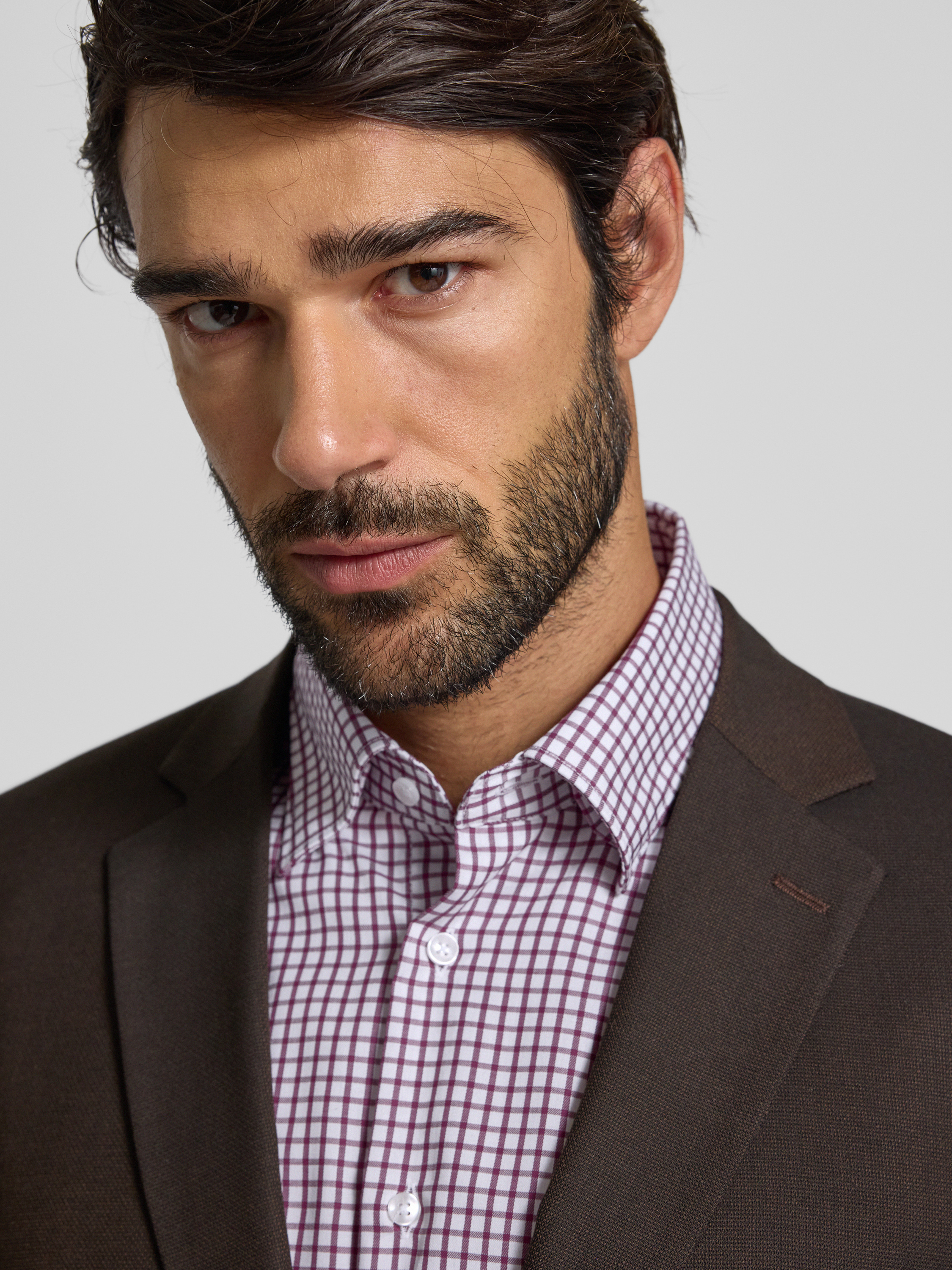 SEIDENSTICKERSlim Fit Business-Hemd mit Knopfleiste in bordeaux