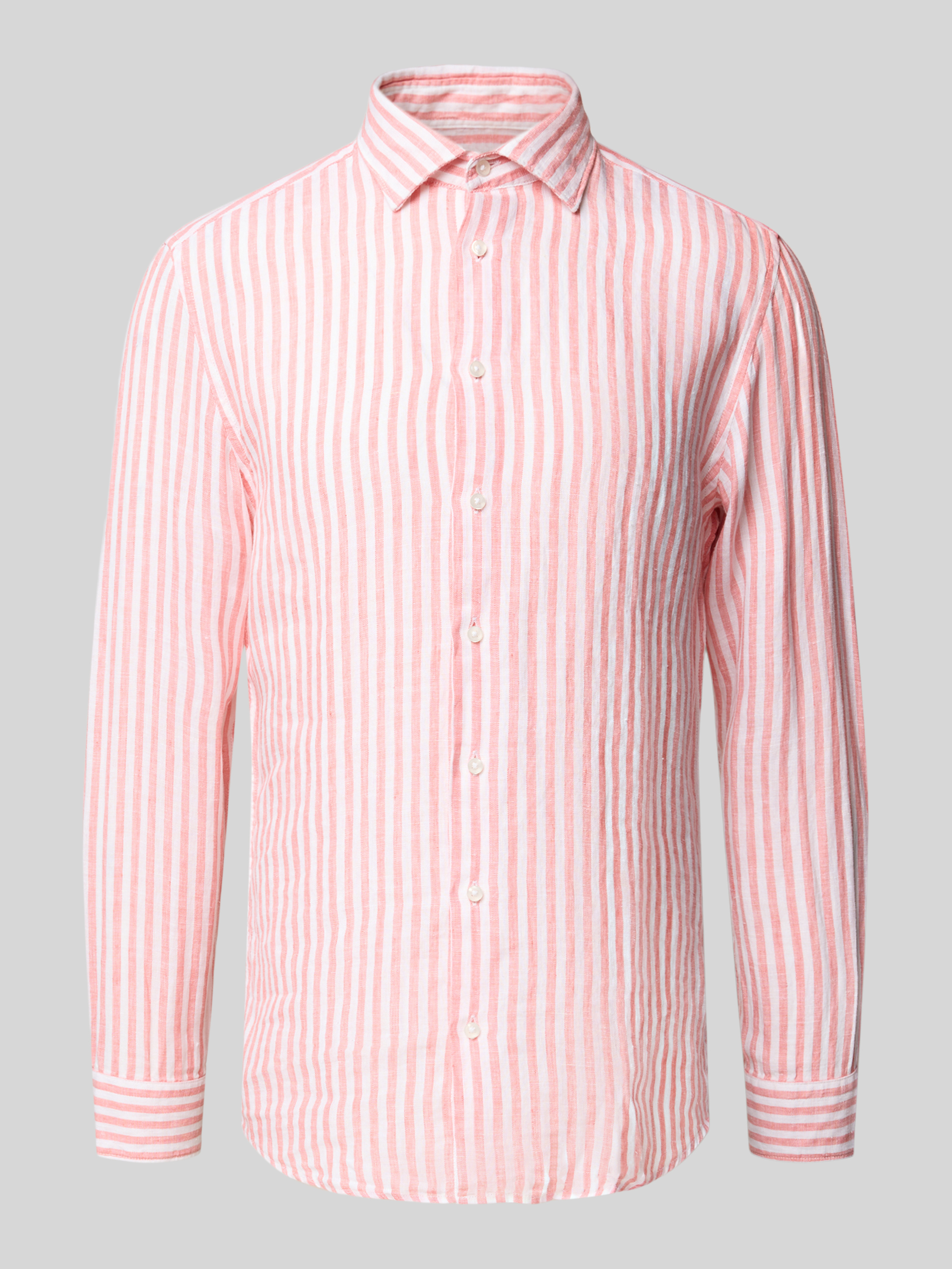 Das SEIDENSTICKER Slim Fit Leinenhemd überzeugt durch sein atmungsaktives, reines Leinen, das sich besonders angenehm auf der Haut anfühlt. Der elegante Kentkragen und die sportlichen Manschetten ergänzen den modernen, schlanken Schnitt. Der abgerundete Saum verleiht dem Design eine lässige Note.