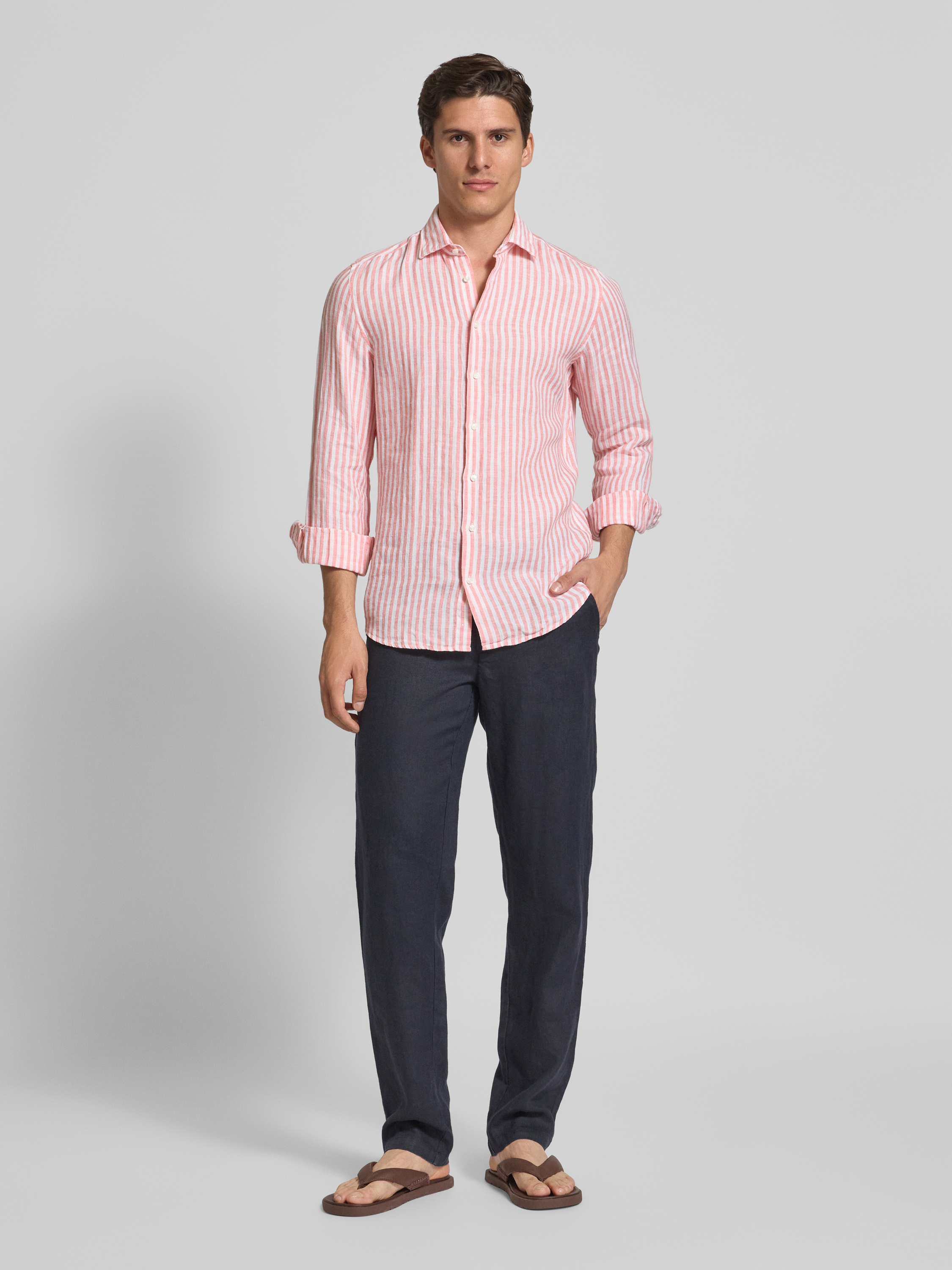 SEIDENSTICKERSlim Fit Leinenhemd aus reinem Leinen mit Kentkragen in dunkel gelb