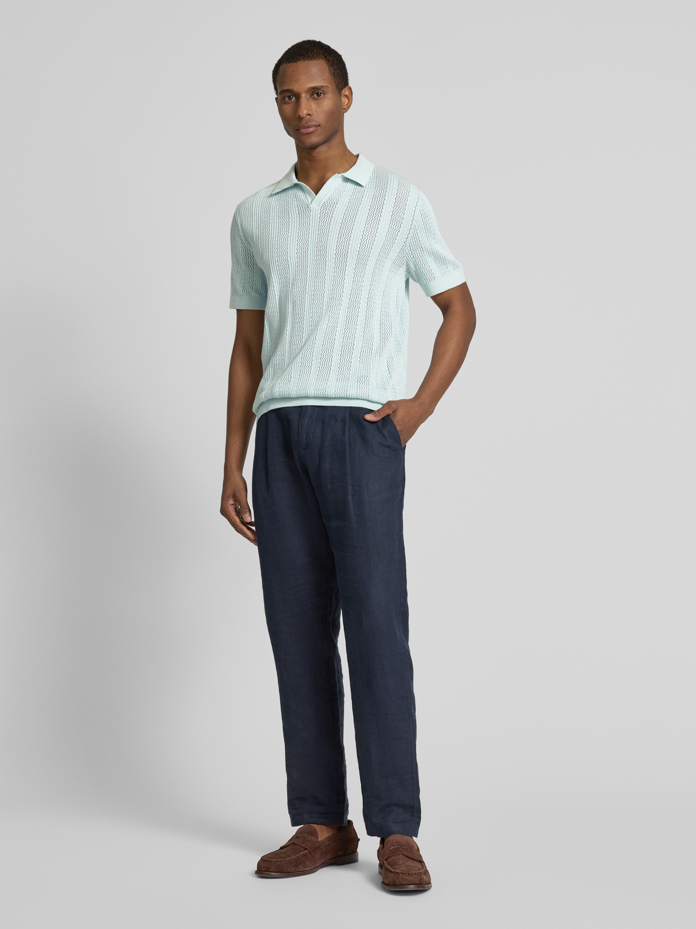 SELECTED HOMMEPoloshirt in Strick-Optik Modell 'WELLS' in eisblau