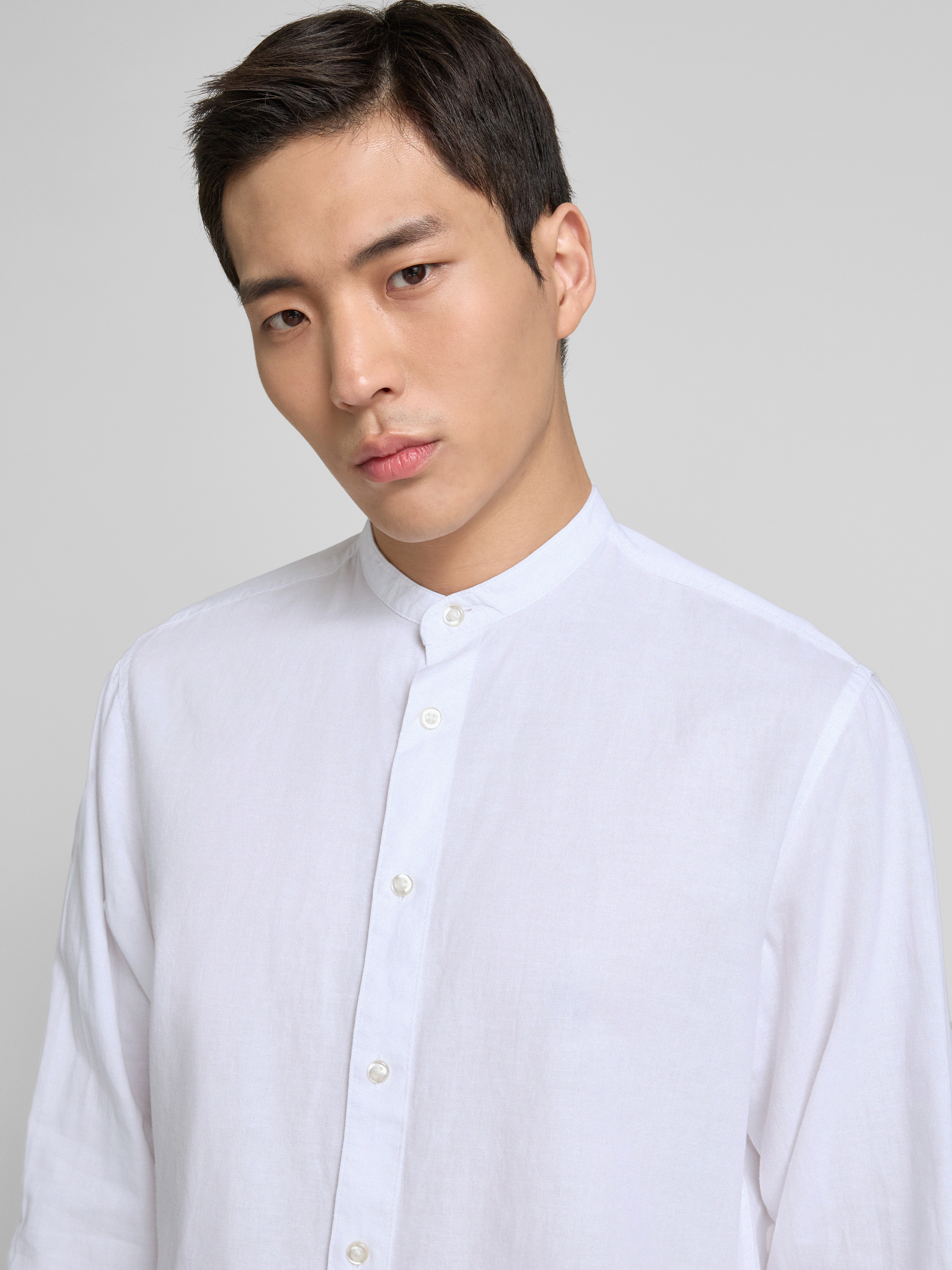 Das Herren Freizeithemd von SELECTED HOMME, Modell 'REGNEW', überzeugt durch seinen komfortablen Regular Fit und den atmungsaktiven Baumwoll-Leinen-Mix. Der Maokragen verleiht dem Hemd eine moderne Note, während es sich ideal für entspannte Anlässe eignet. Ein vielseitiges Kleidungsstück für den Alltag.
