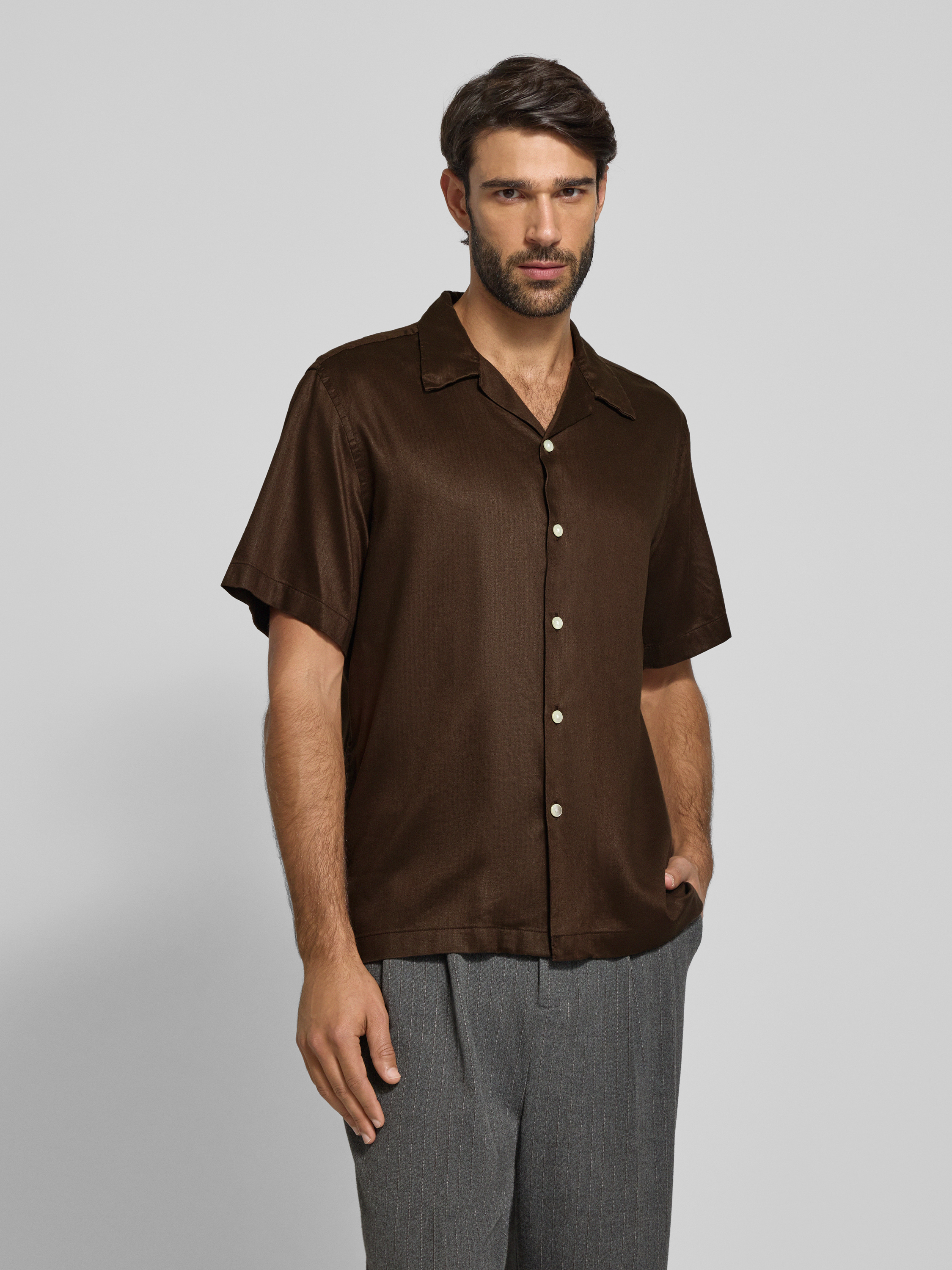 SELECTED HOMMERegular Fit Freizeithemd aus Lyocell-Leinen-Mix Modell 'REGNOA' in dunkelbraun