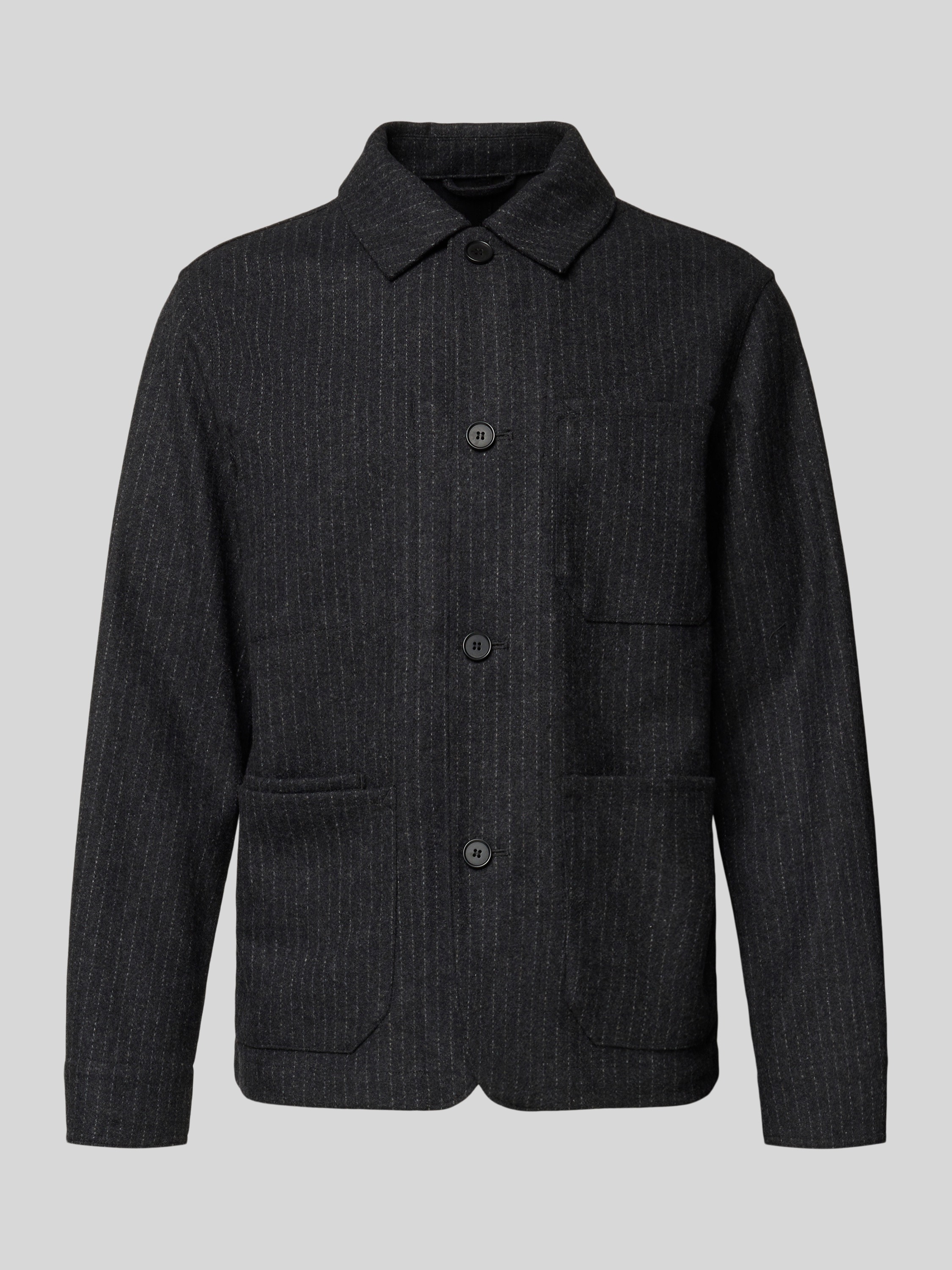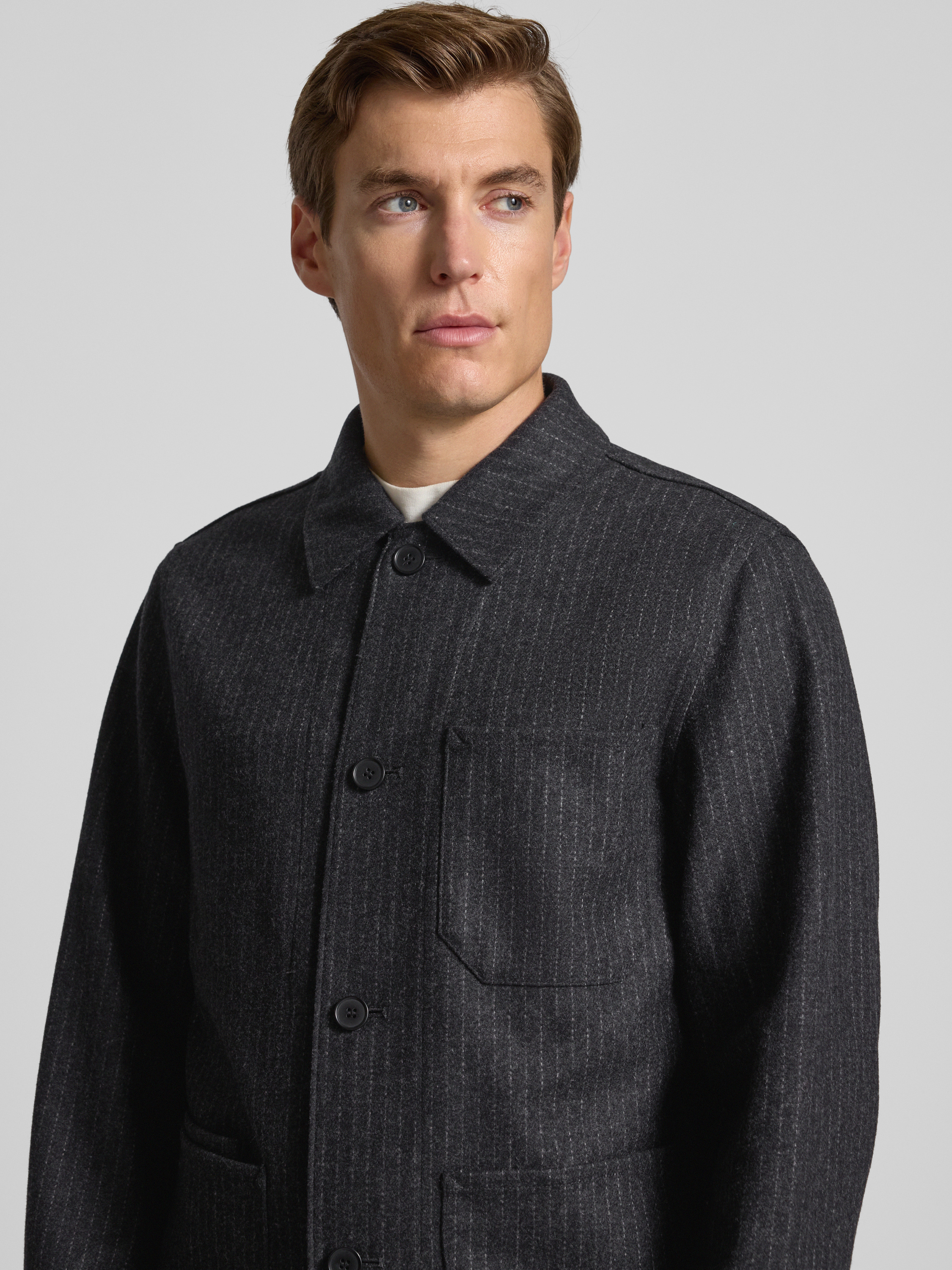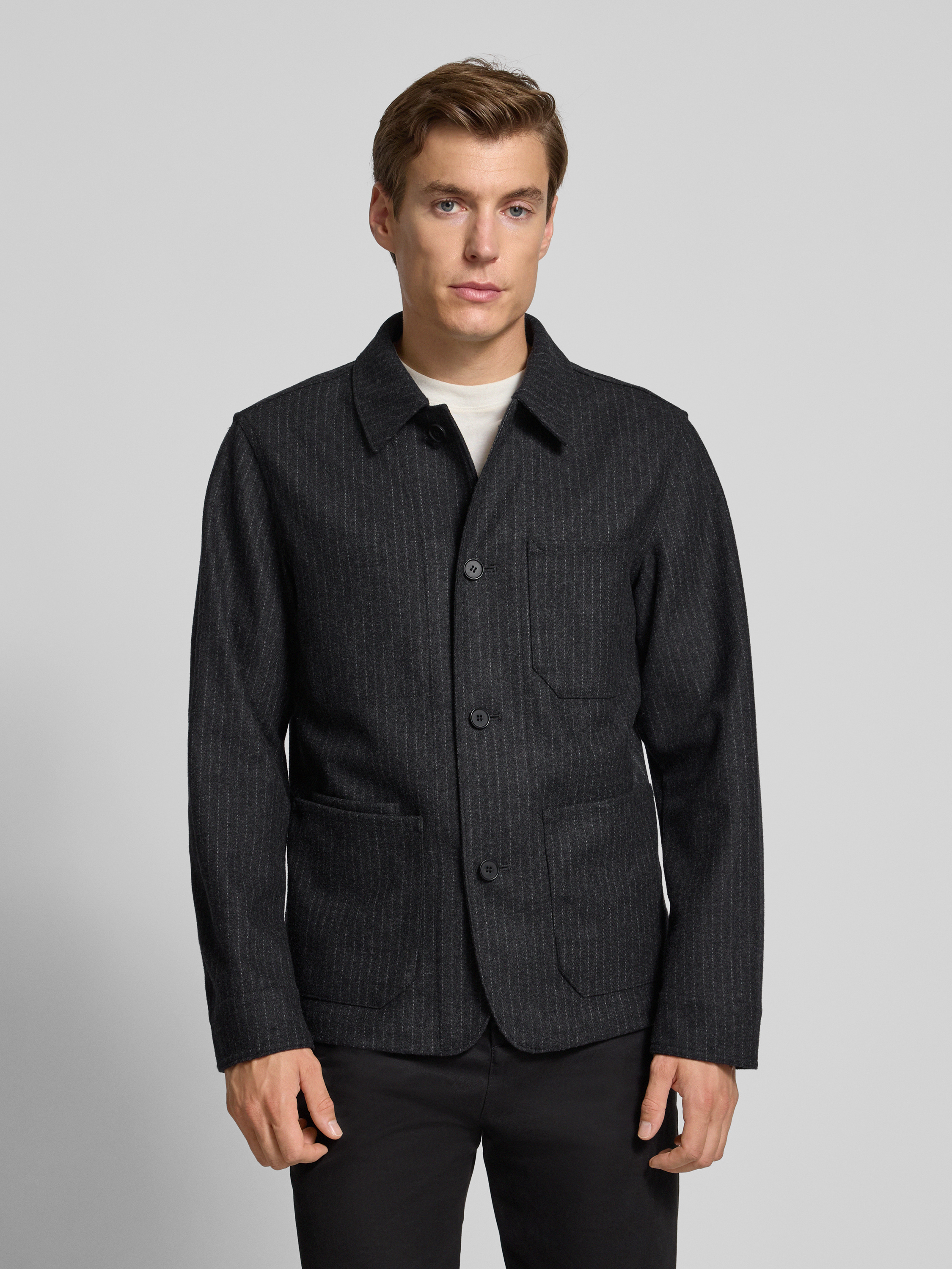 Die Herren Hemdjacke von Selected Homme im Regular-Fit verbindet angenehmen Woll-Mix mit einem klassischen Kentkragen. Durch das dezente Nadelstreifen-Muster entsteht ein vielseitiger Look, der sich unkompliziert kombinieren lässt. Praktische aufgesetzte Taschen runden das Gesamtbild funktional ab.