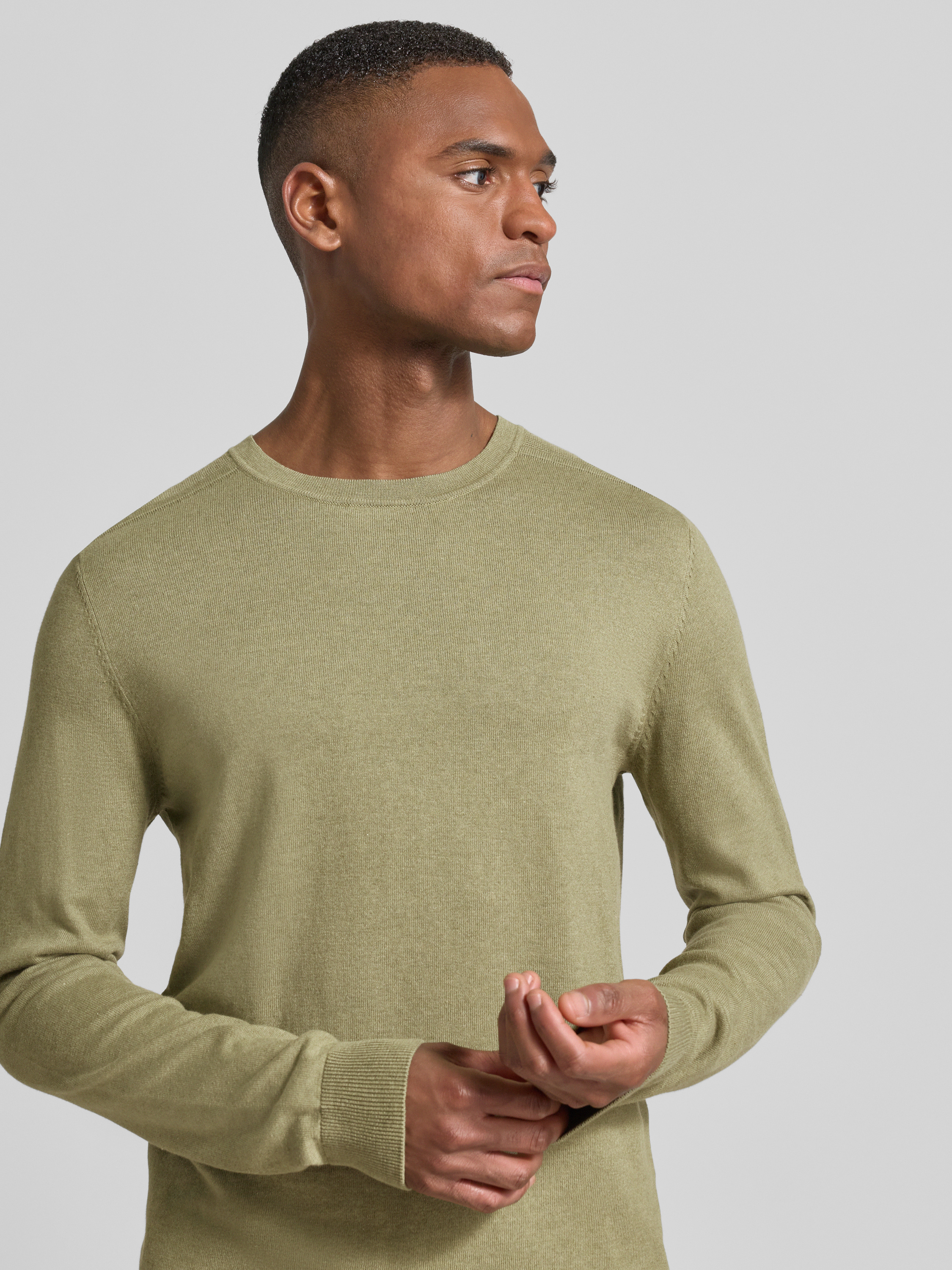 SELECTED HOMMERegular Fit Pullover aus reiner Baumwolle Modell 'BERG' in oliv melange