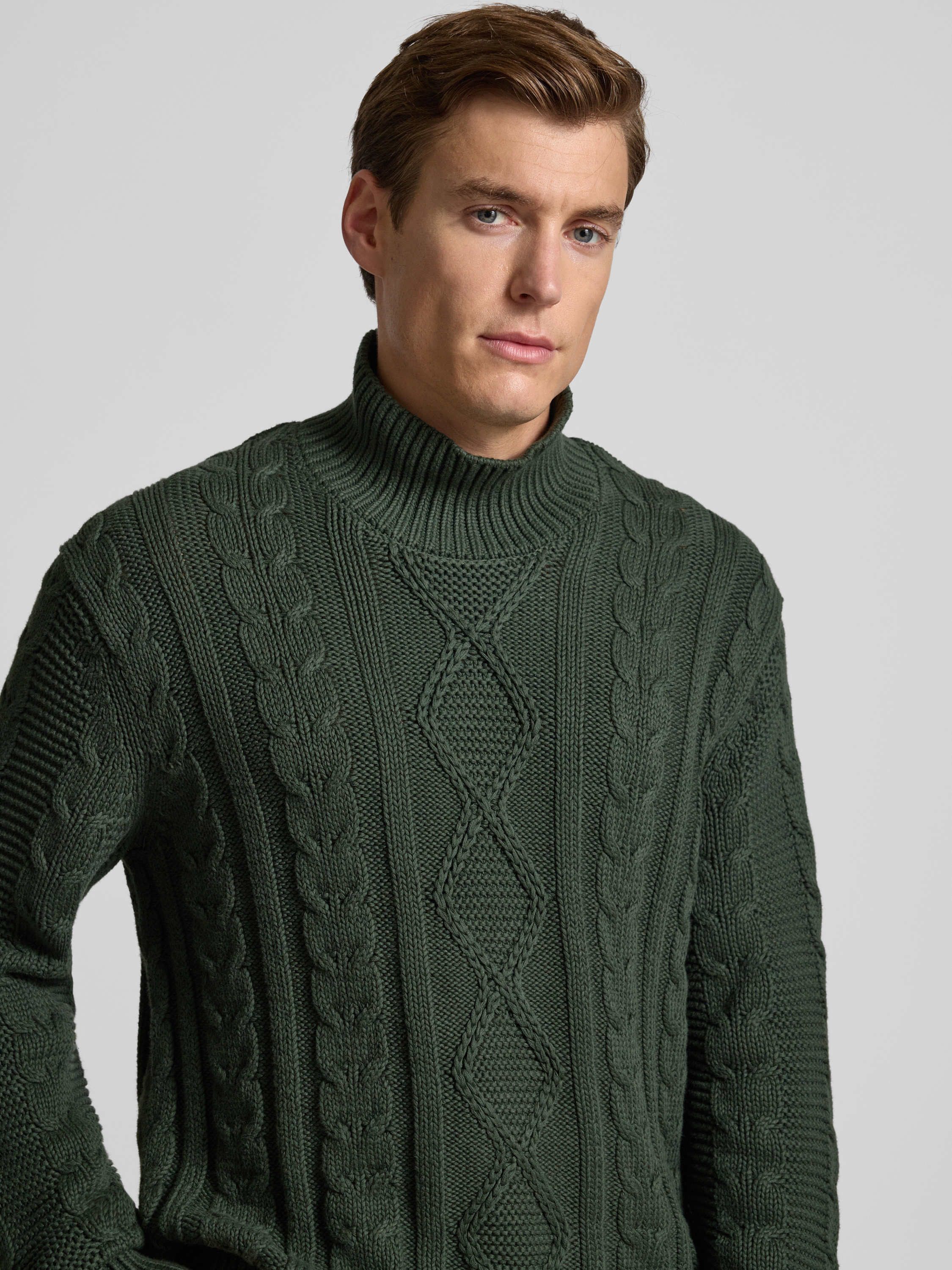 Der Herren-Rollkragenpullover von SELECTED HOMME, Modell Uffe, präsentiert sich in einem klassischen Regular Fit und zeigt ein feines Zopfmuster auf reiner Baumwolle. Die Strickstruktur wirkt angenehm auf der Haut, während der Rollkragen an kühleren Tagen wohltuende Wärme spendet. Dezente Details runden das einfarbige Design ab.