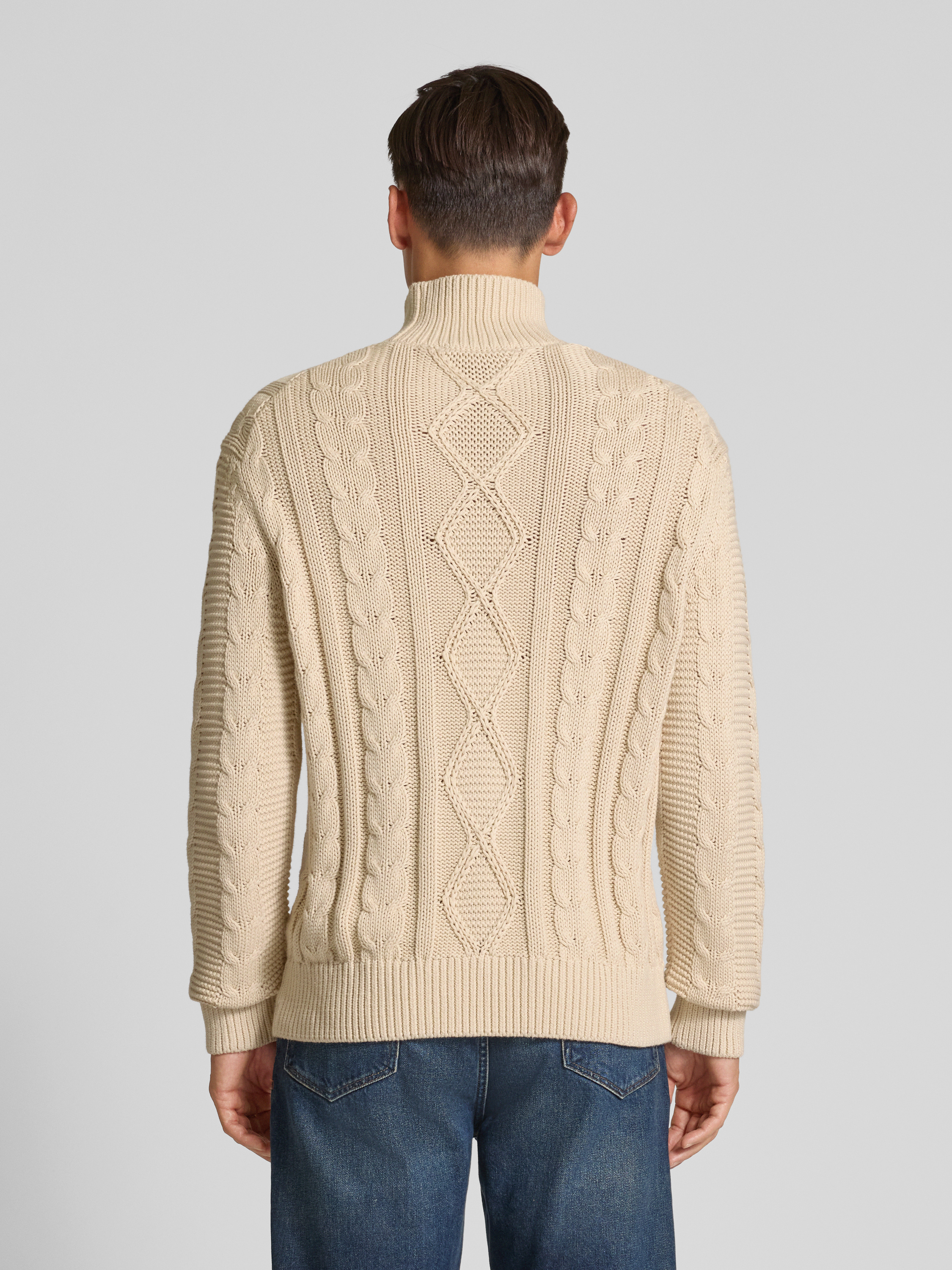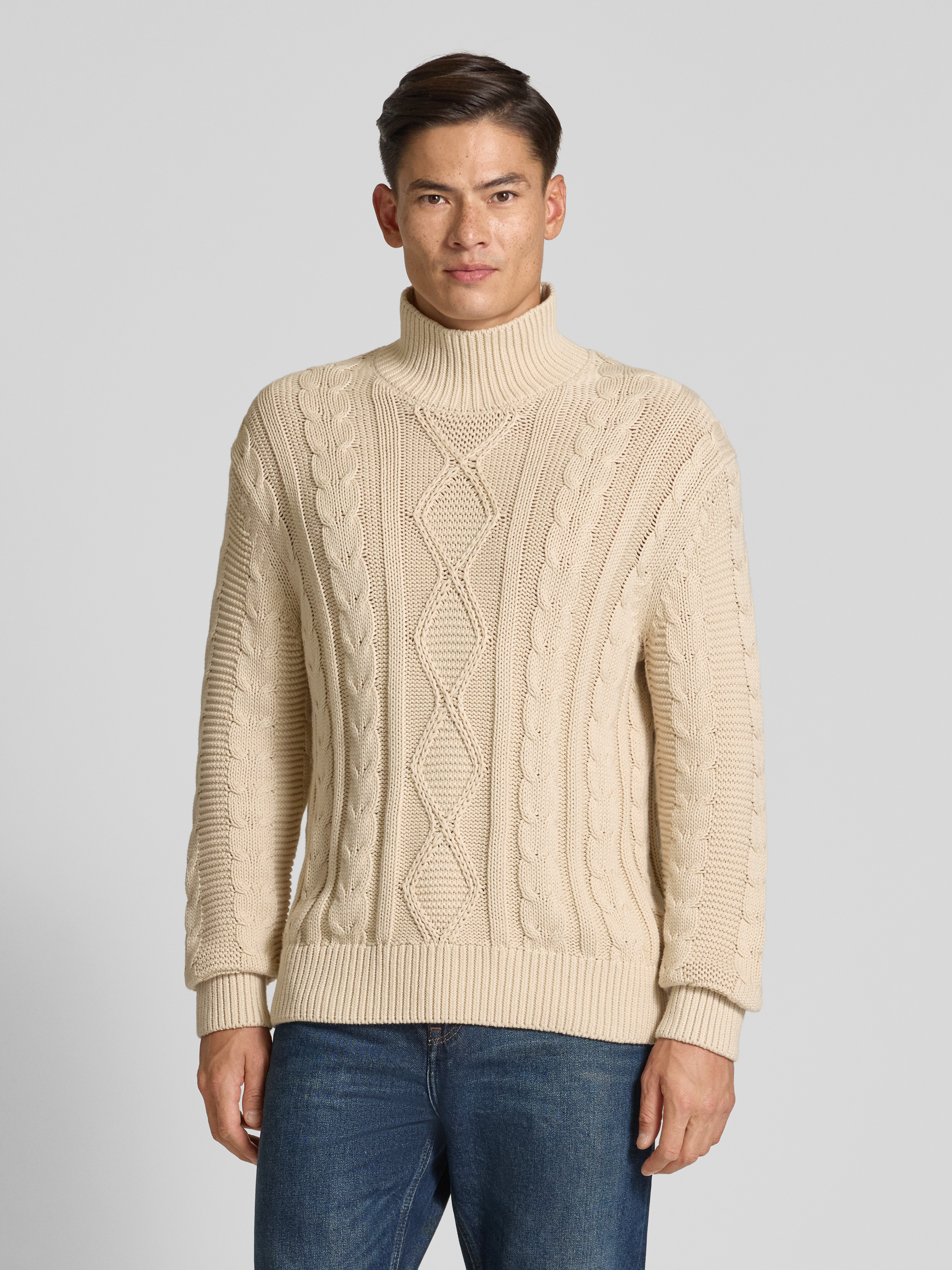 Der Herren-Rollkragenpullover von SELECTED HOMME, Modell Uffe, präsentiert sich in einem klassischen Regular Fit und zeigt ein feines Zopfmuster auf reiner Baumwolle. Die Strickstruktur wirkt angenehm auf der Haut, während der Rollkragen an kühleren Tagen wohltuende Wärme spendet. Dezente Details runden das einfarbige Design ab.