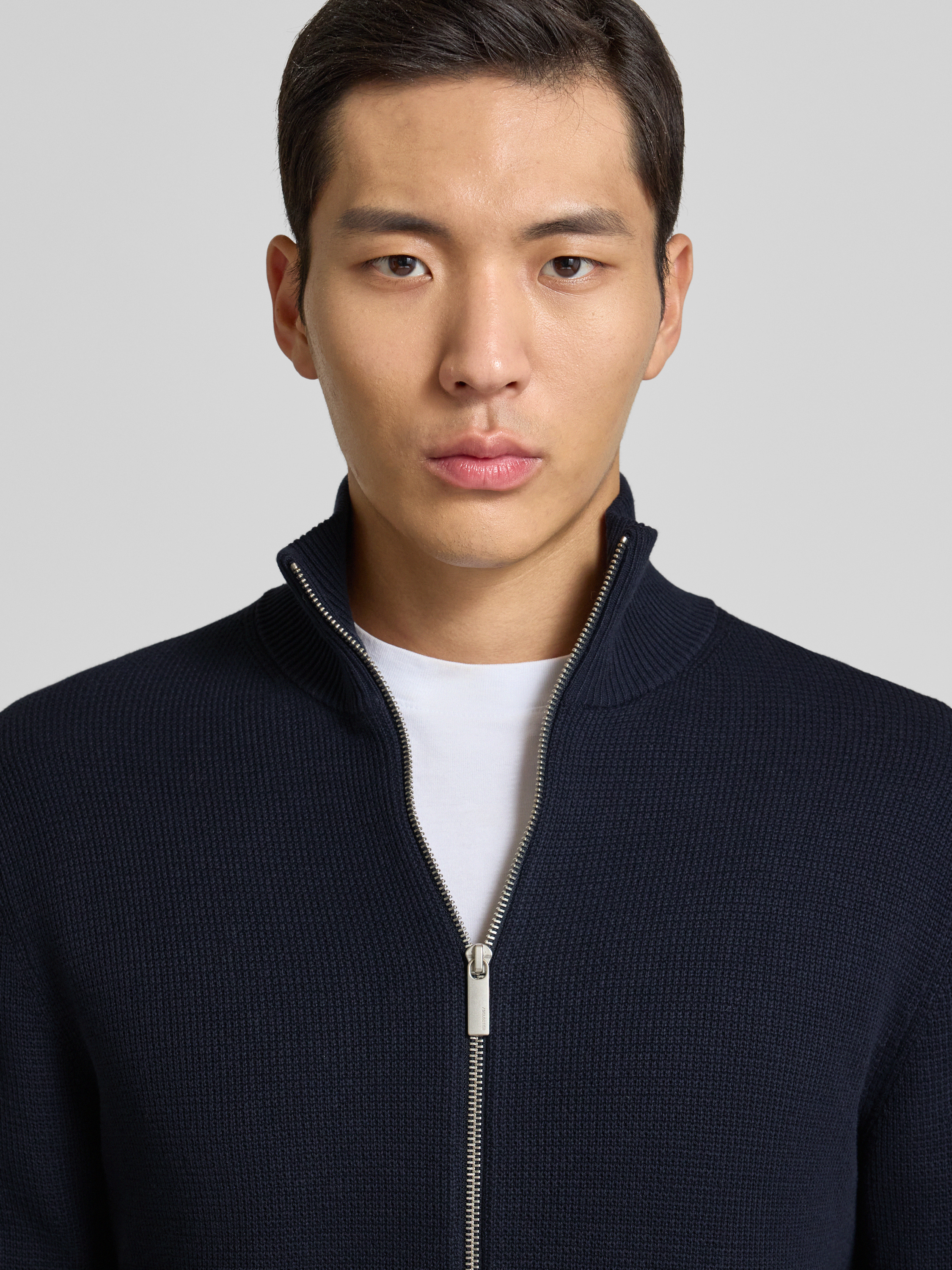 Die Herren Strickjacke von SELECTED HOMME, Modell Dane, zeichnet sich durch eine klassische Regular Fit-Form und eine dezente, strukturierte Optik aus. Reine Baumwolle sorgt für ein angenehmes Tragegefühl und zuverlässige Atmungsaktivität. Durch den Stehkragen entsteht ein klarer, gepflegter Eindruck, der vielseitig kombinierbar bleibt.