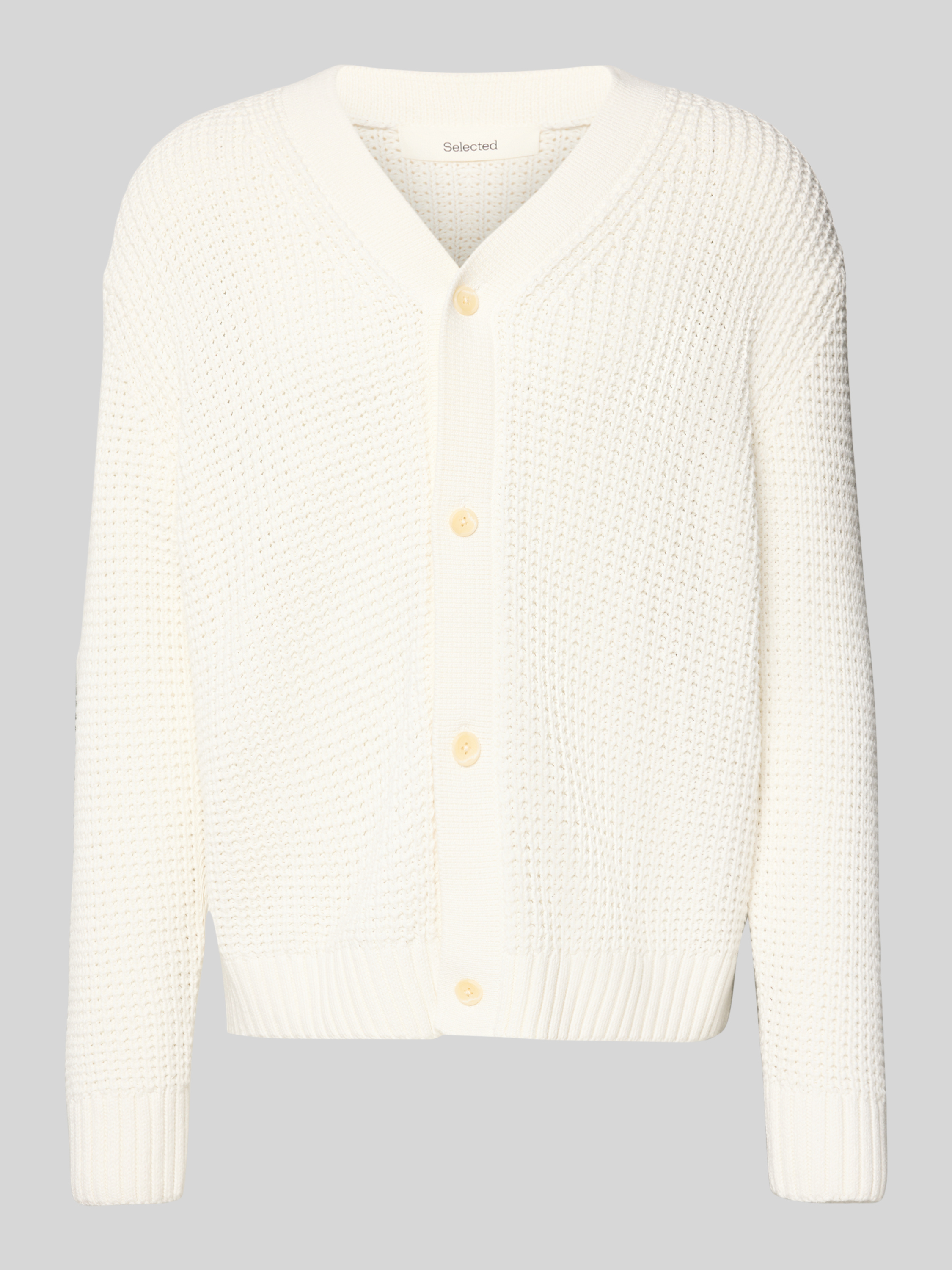 SELECTED HOMMERegular Fit Strickjacke aus reiner Baumwolle Modell 'DERECK' in offwhite