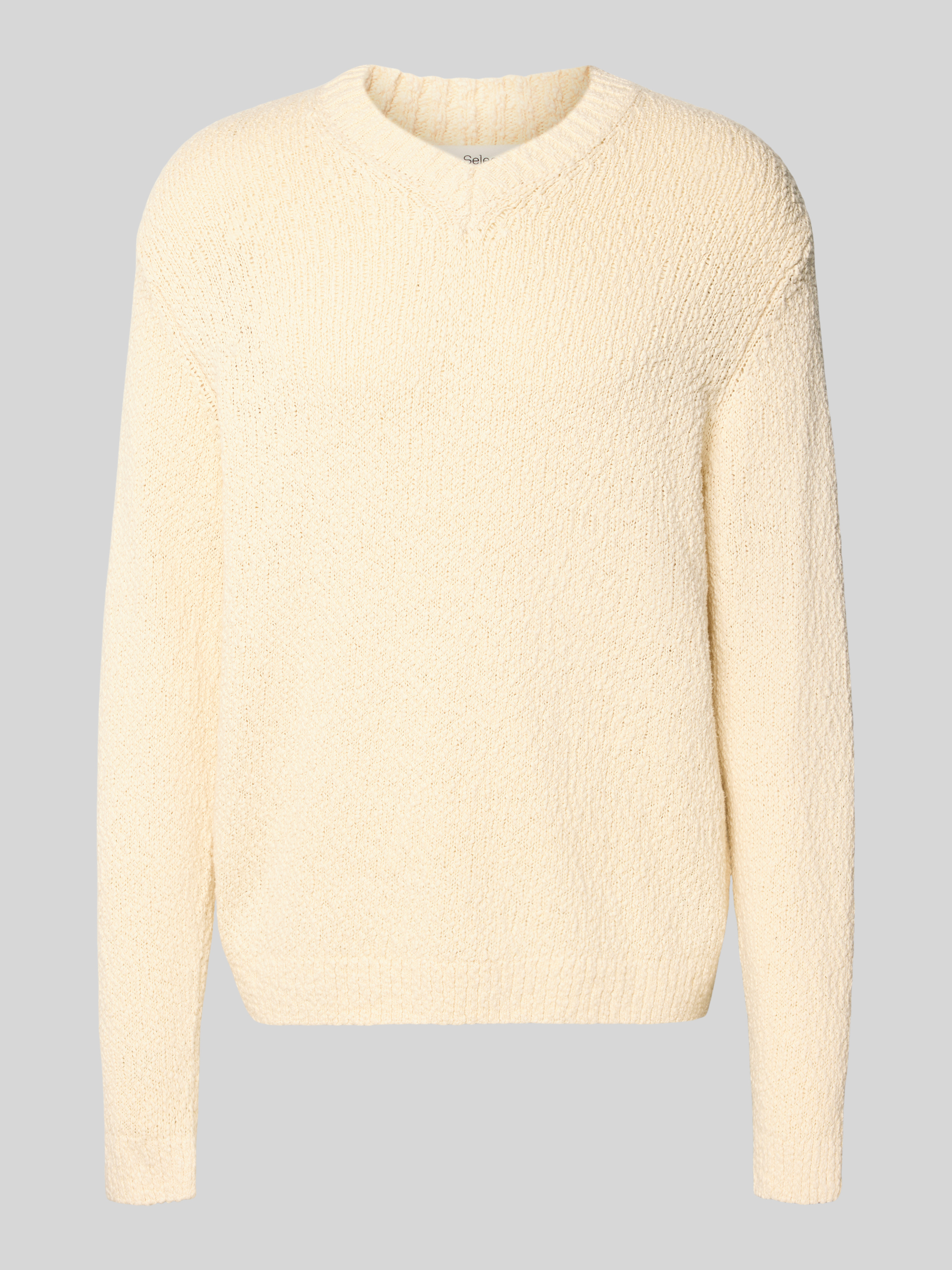 SELECTED HOMMERegular Fit Strickpullover aus reiner Bio-Baumwolle Modell 'Angus' in offwhite