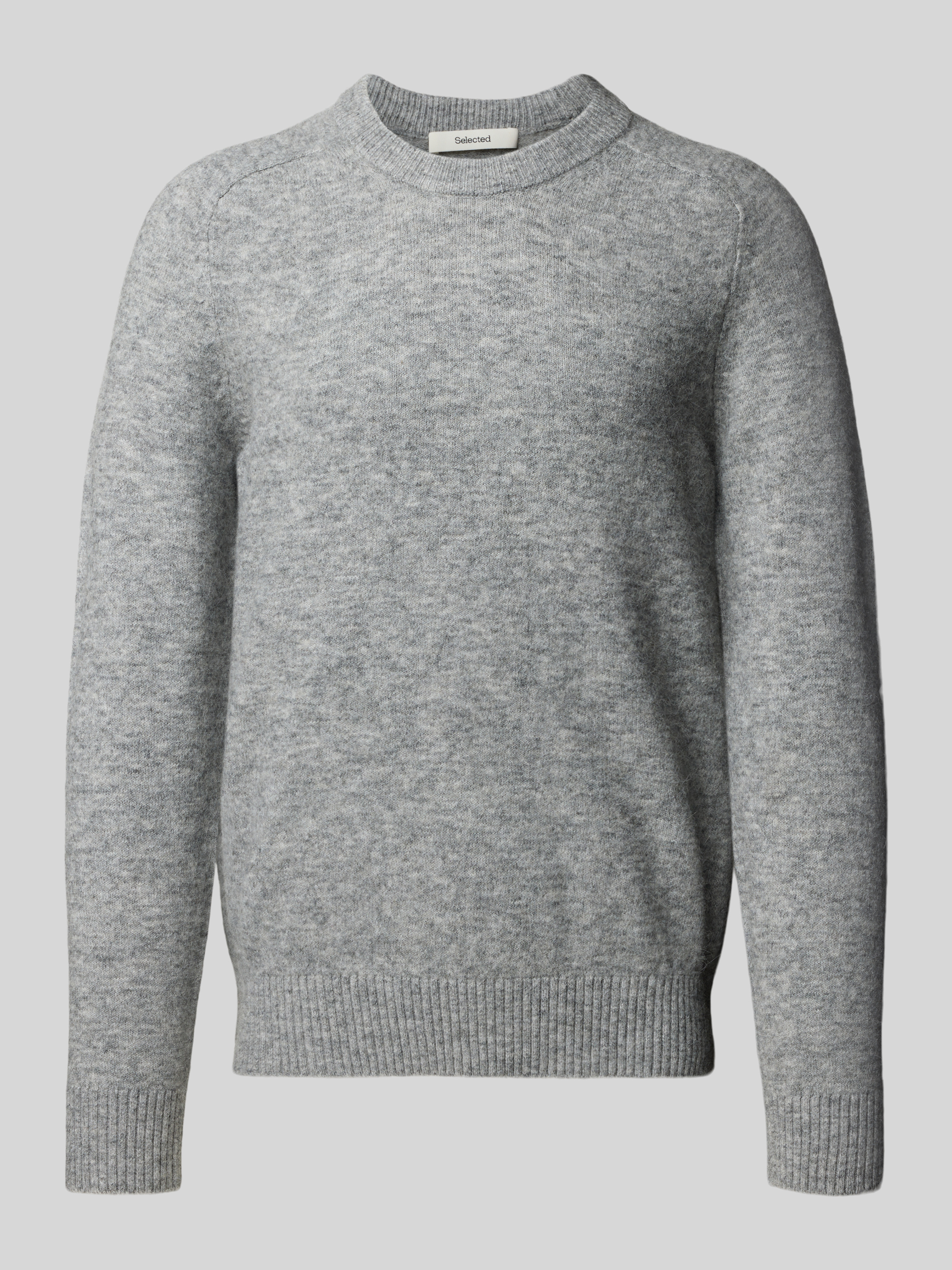 SELECTED HOMMERegular Fit Strickpullover mit Alpaka-Woll-Mix Modell 'RAI' in hellgrau