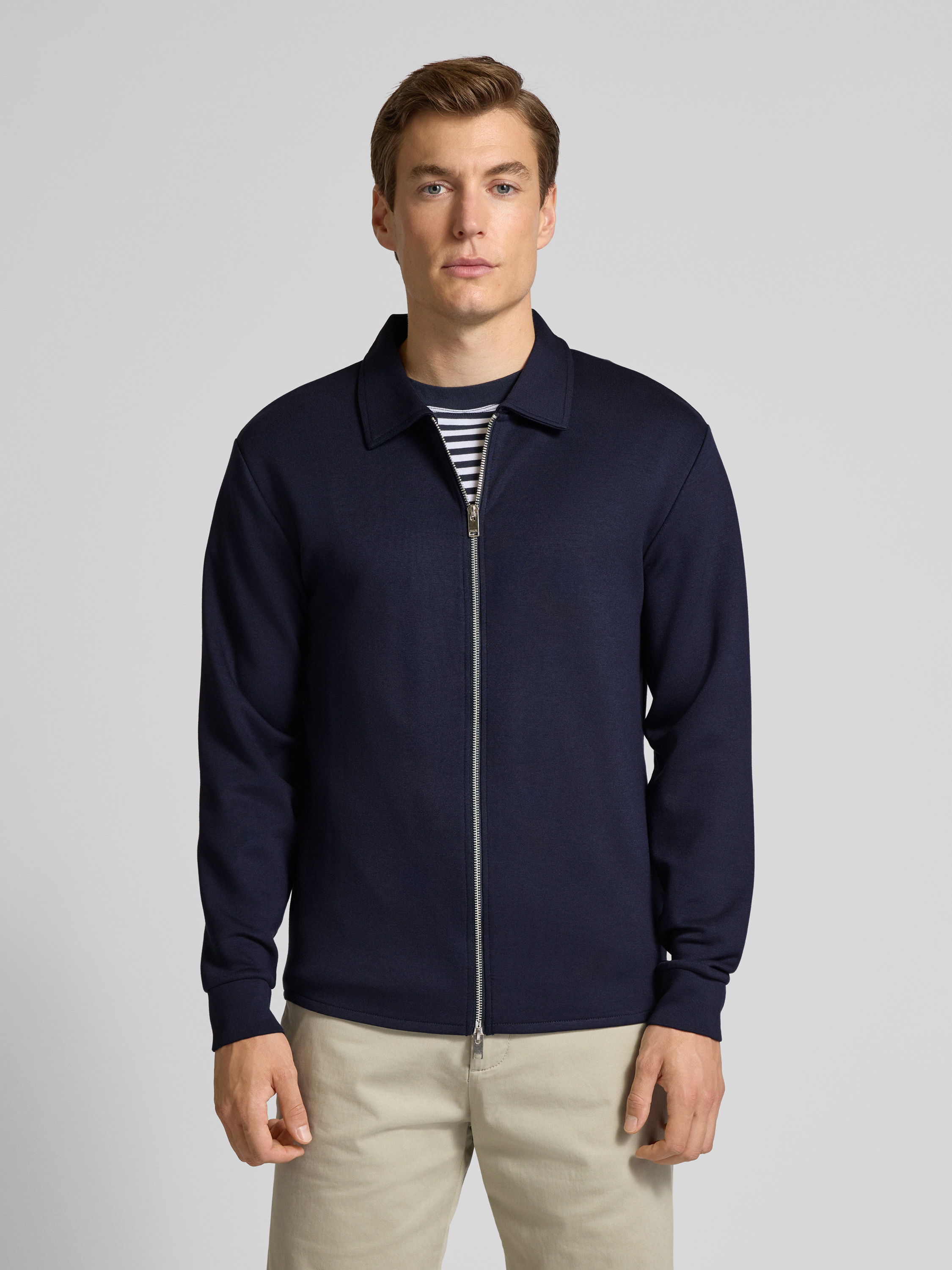Regular Fit Sweatjacke aus Viskose-Mix Modell 'EMANUEL' in dunkelblau