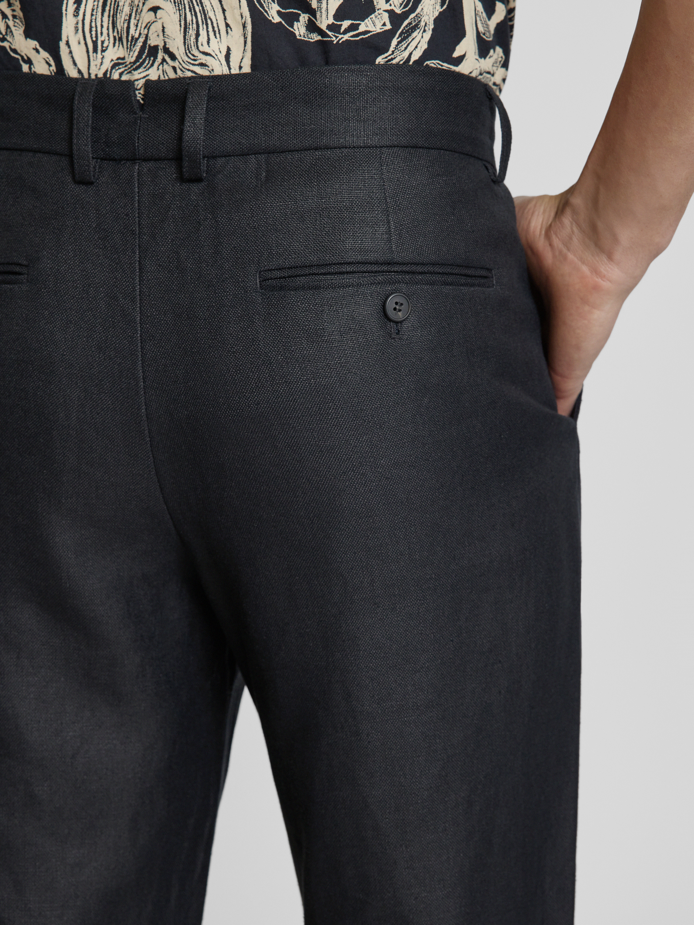 Die Anzughose 'KONTOS' von SELECTED HOMME aus reinem Hanf überzeugt durch ihren schmalen Schnitt, der eine elegante Silhouette formt. Französische Eingrifftaschen und Bügelfalten verleihen dem Design eine klassische Note, während der Slim Fit eine moderne Passform gewährleistet. Ideal für formelle Anlässe.