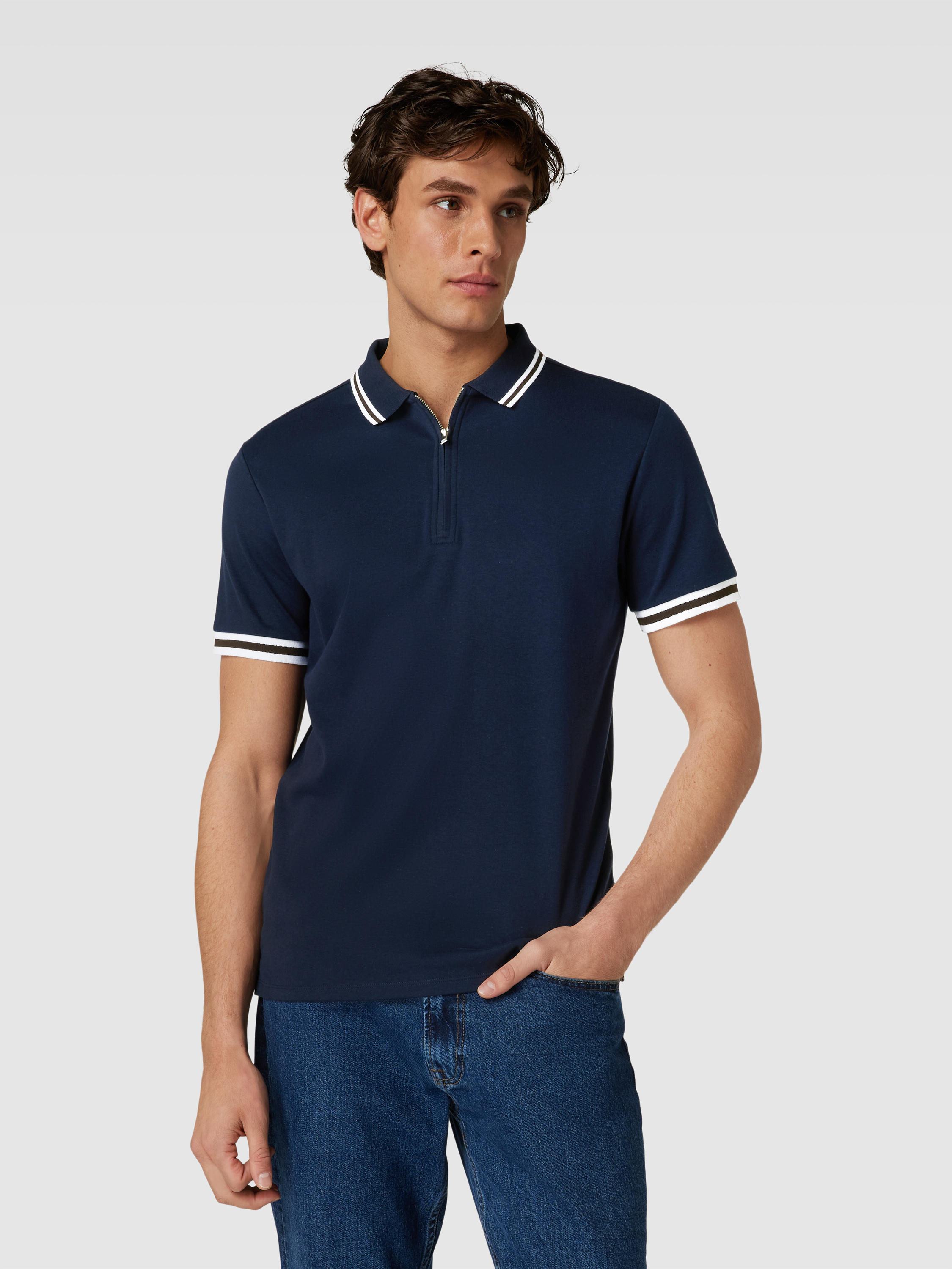 SELECTED HOMMESlim Fit Poloshirt mit Label-Detail Modell 'TOULOUSE' in dunkelblau