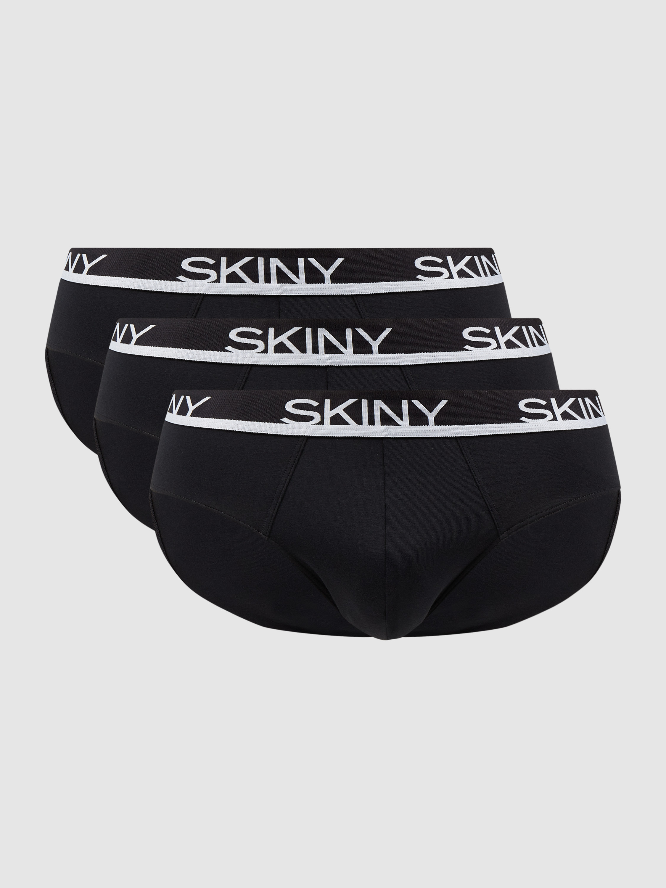 Der Slip von Skiny ist aus einem Baumwoll-Elasthan-Mix gefertigt und zeigt sich ohne Beinansatz. Er kommt im 3er-Pack mit elastischem Logo-Bund. Artikel aus Baumwolle sind pflegeleicht und angenehm zu tragen.