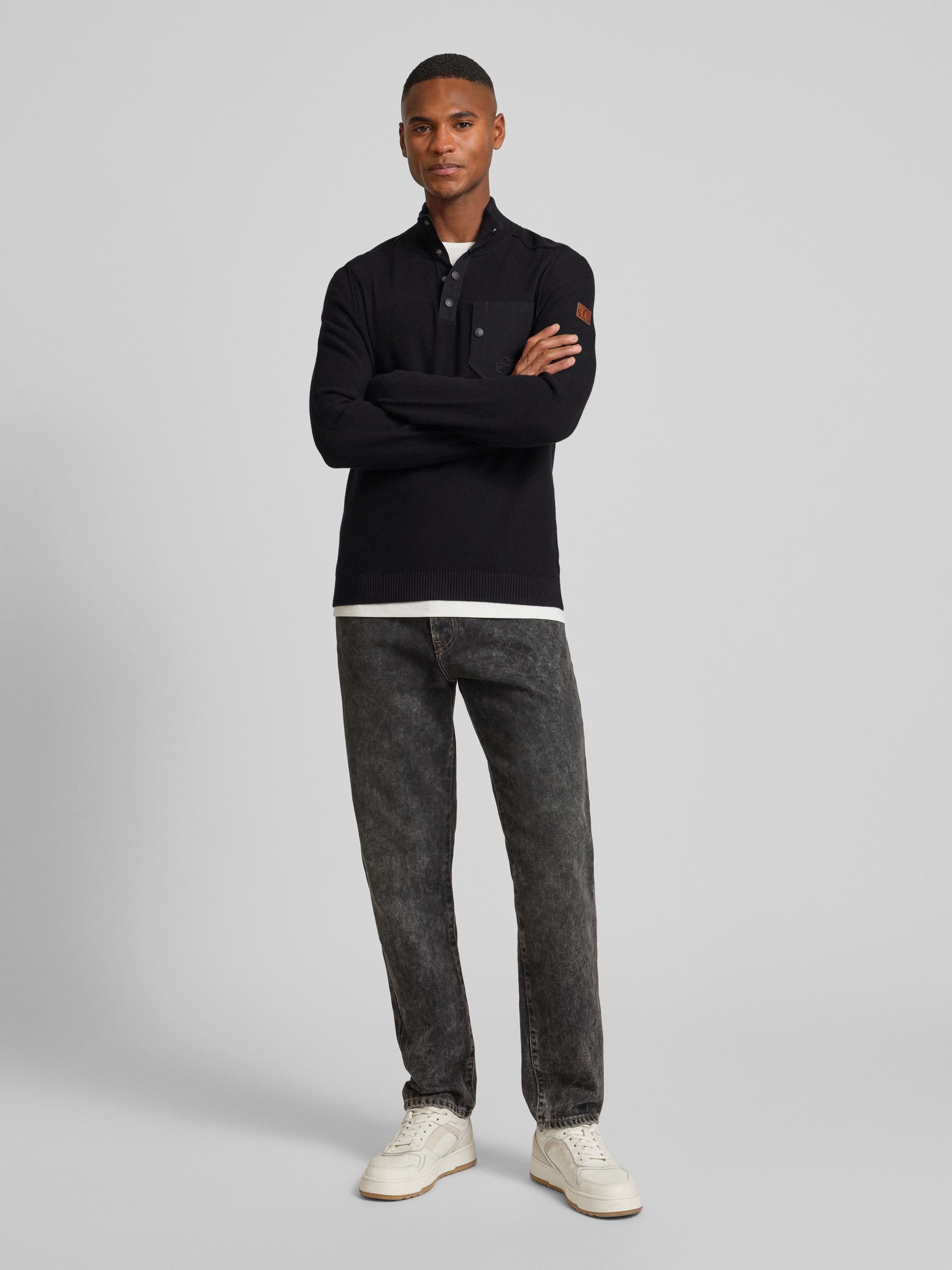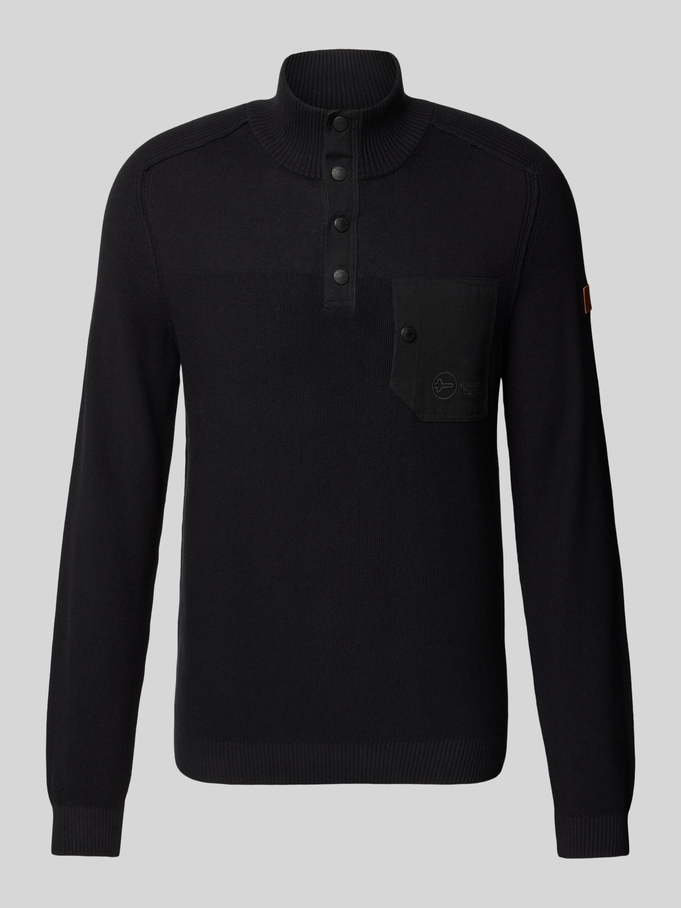 Der Regular Fit Strickpullover von s.Oliver Casual, gefertigt aus reiner Baumwolle in Piqué-Qualität, überzeugt durch seinen unifarbenen Look und eine bequeme Passform. Mit seinem gerippten Stehkragen und der Brusttasche eignet er sich ideal für lässige, aber dennoch stilvolle Outfits. Ein dezentes Logo-Patch und das Schriftzug-Stitching verleihen dem Pullover eine besondere Note.
