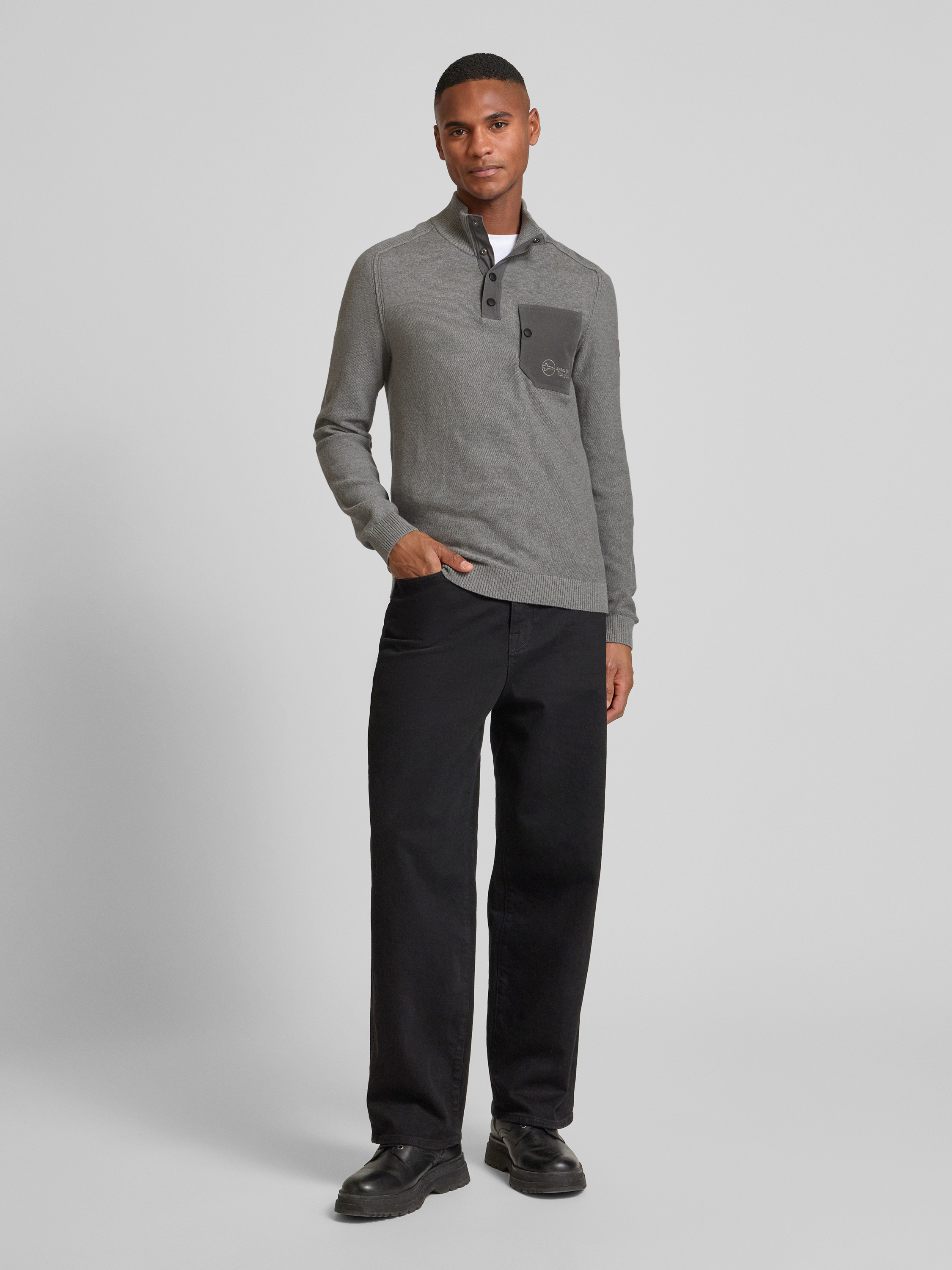 Der Regular Fit Strickpullover von s.Oliver Casual, gefertigt aus reiner Baumwolle in Piqué-Qualität, überzeugt durch seinen unifarbenen Look und eine bequeme Passform. Mit seinem gerippten Stehkragen und der Brusttasche eignet er sich ideal für lässige, aber dennoch stilvolle Outfits. Ein dezentes Logo-Patch und das Schriftzug-Stitching verleihen dem Pullover eine besondere Note.