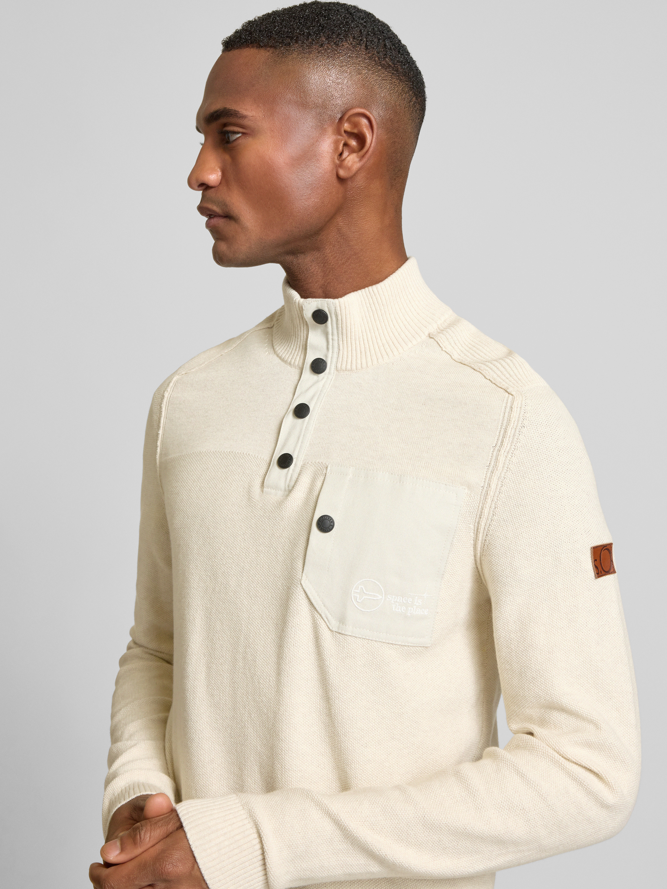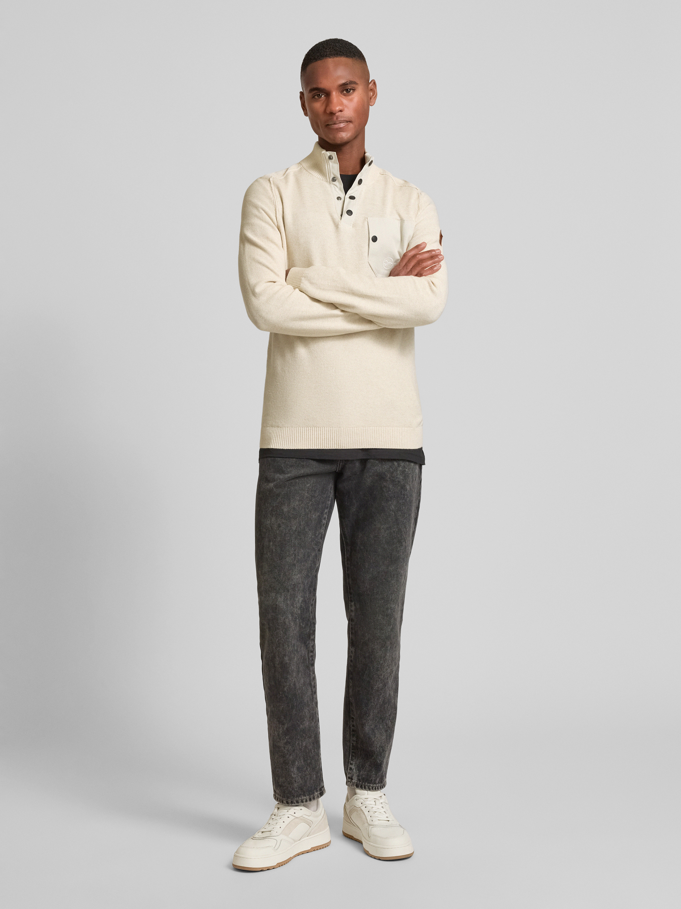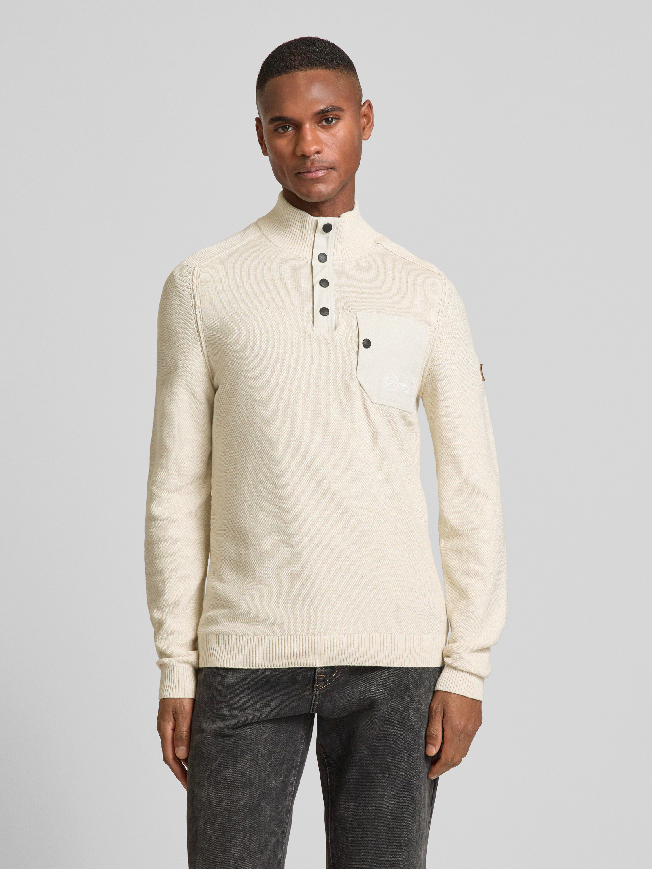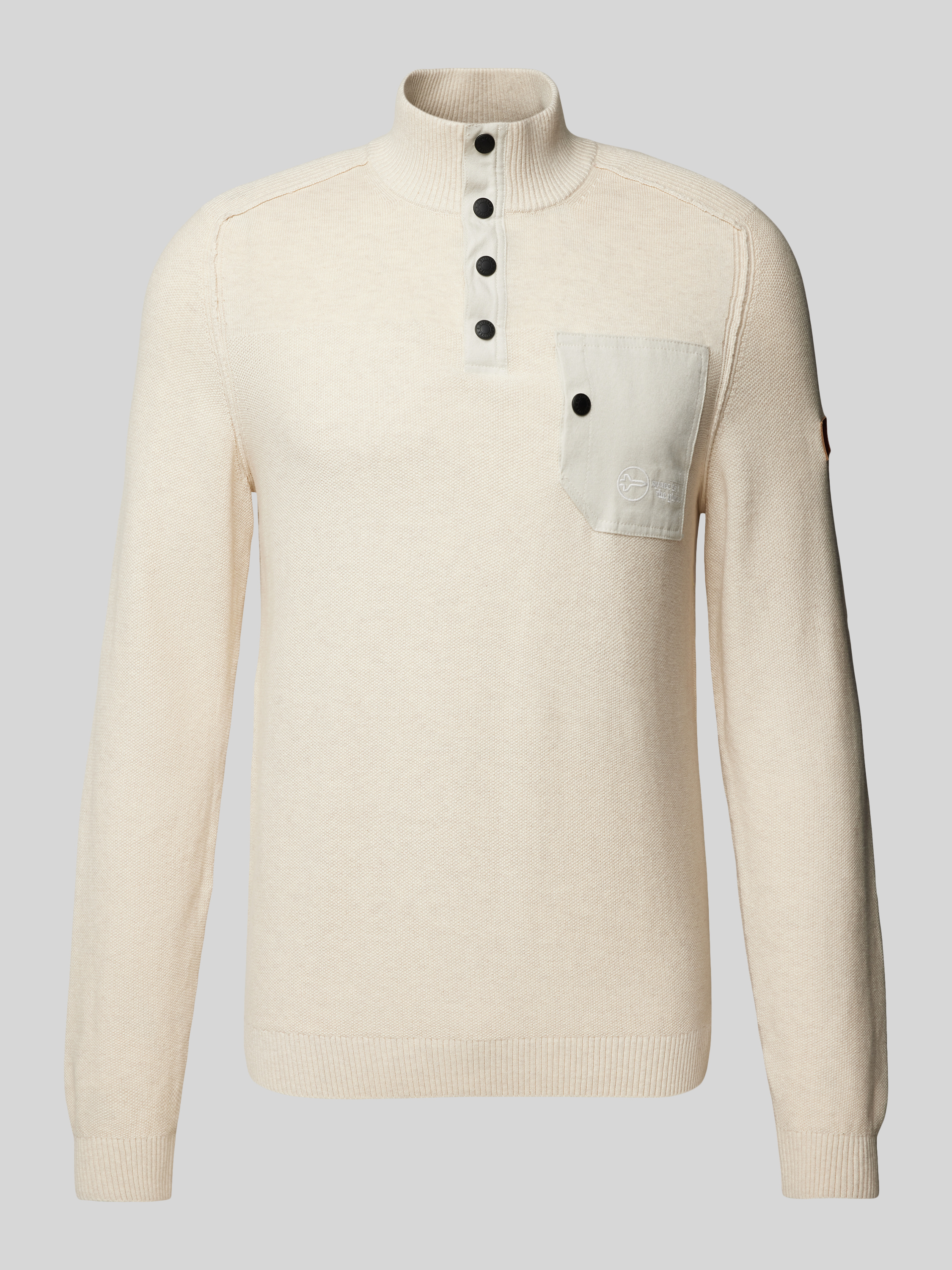 Der Regular Fit Strickpullover von s.Oliver Casual, gefertigt aus reiner Baumwolle in Piqué-Qualität, überzeugt durch seinen unifarbenen Look und eine bequeme Passform. Mit seinem gerippten Stehkragen und der Brusttasche eignet er sich ideal für lässige, aber dennoch stilvolle Outfits. Ein dezentes Logo-Patch und das Schriftzug-Stitching verleihen dem Pullover eine besondere Note.