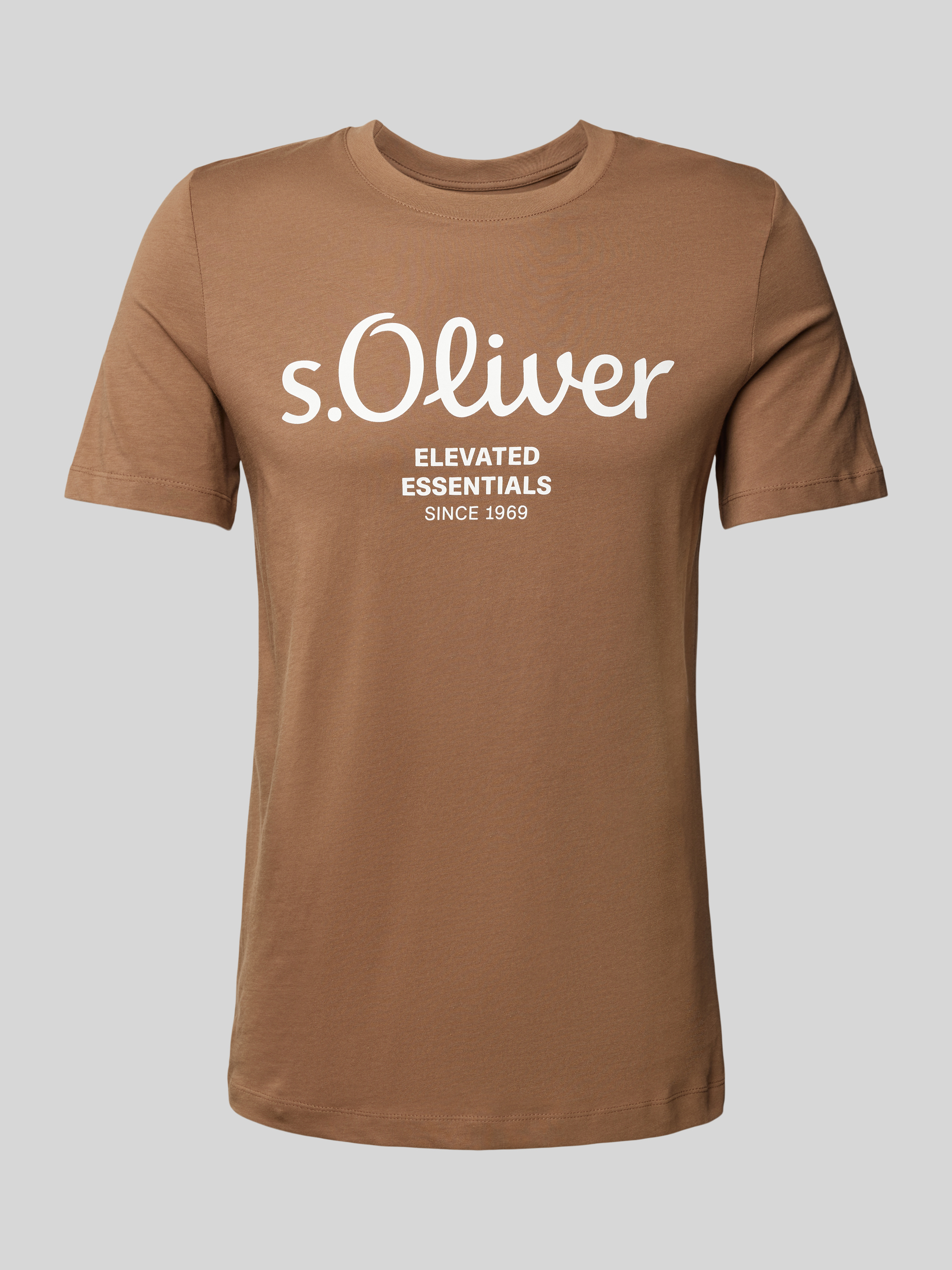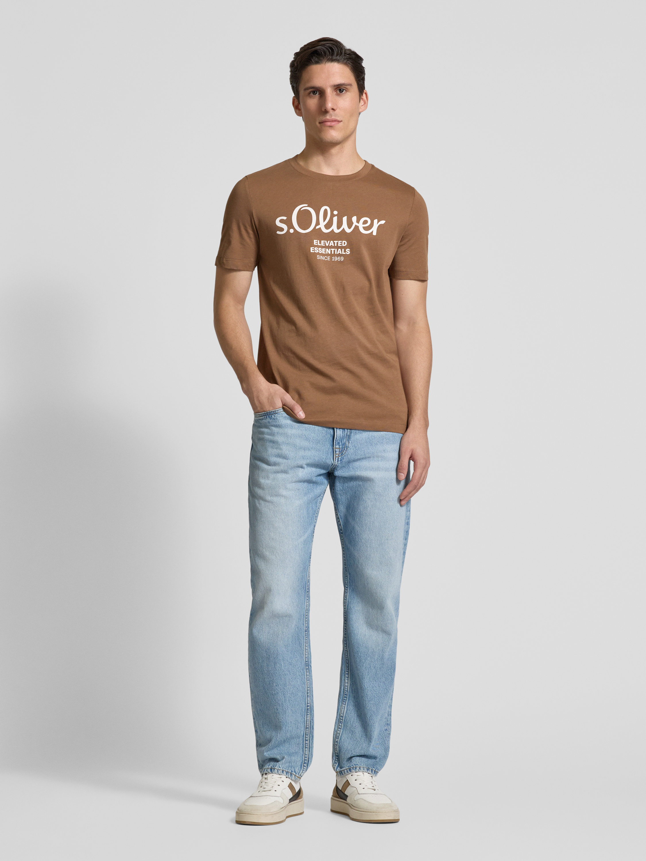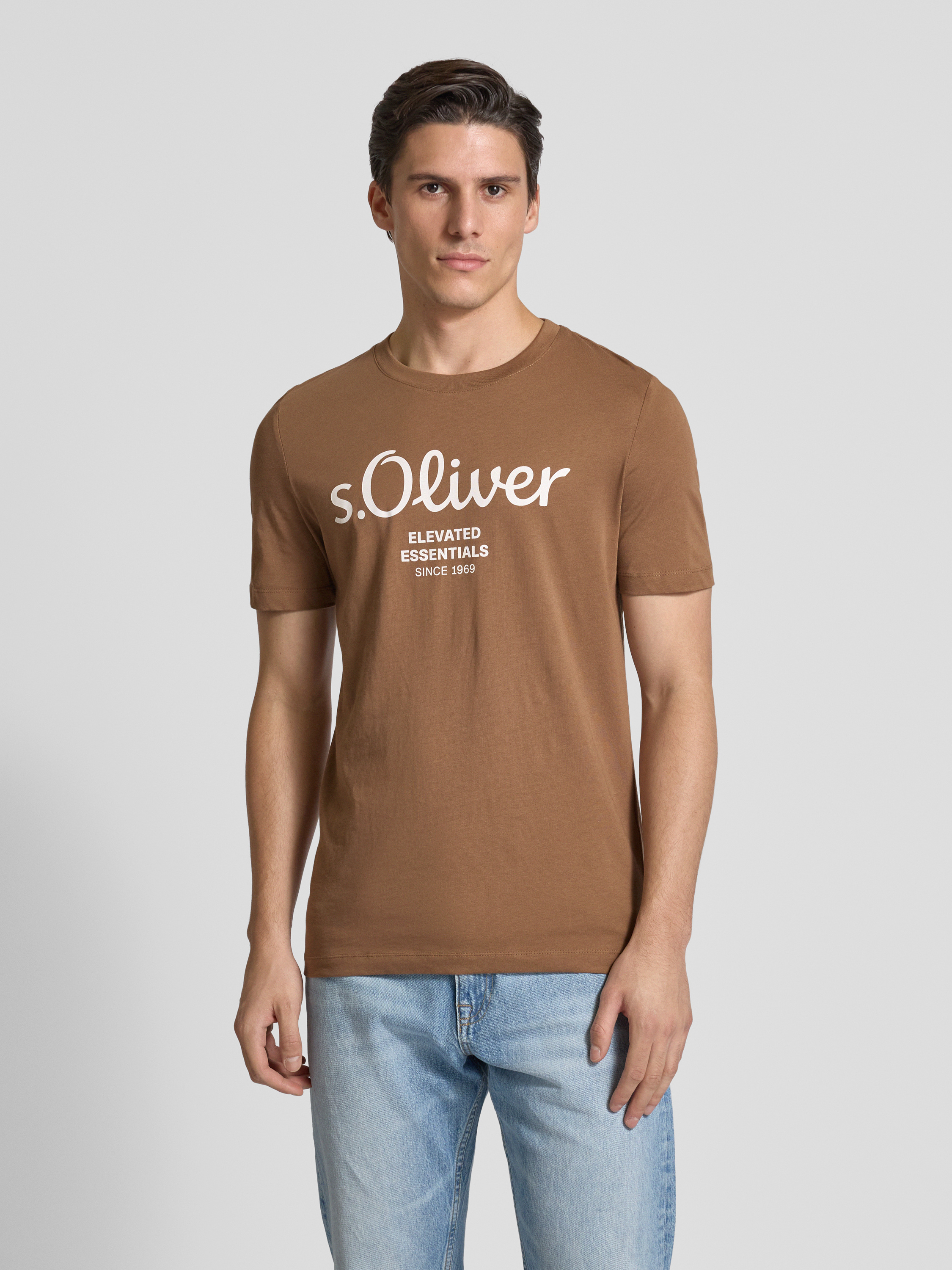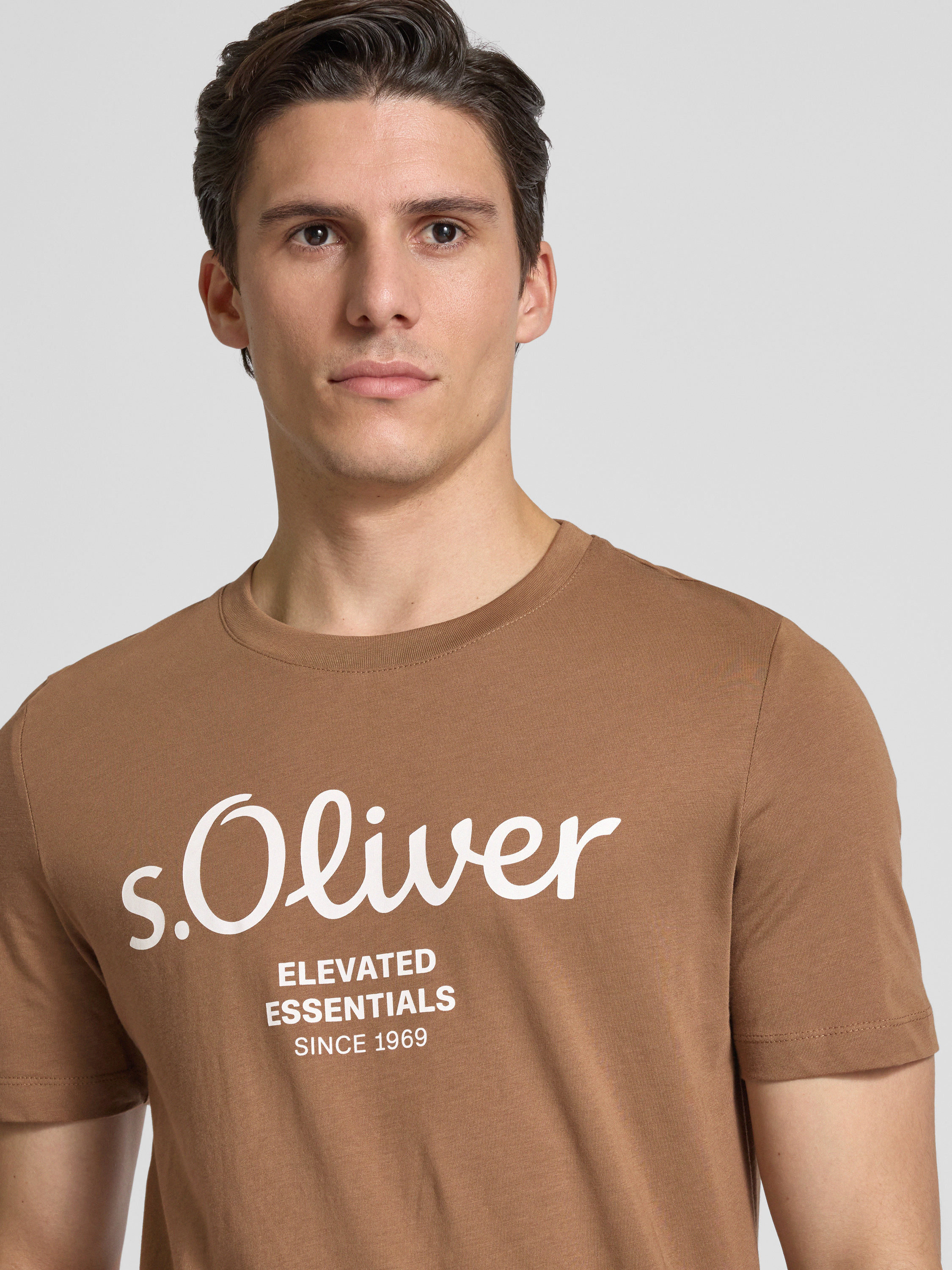 s.Oliver RED LABELRegular Fit T-Shirt aus reiner Baumwolle mit großem Label Print in mittelbraun