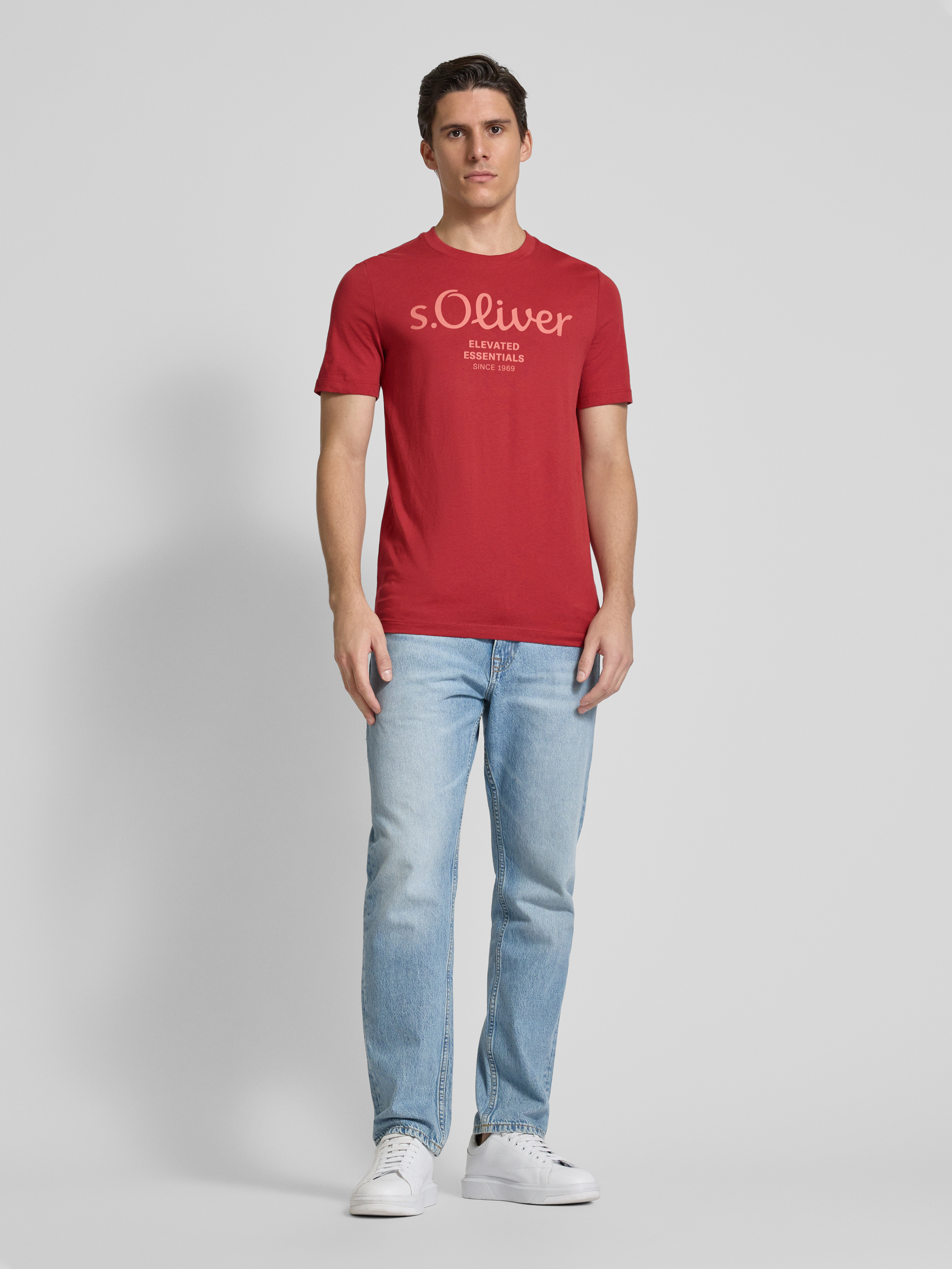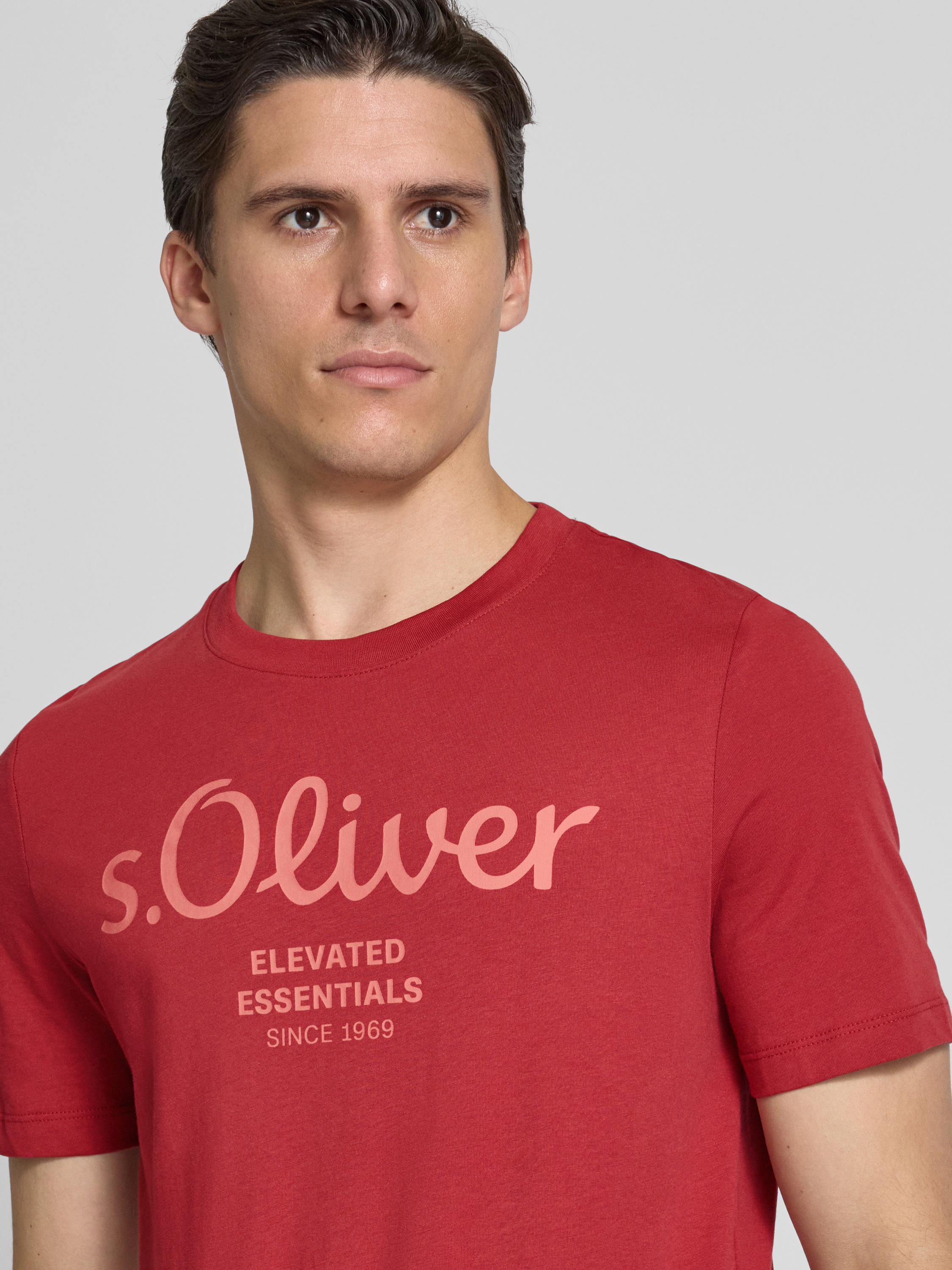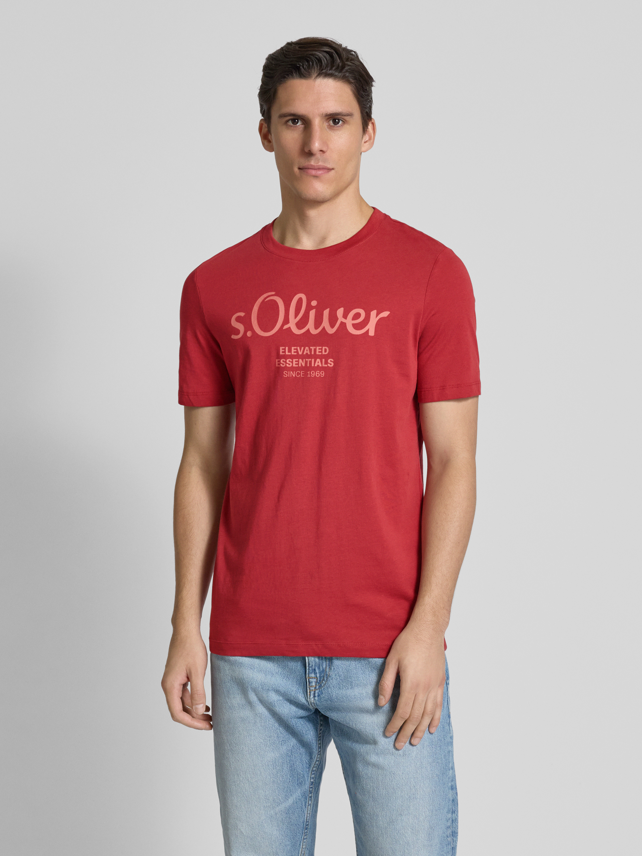 s.Oliver RED LABELRegular Fit T-Shirt aus reiner Baumwolle mit großem Label Print in rot