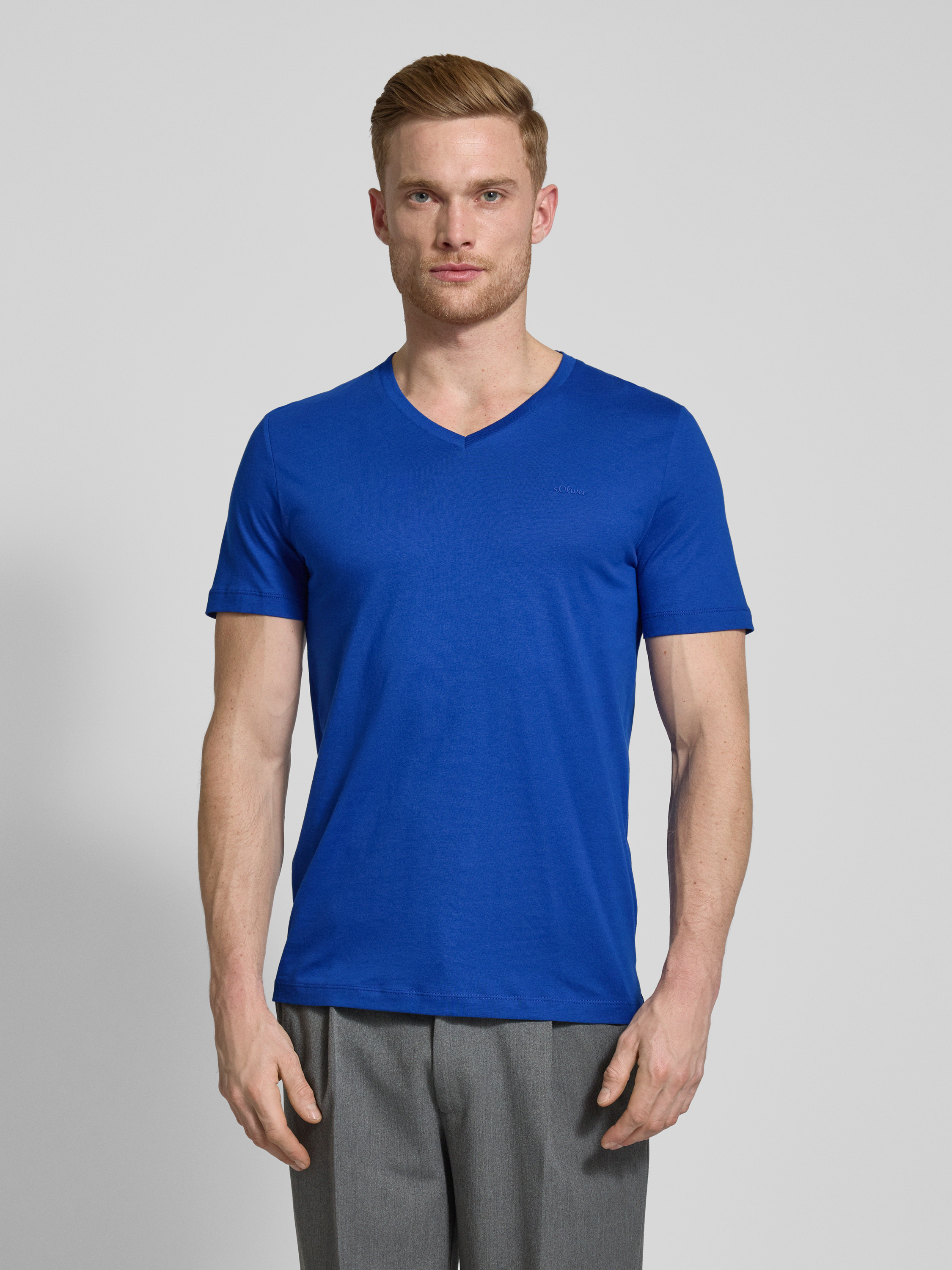 s.Oliver RED LABELRegular Fit T-Shirt aus reiner Baumwolle mit V-Ausschnitt in royal