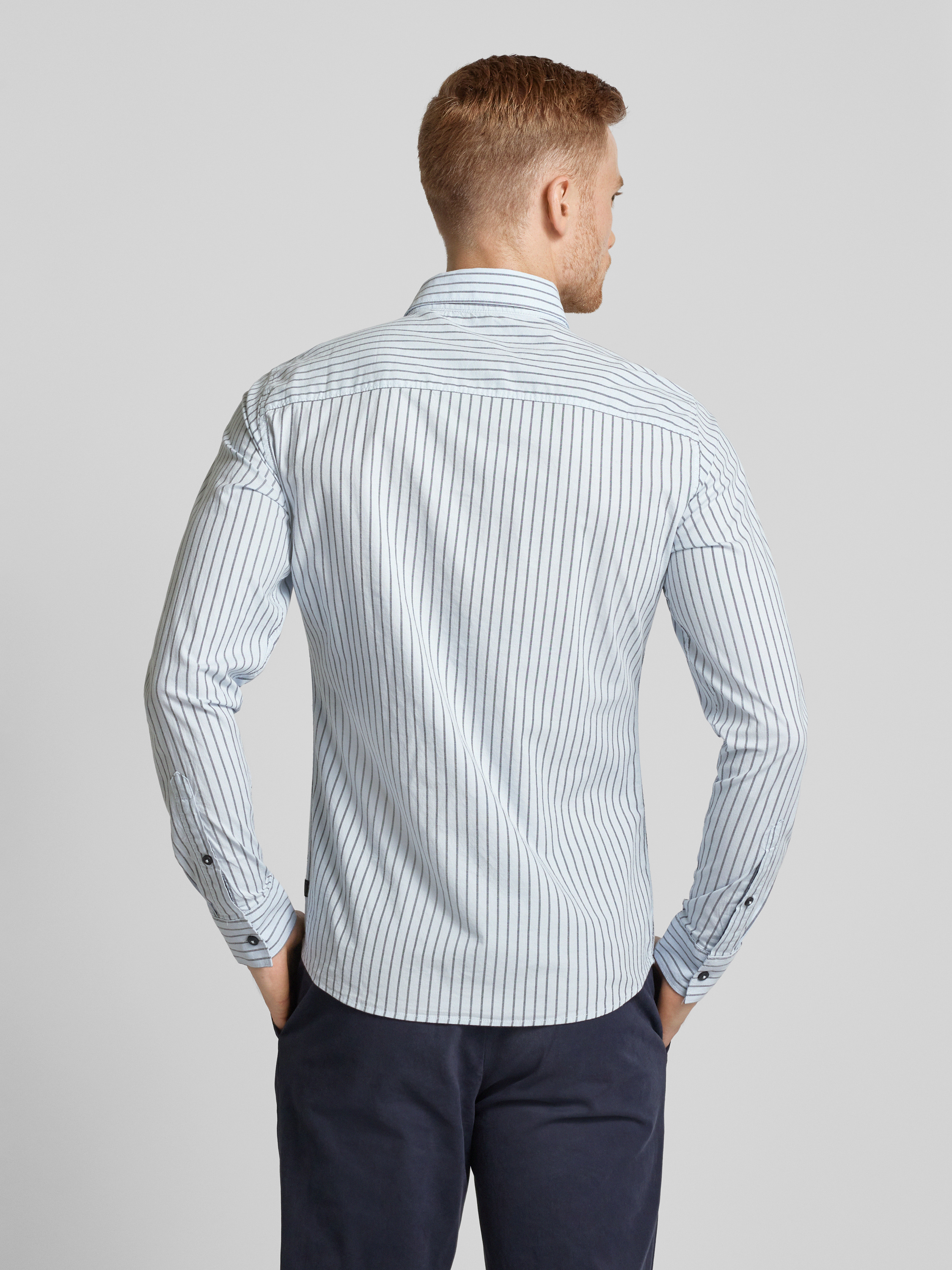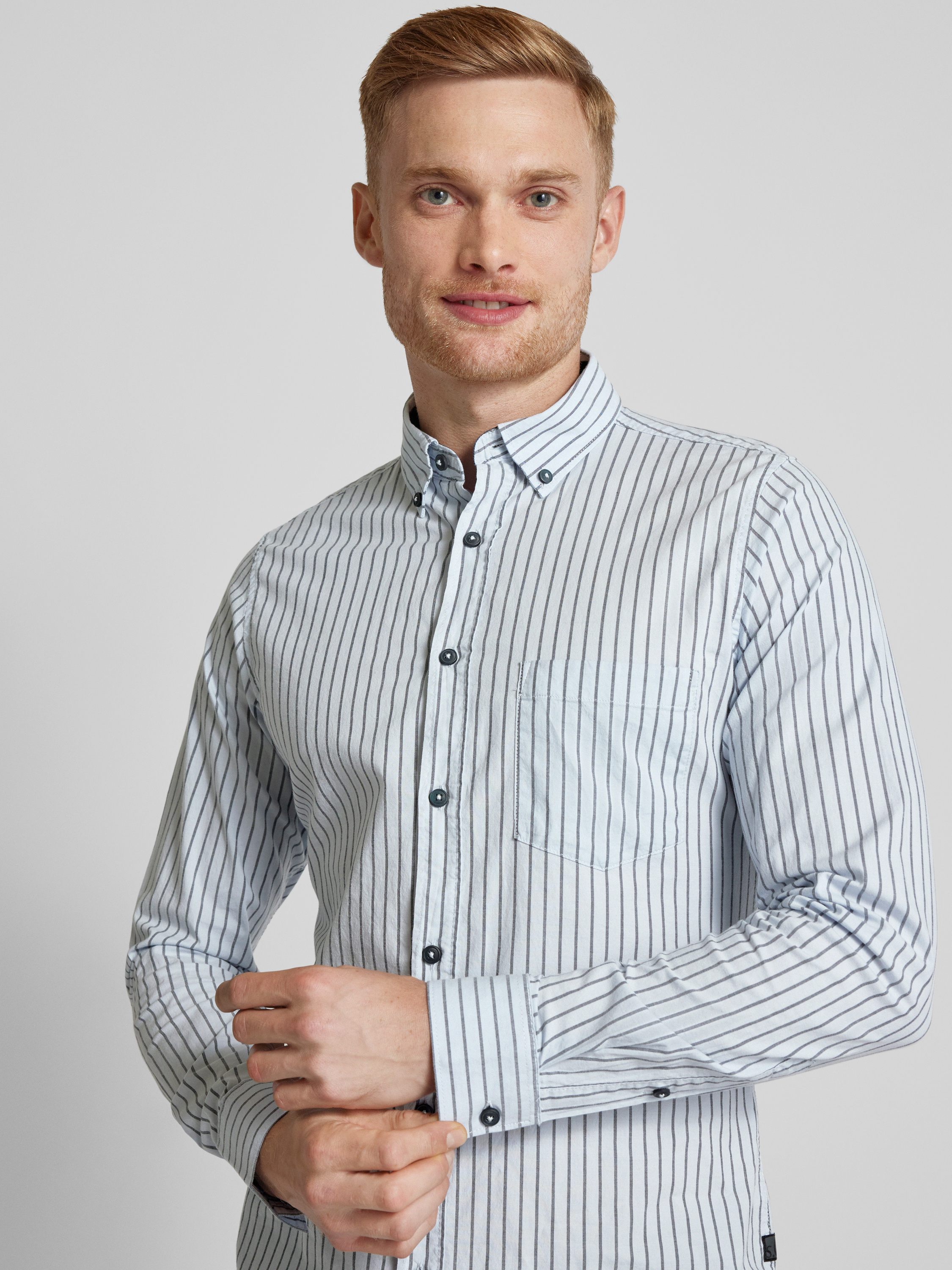 Das Slim Fit Freizeithemd von s.Oliver, aus einem angenehmen Baumwoll-Elasthan-Mix gefertigt, schmiegt sich durch seine schlanke Passform an den Körper an und sorgt für ein gepflegtes Erscheinungsbild. Ein Button-Down-Kragen und die dezente Streifenoptik verleihen dem Hemd eine klassische Note. Die praktische Brusttasche bietet zusätzlichen Komfort.