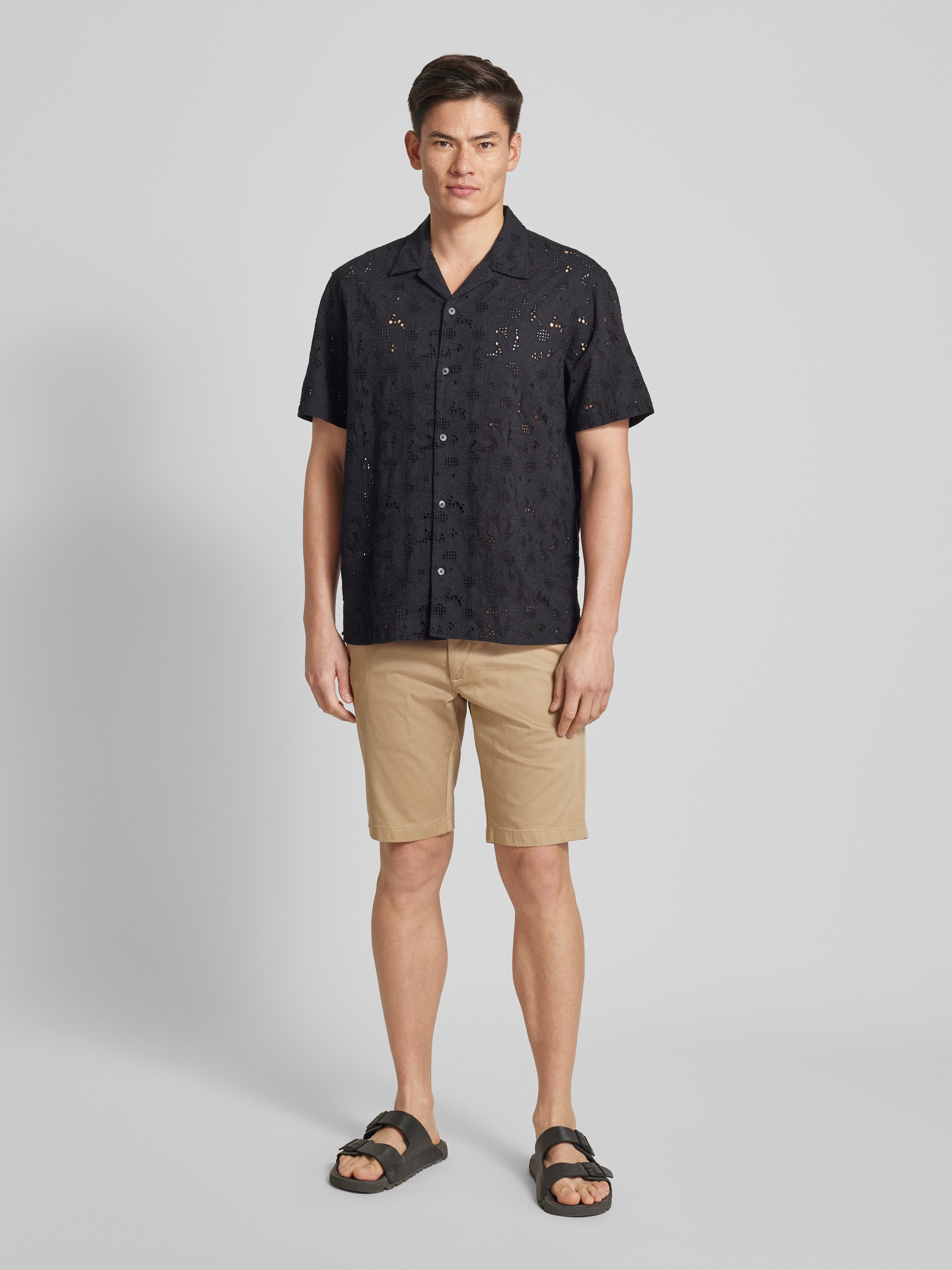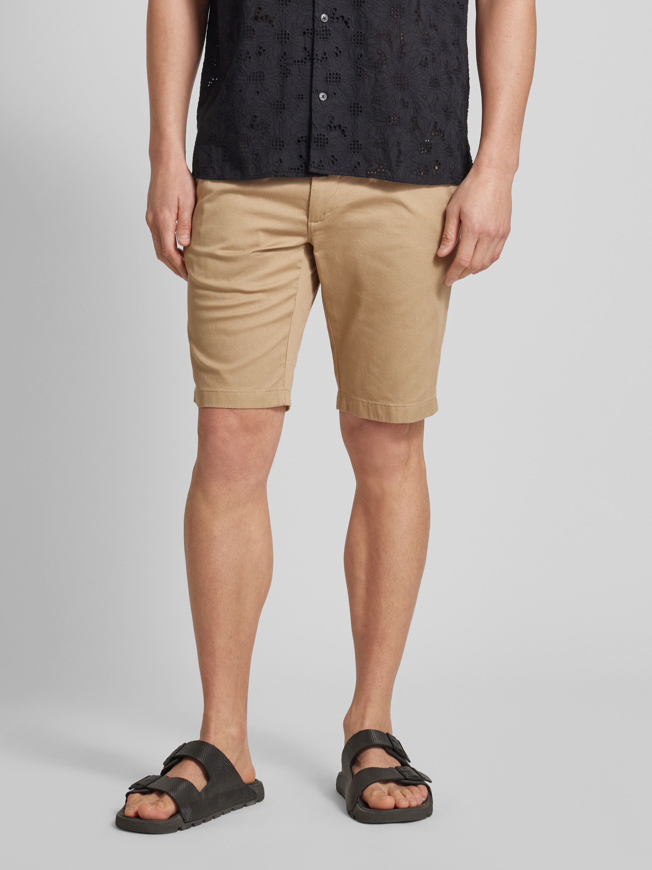 Die s.Oliver RED LABEL Chino-Shorts im Tapered Fit präsentieren sich in einem schlichten Design und bieten dank des Baumwoll-Elasthan-Mixes eine angenehme Passform. Mit ihren praktischen Gesäßtaschen eignen sie sich ideal für sommerliche Tage. Der Schnitt sorgt für eine lässige, aber dennoch stilvolle Silhouette.