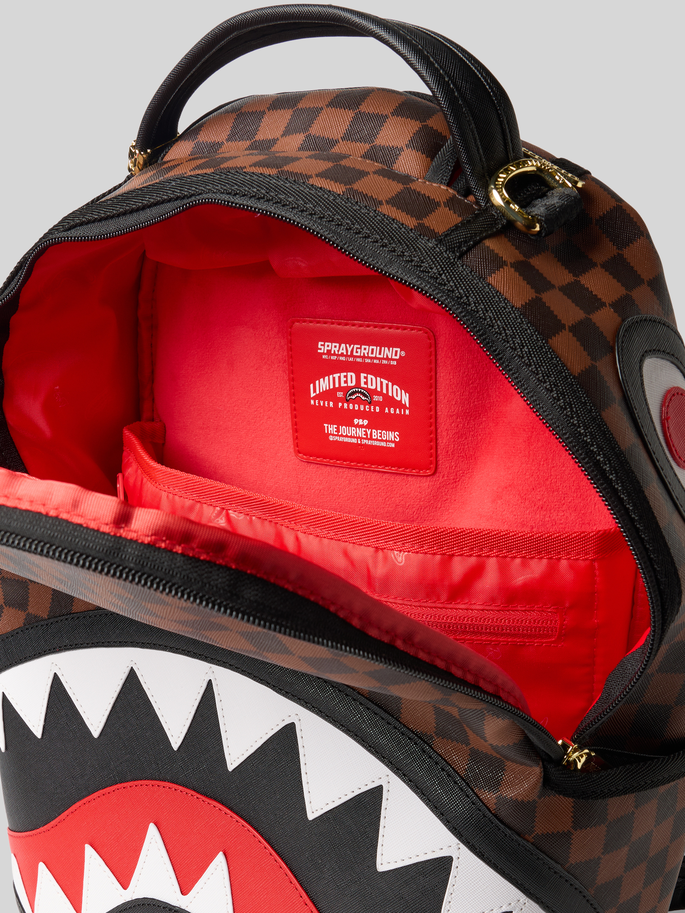 SpraygroundRucksack mit Schulterriemen Modell 'SAWTOOTH SHARKS IN PARIS' in dunkelbraun