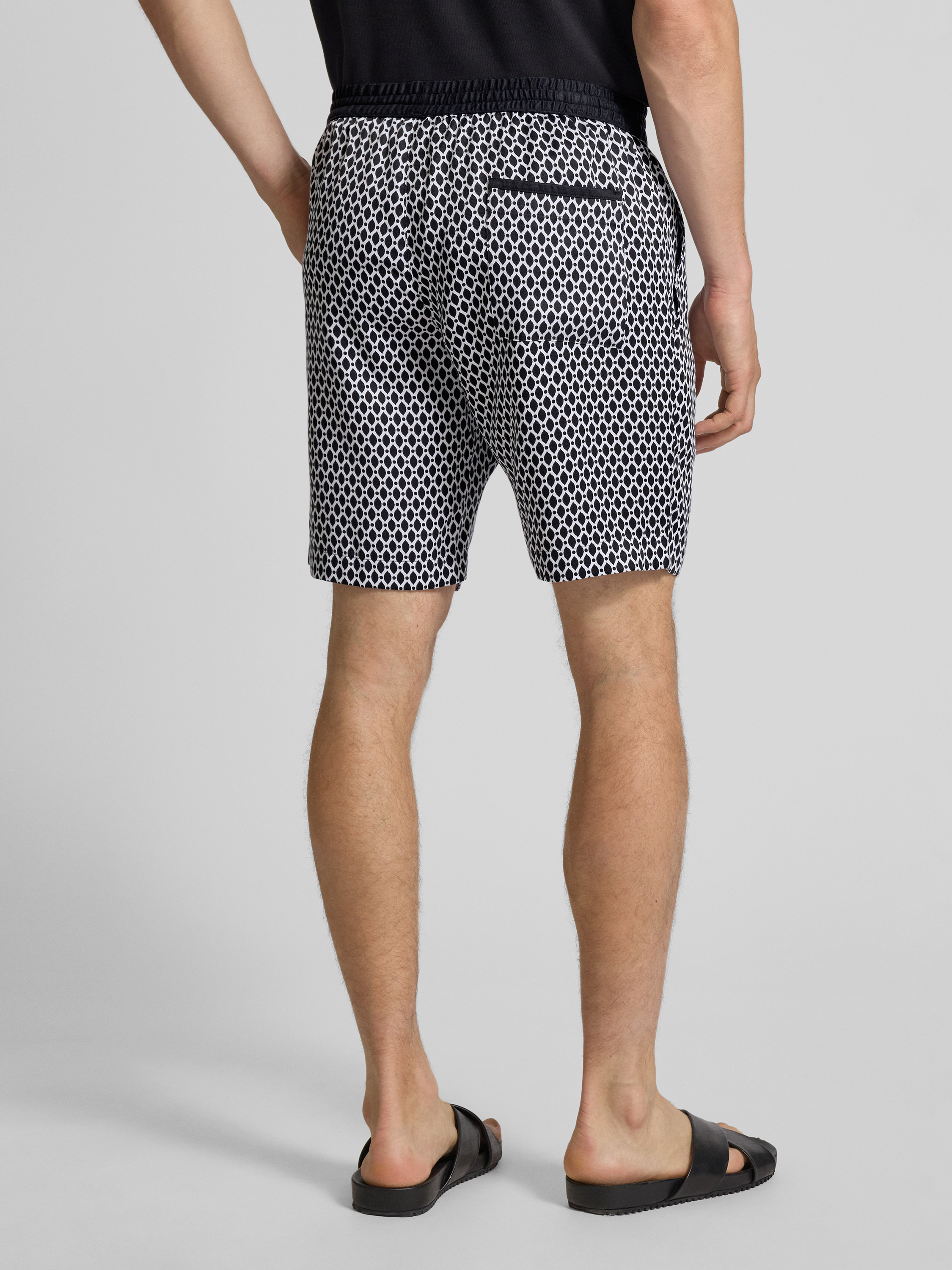Die Loose Fit Shorts 'Hiro2' von Strellson verbinden lässigen Stil mit hohem Tragekomfort. Dank der lockeren Passform und dem atmungsaktiven Lyocell-Material eignen sie sich ideal für warme Tage. Seitliche Eingrifftaschen bieten praktischen Stauraum, während das Allover-Muster modische Akzente setzt.