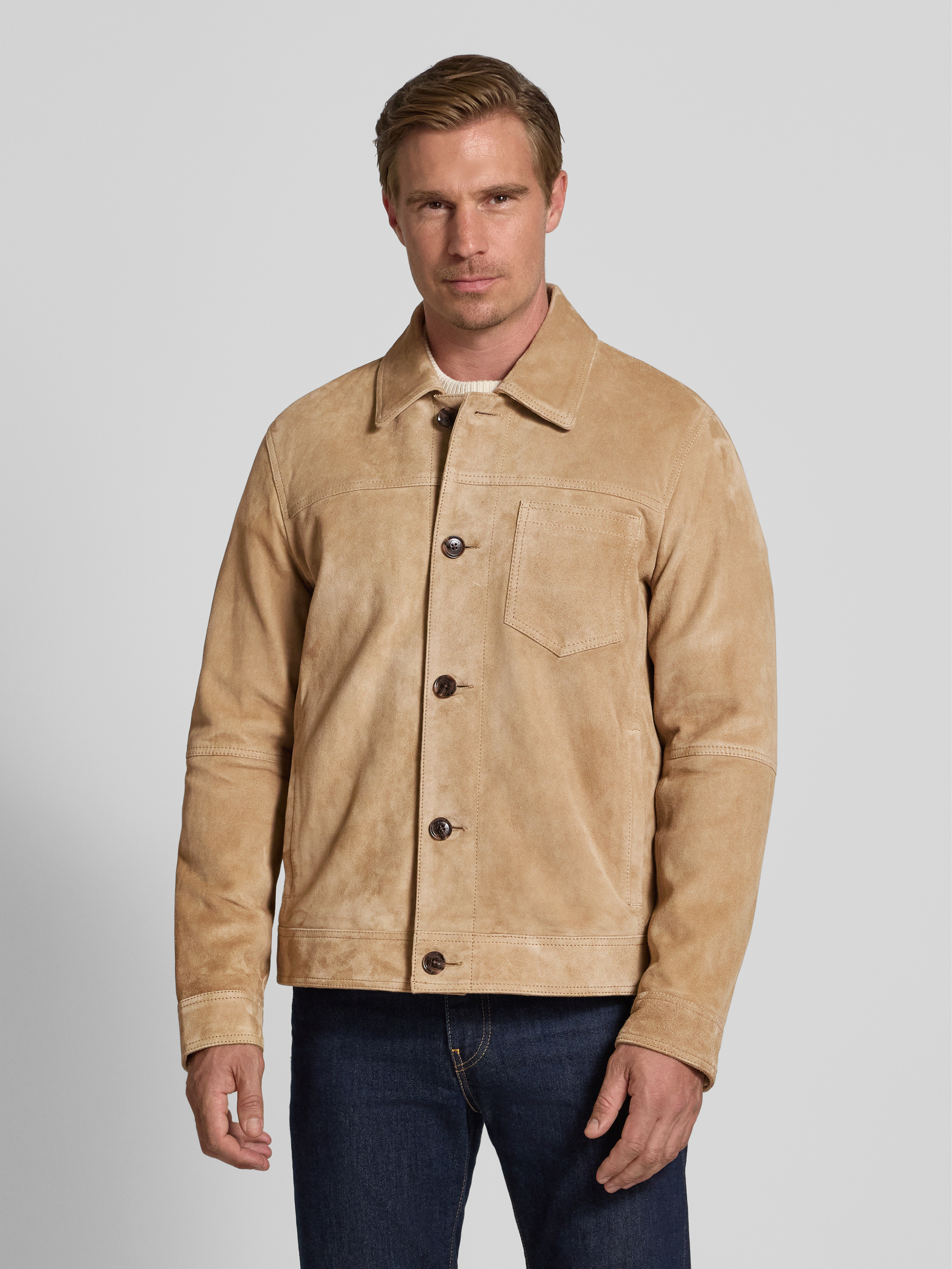 Regular Fit Lederjacke aus echtem Ziegen-Velours Modell 'FLINT' in sand