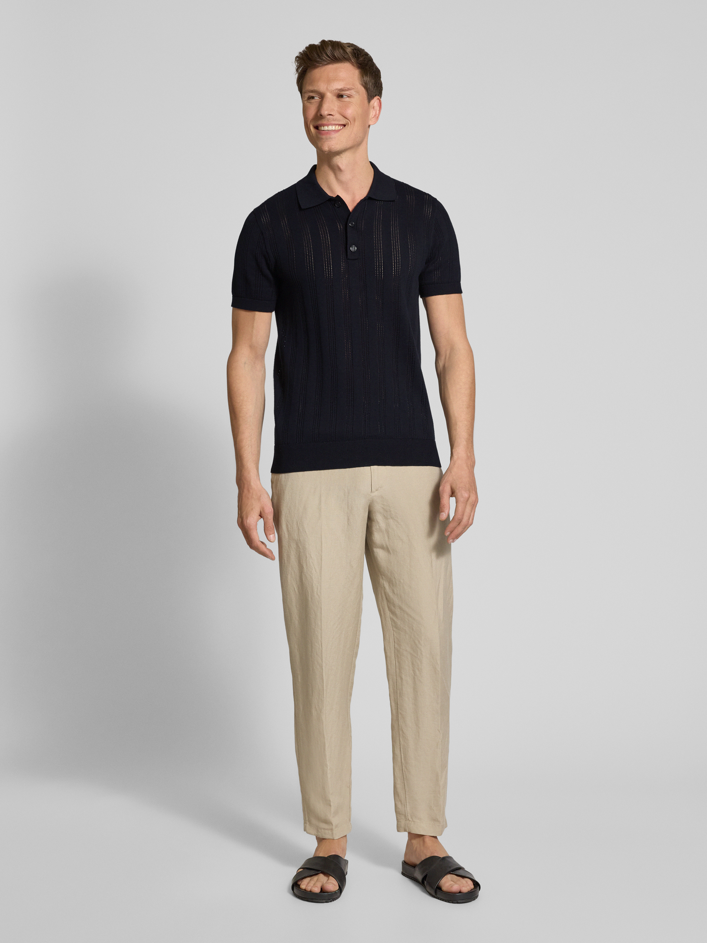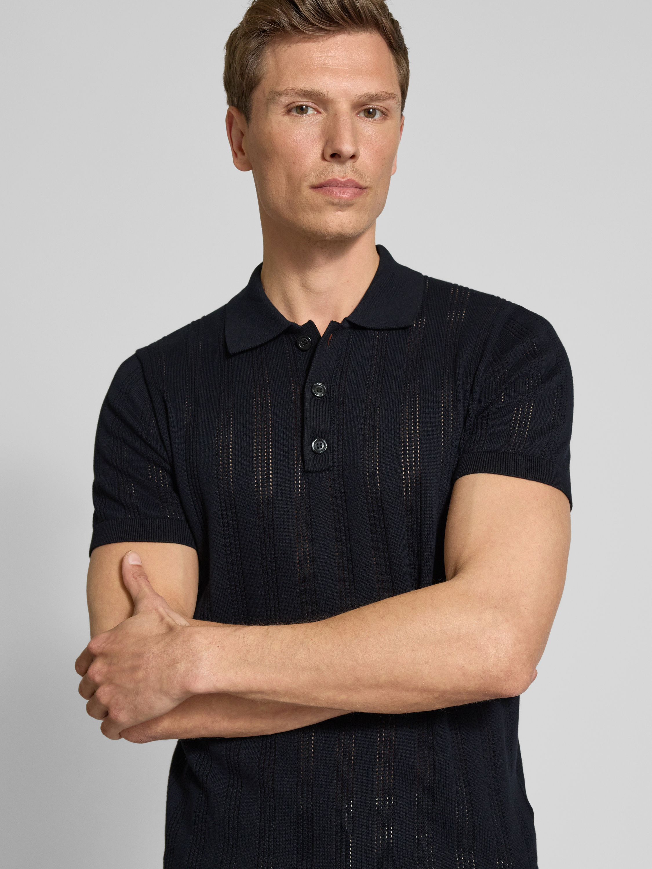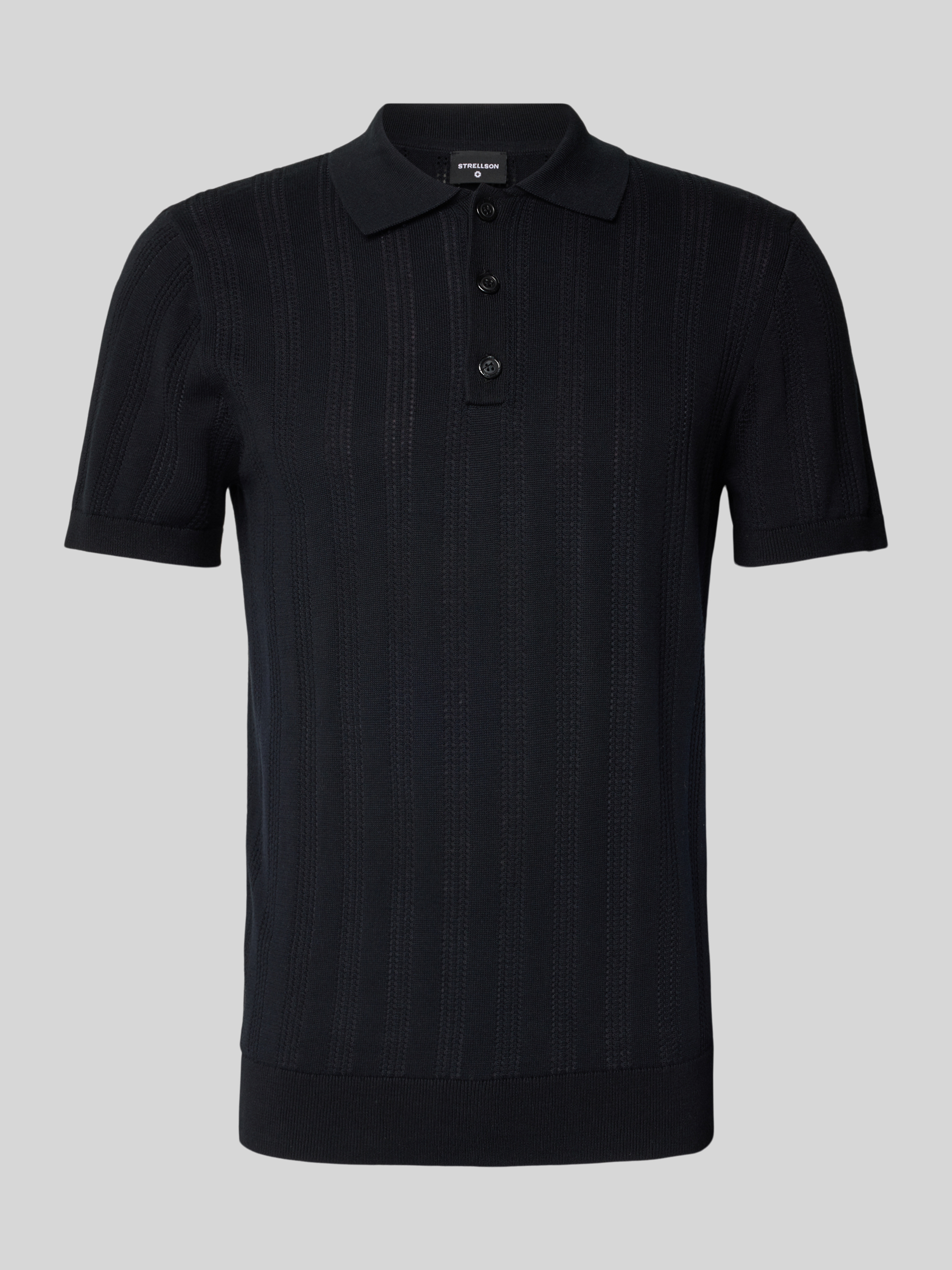 StrellsonSlim Fit Poloshirt mit Lochmuster Modell 'Keeth' in black