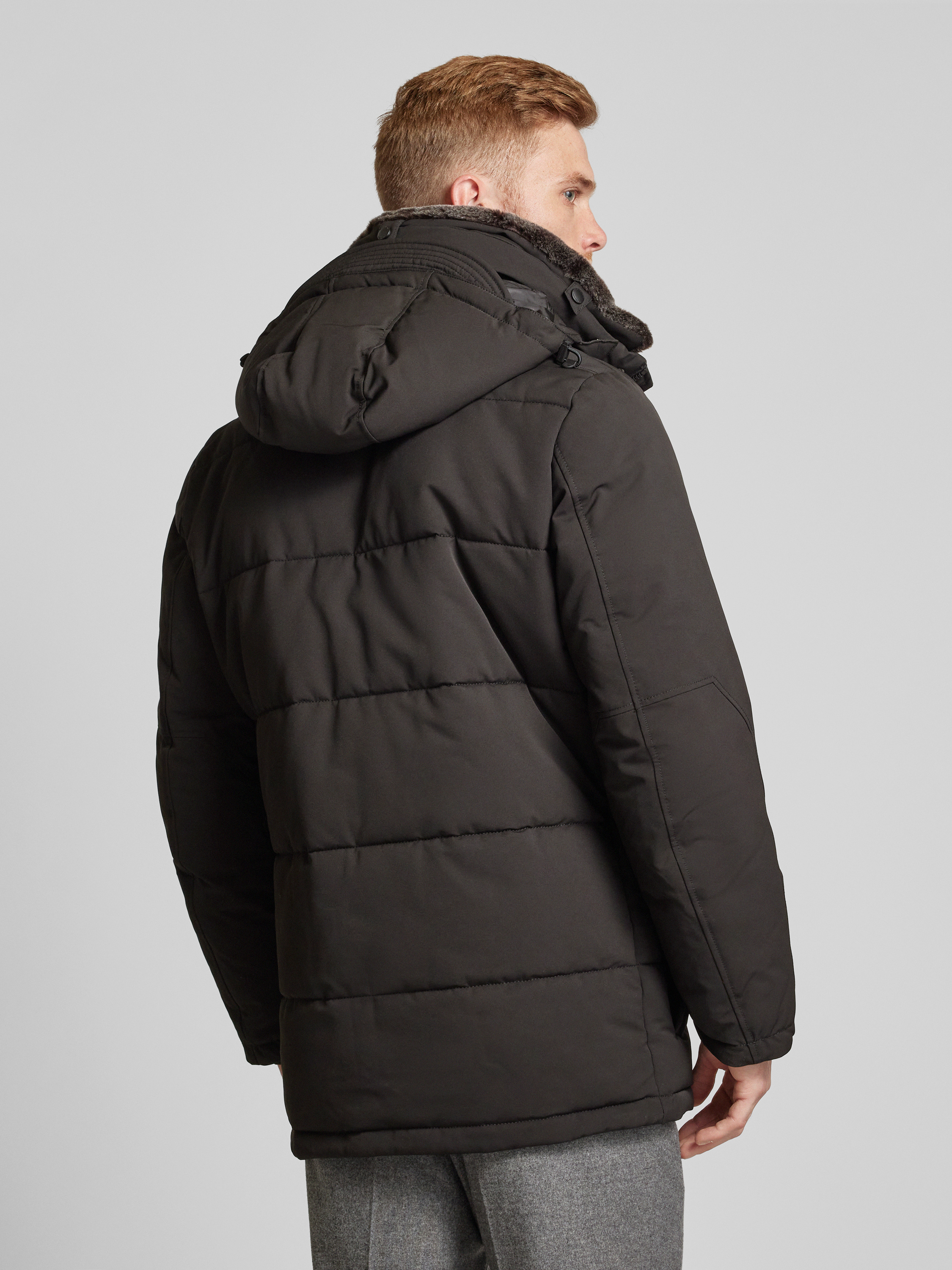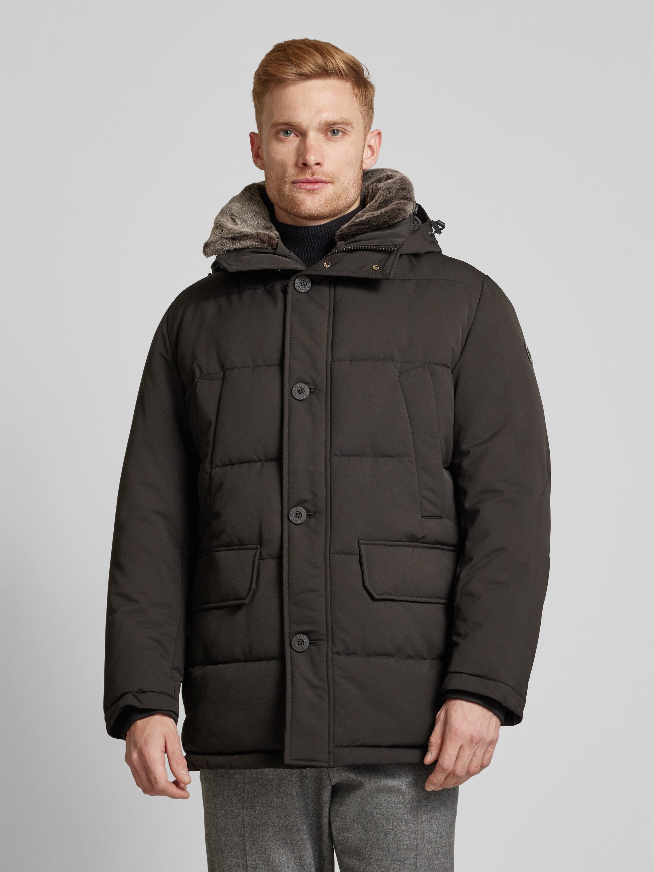 Die Strellson Steppjacke mit Kapuze präsentiert sich im lässigen Schnitt, der Bewegungsfreiheit verspricht und durch den Tunnelzug individuell angepasst werden kann. Praktische Leistentaschen und geräumige Pattentaschen bieten ausreichend Stauraum. Diese Jacke eignet sich ideal für entspannte Tage im Freien.