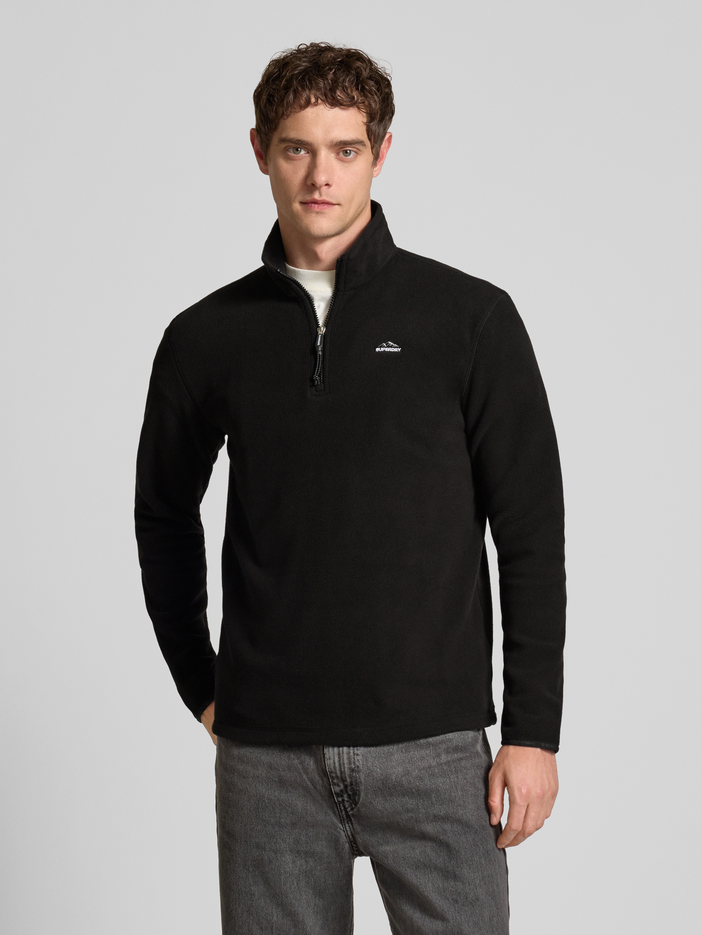 SuperdryFleecepullover mit Label-Stitching und Stehkragen in black