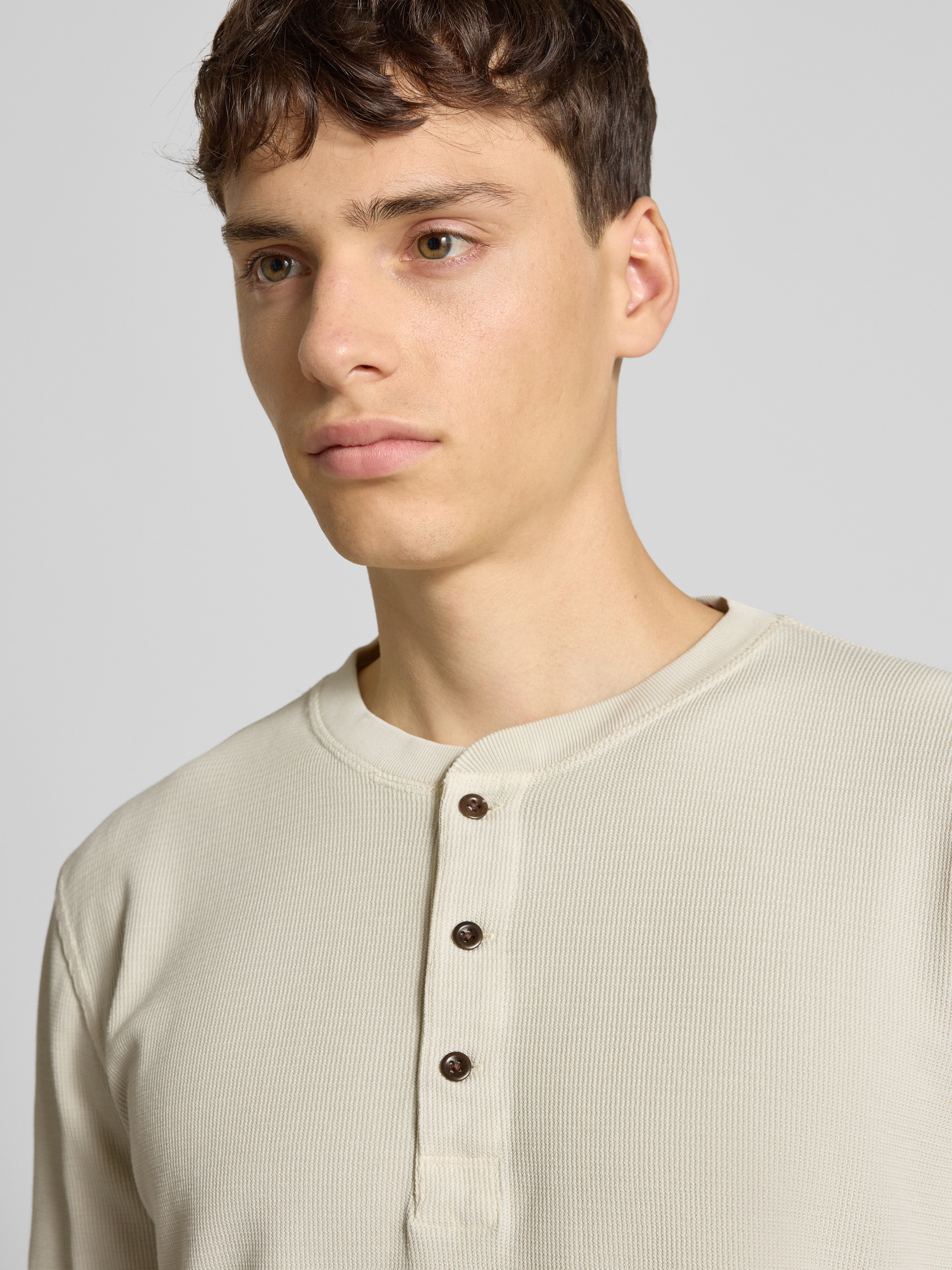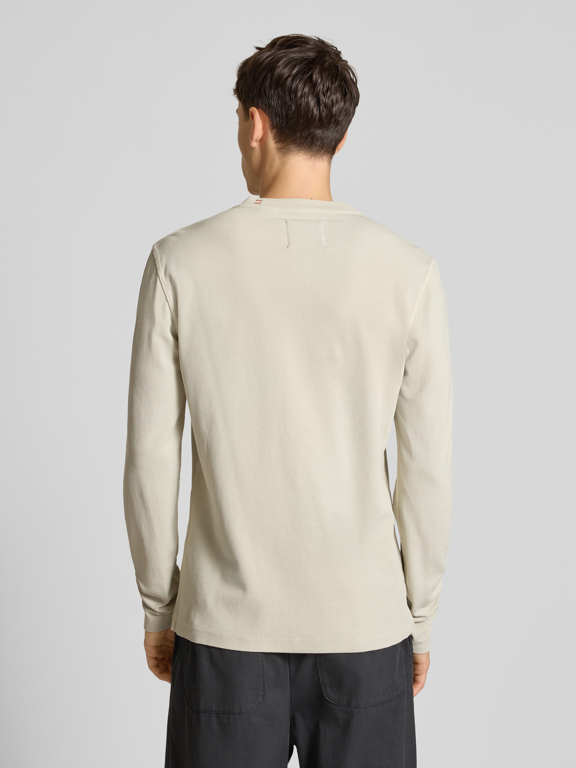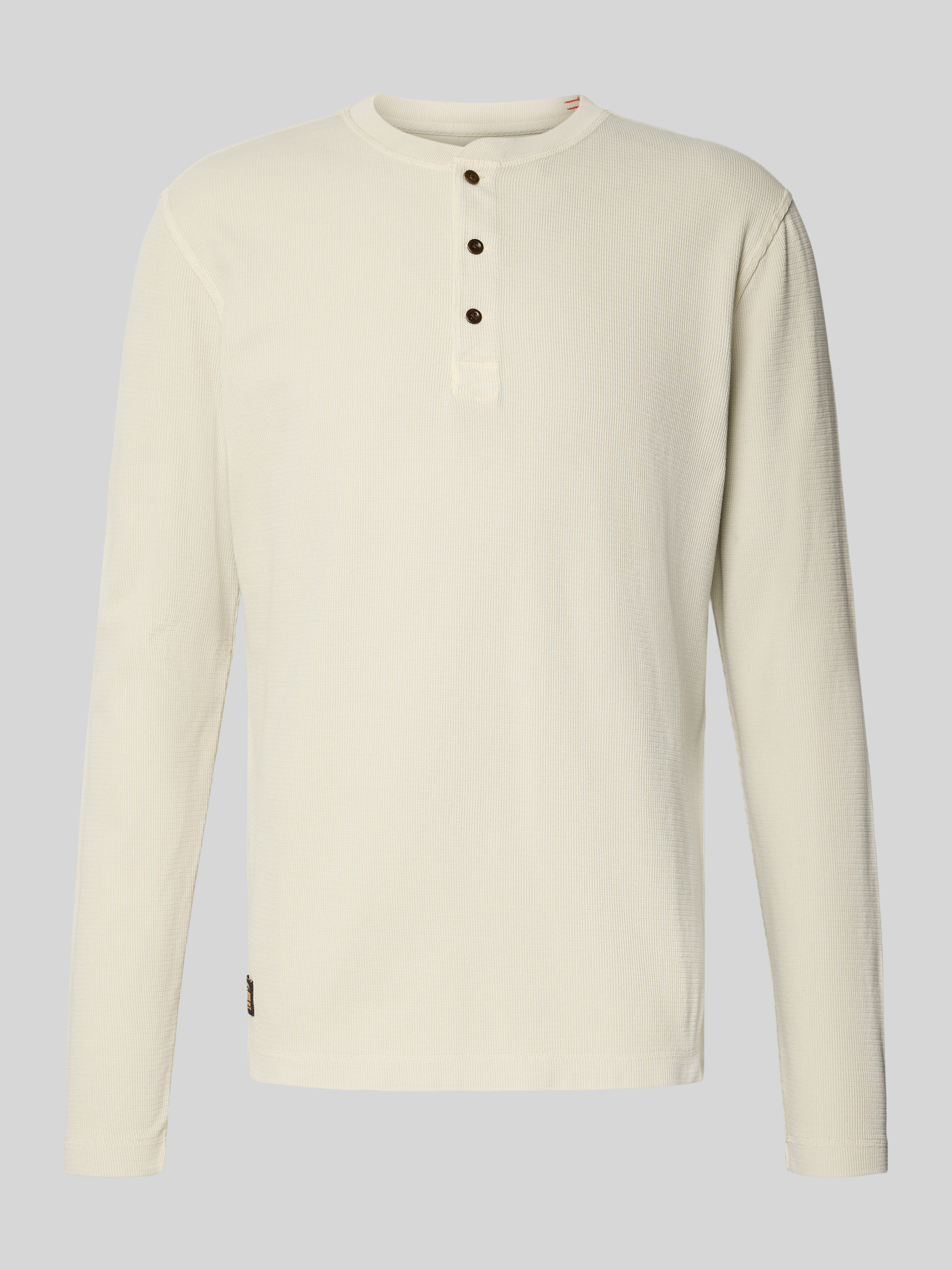 Das Longsleeve von Superdry kombiniert ein ansprechendes Strukturmuster mit einer klassischen Knopfleiste und einem Rundhalsausschnitt. Gefertigt aus reiner Baumwolle, bietet es einen angenehmen Tragekomfort, der sich ideal für den Alltag eignet. Der Regular-Fit sorgt für eine entspannte Passform.