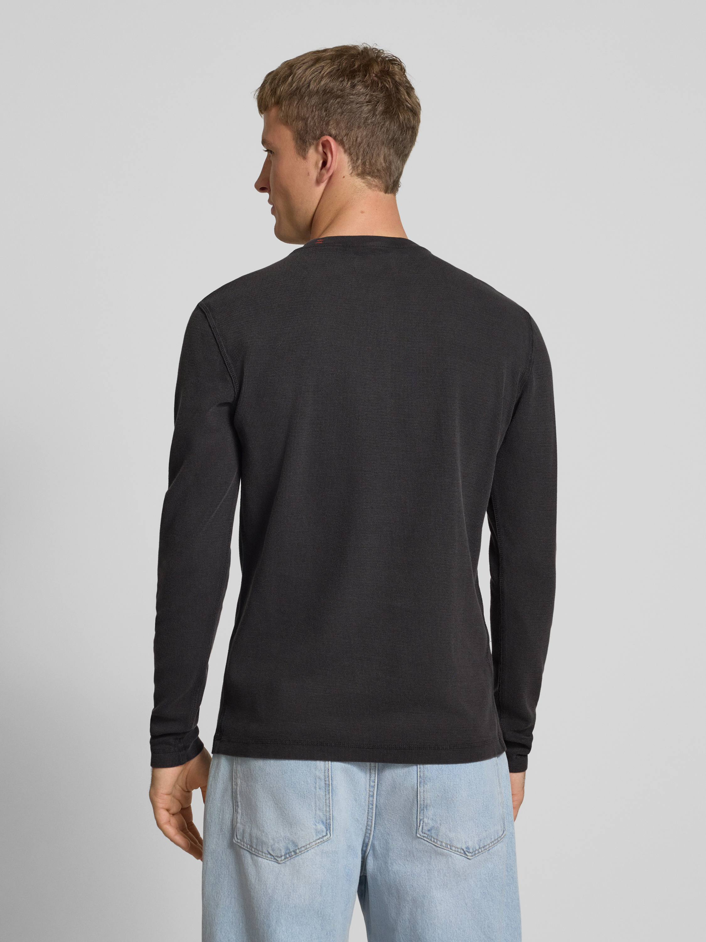 Das Longsleeve von Superdry kombiniert ein ansprechendes Strukturmuster mit einer klassischen Knopfleiste und einem Rundhalsausschnitt. Gefertigt aus reiner Baumwolle, bietet es einen angenehmen Tragekomfort, der sich ideal für den Alltag eignet. Der Regular-Fit sorgt für eine entspannte Passform.