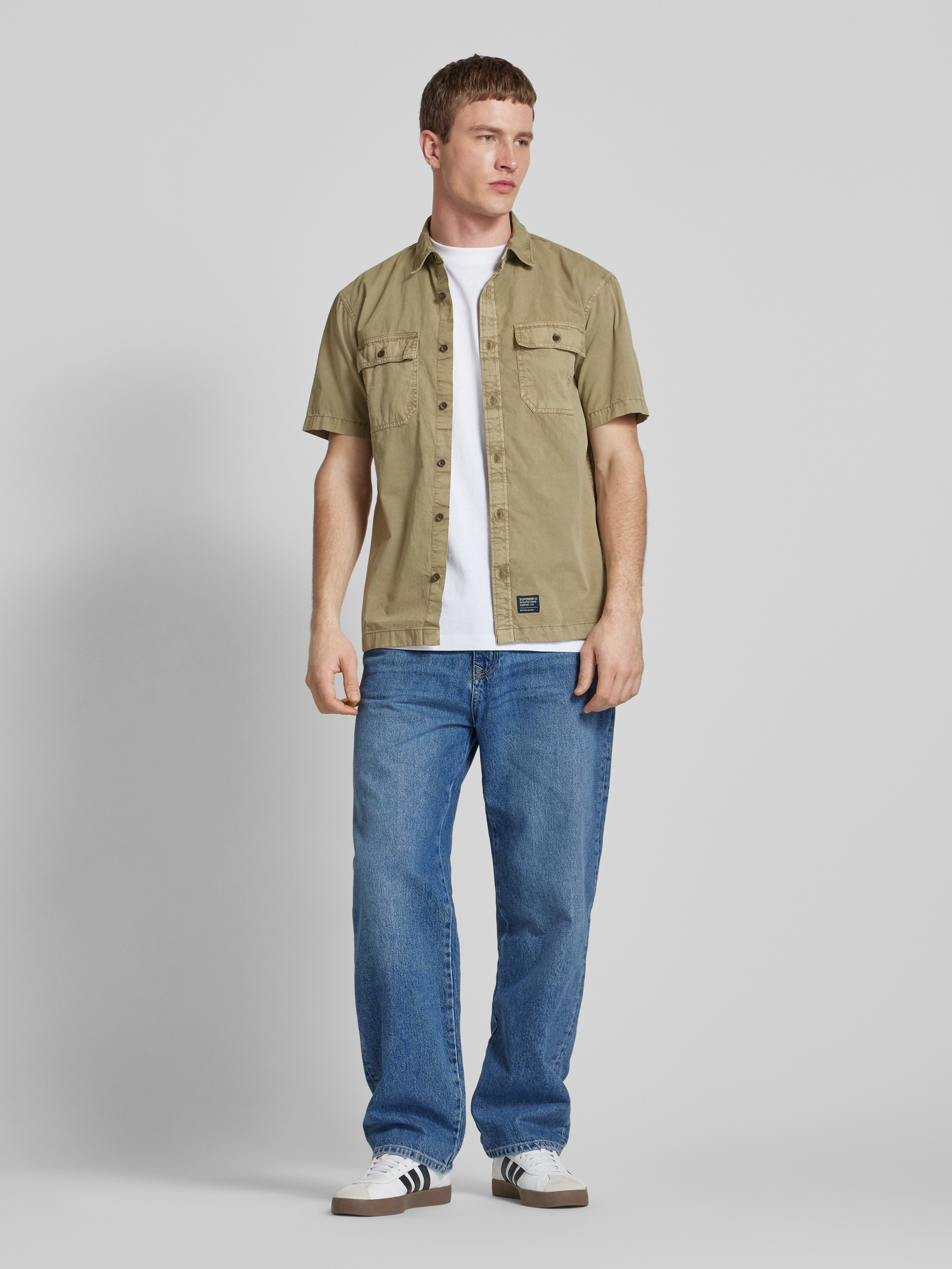 SuperdryRegular Fit Freizeithemd mit 1/2-Arm Modell 'Military' in camel