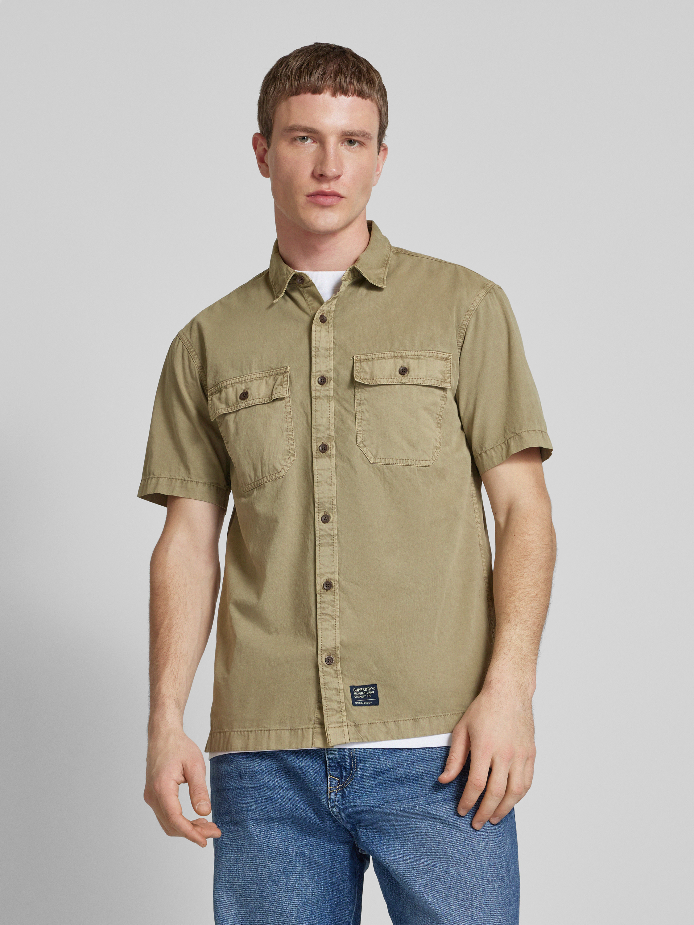 Das Herren Freizeithemd von Superdry, Modell 'Military', aus reiner Baumwolle, kombiniert Komfort und Stil. Der Regular Fit und der Kentkragen verleihen dem Hemd eine klassische Note, während die praktischen Brustpattentaschen für Funktionalität sorgen. Ideal für entspannte Anlässe.