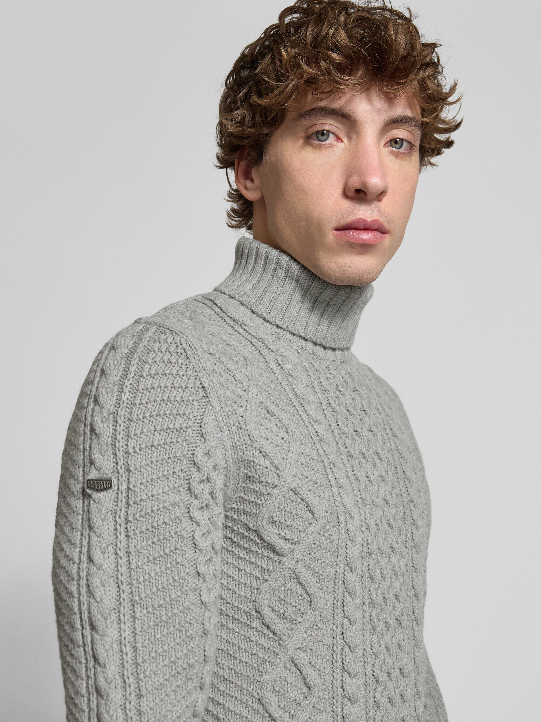 SuperdryStrickpullover mit Zopfmuster Modell 'Jacob' in hellgrau