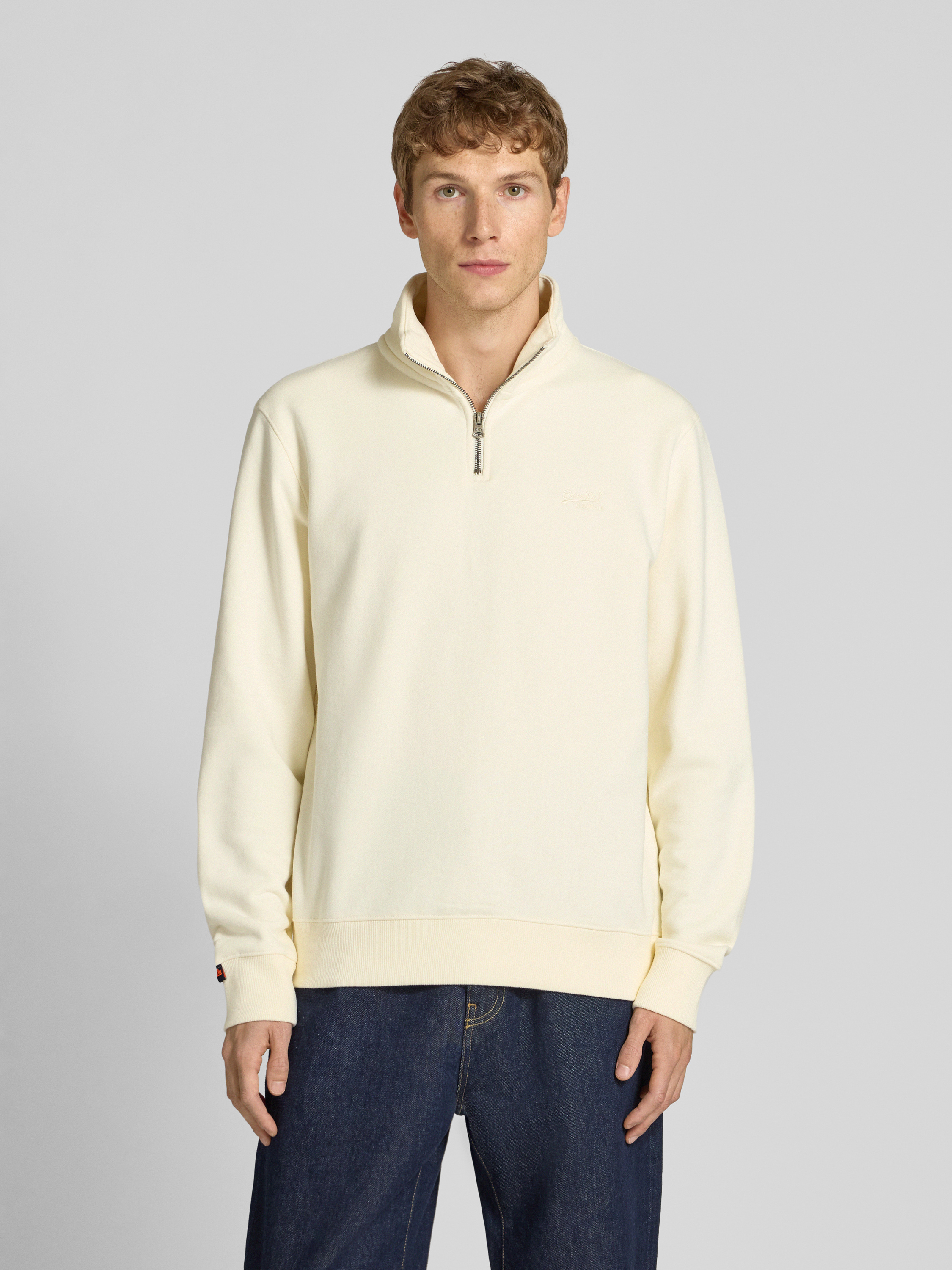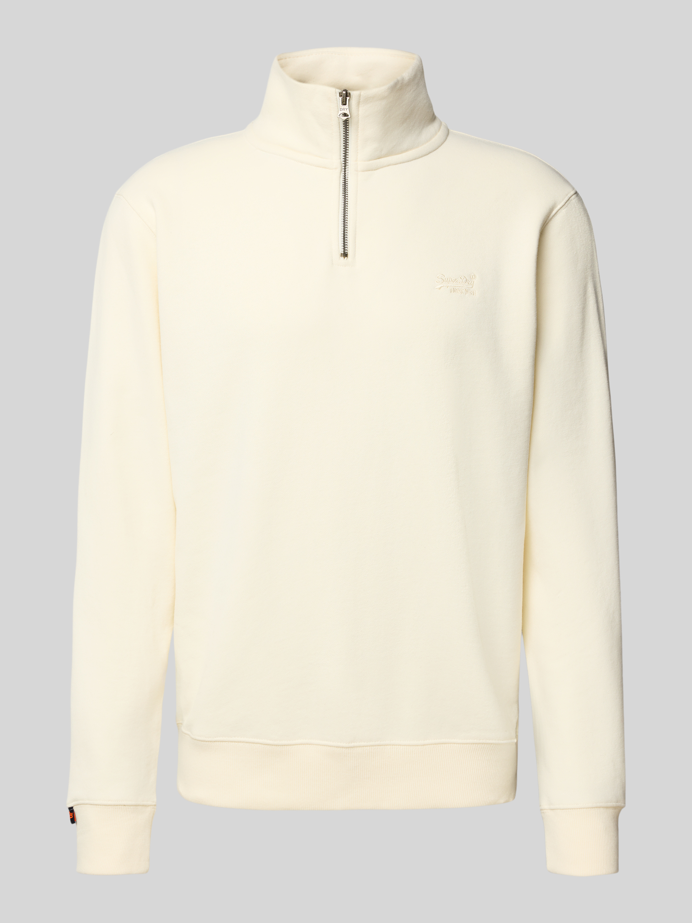 SuperdrySweatshirt mit Troyer-Kragen und Logo-Stitching in offwhite