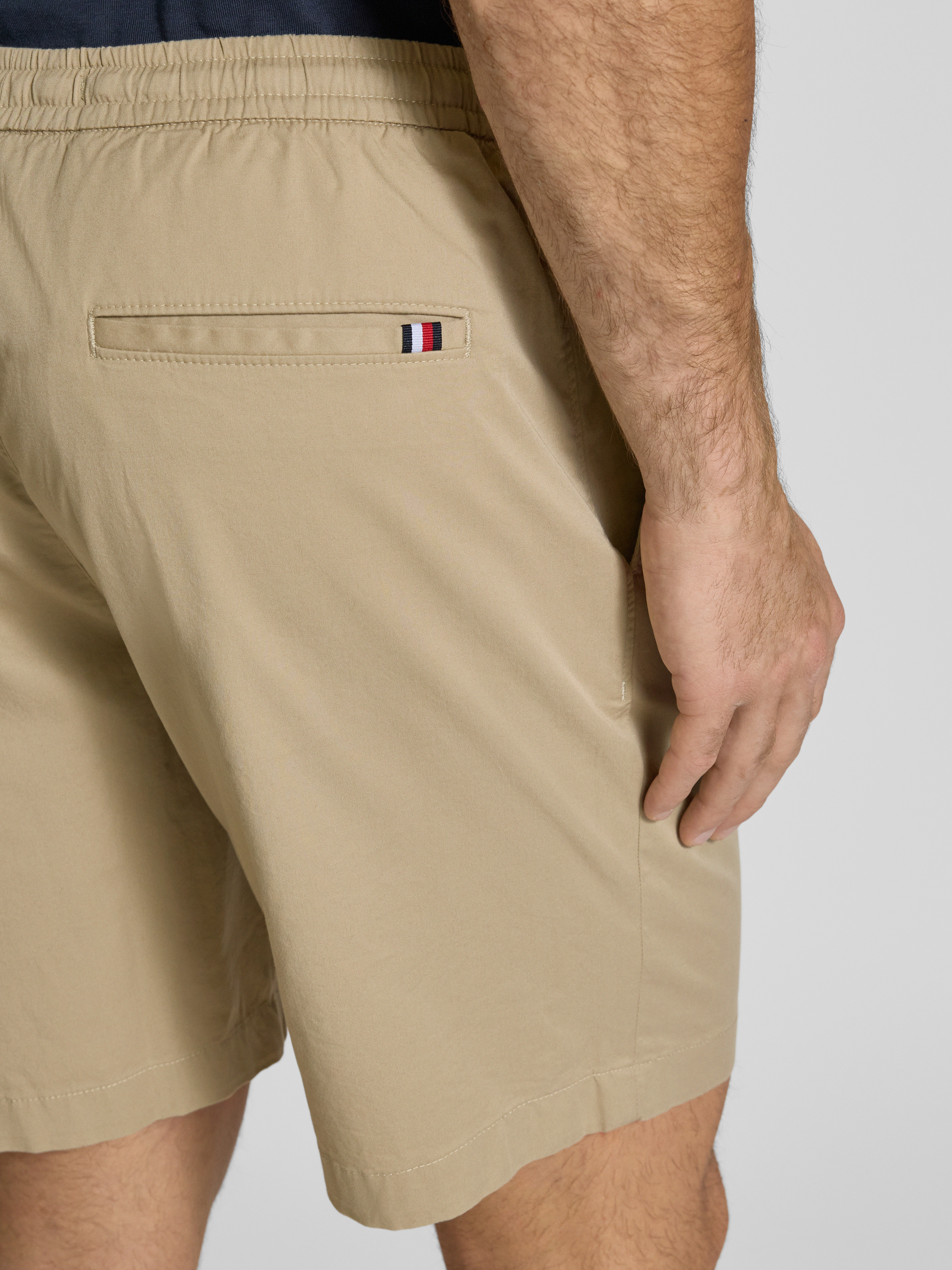 Die Regular Fit Shorts von Tommy Hilfiger vereinen Komfort und Stil durch ihren Baumwoll-Elasthan-Mix, der eine angenehme Bewegungsfreiheit ermöglicht. Mit einem elastischen Bund und praktischen Taschen eignen sie sich ideal für entspannte Freizeitaktivitäten. Die unifarbene Optik und das dezente Logo-Stitching runden das zeitlose Design ab.