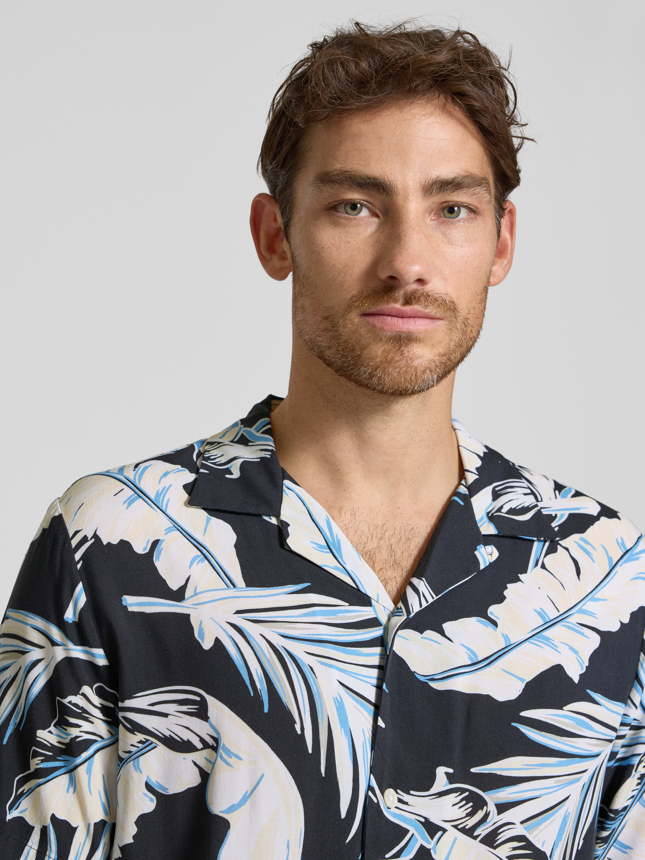 Das Tommy Hilfiger Freizeithemd zeigt sich in einem tropischen Allover-Muster und bietet durch seinen Regular Fit eine bequeme Passform. Der Reverskragen und die Seitenschlitze verleihen dem kurzärmeligen Design eine legere Note. Die reine Viskose sorgt für ein angenehmes Tragegefühl.