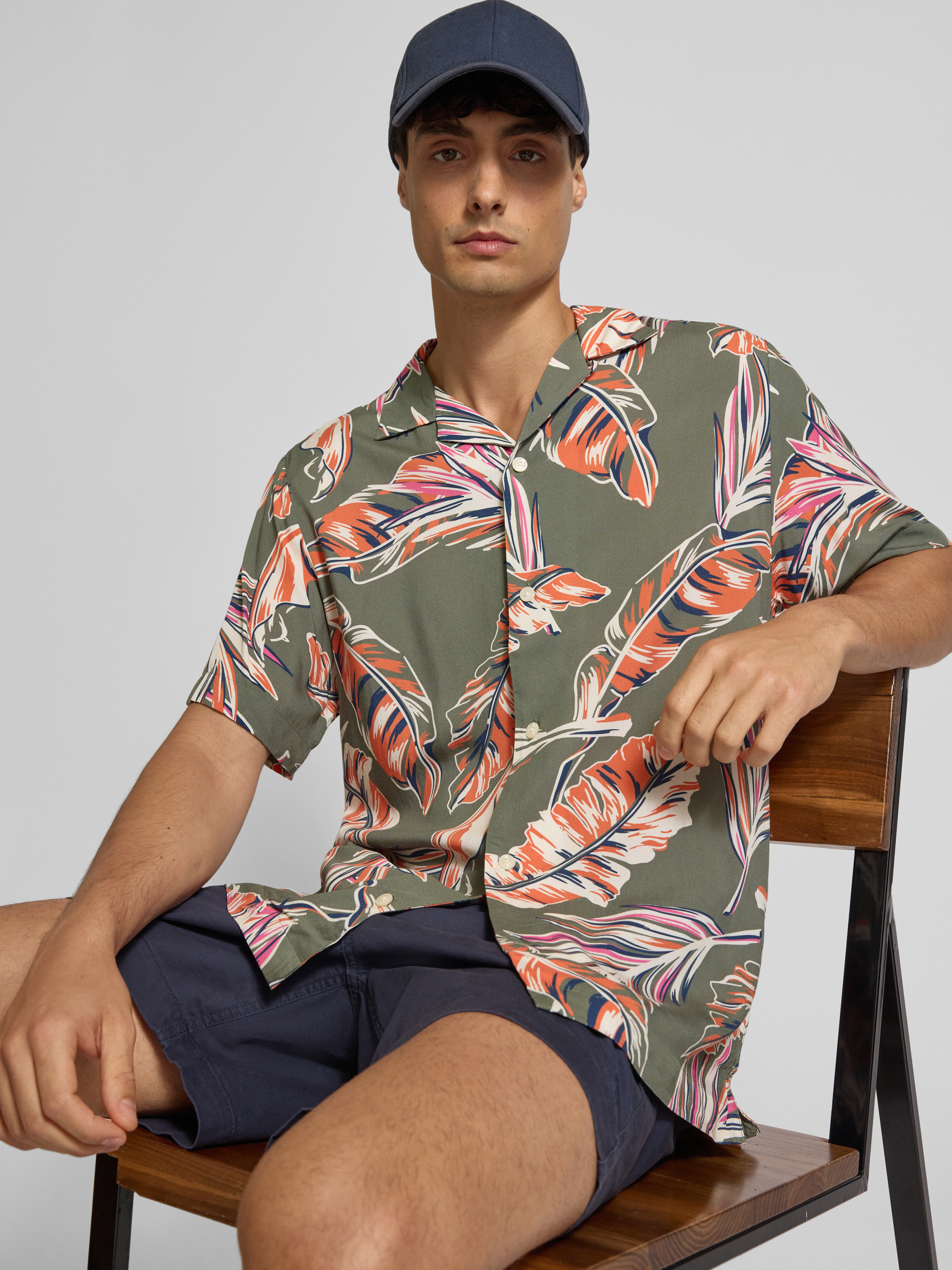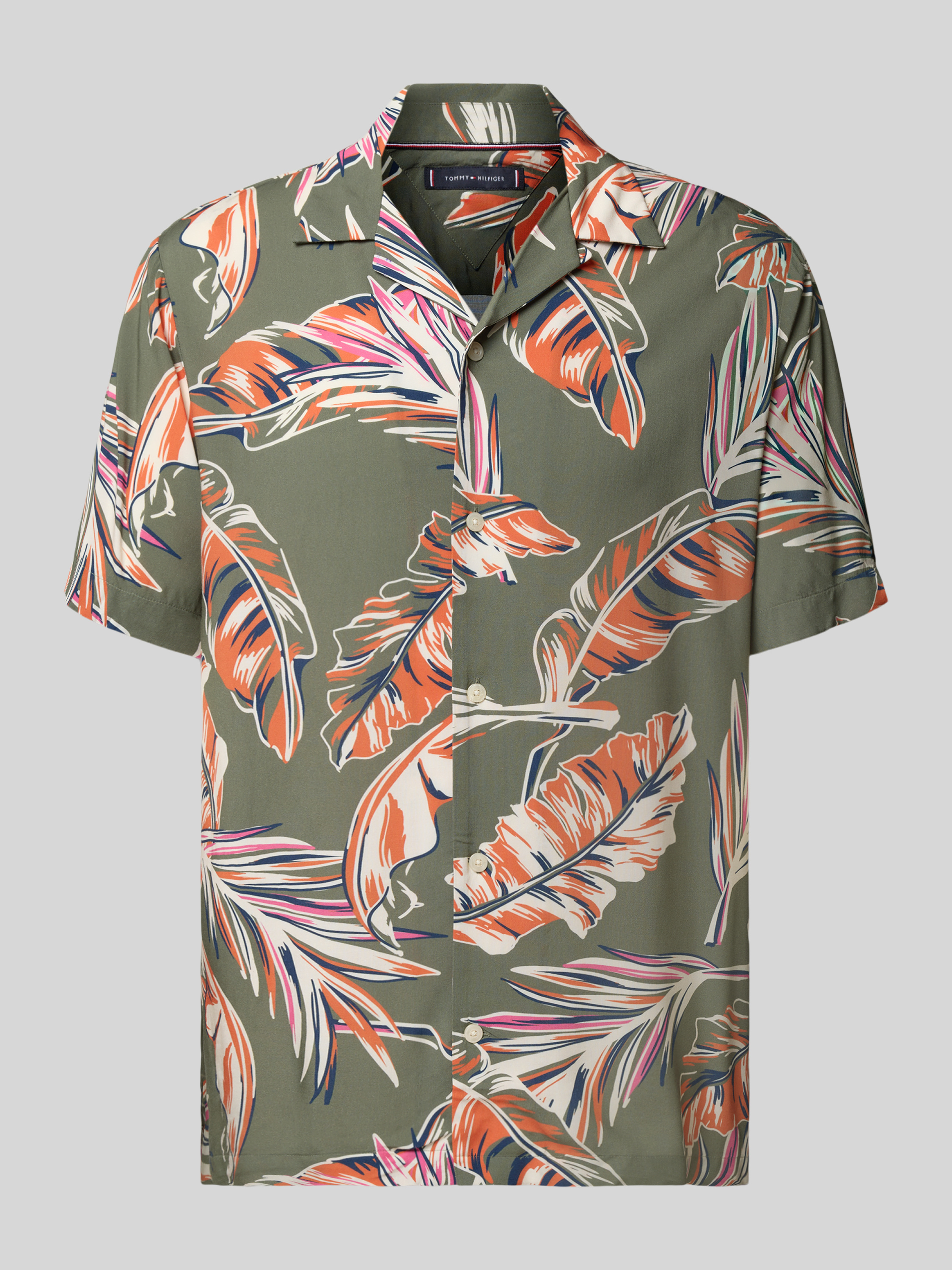 Das Tommy Hilfiger Freizeithemd zeigt sich in einem tropischen Allover-Muster und bietet durch seinen Regular Fit eine bequeme Passform. Der Reverskragen und die Seitenschlitze verleihen dem kurzärmeligen Design eine legere Note. Die reine Viskose sorgt für ein angenehmes Tragegefühl.