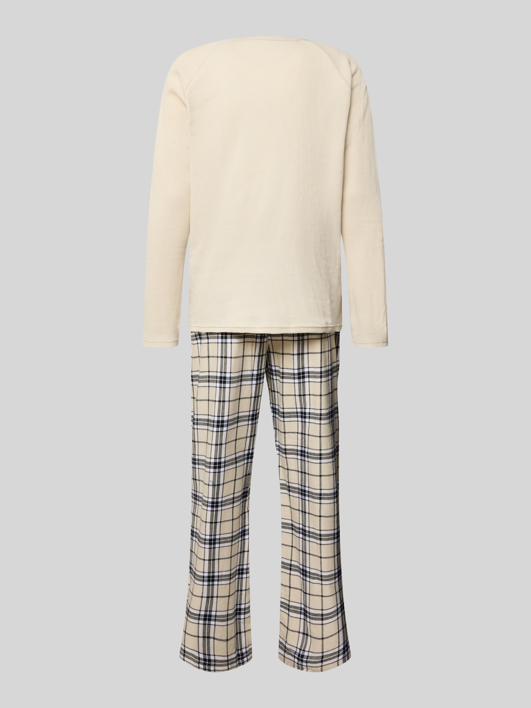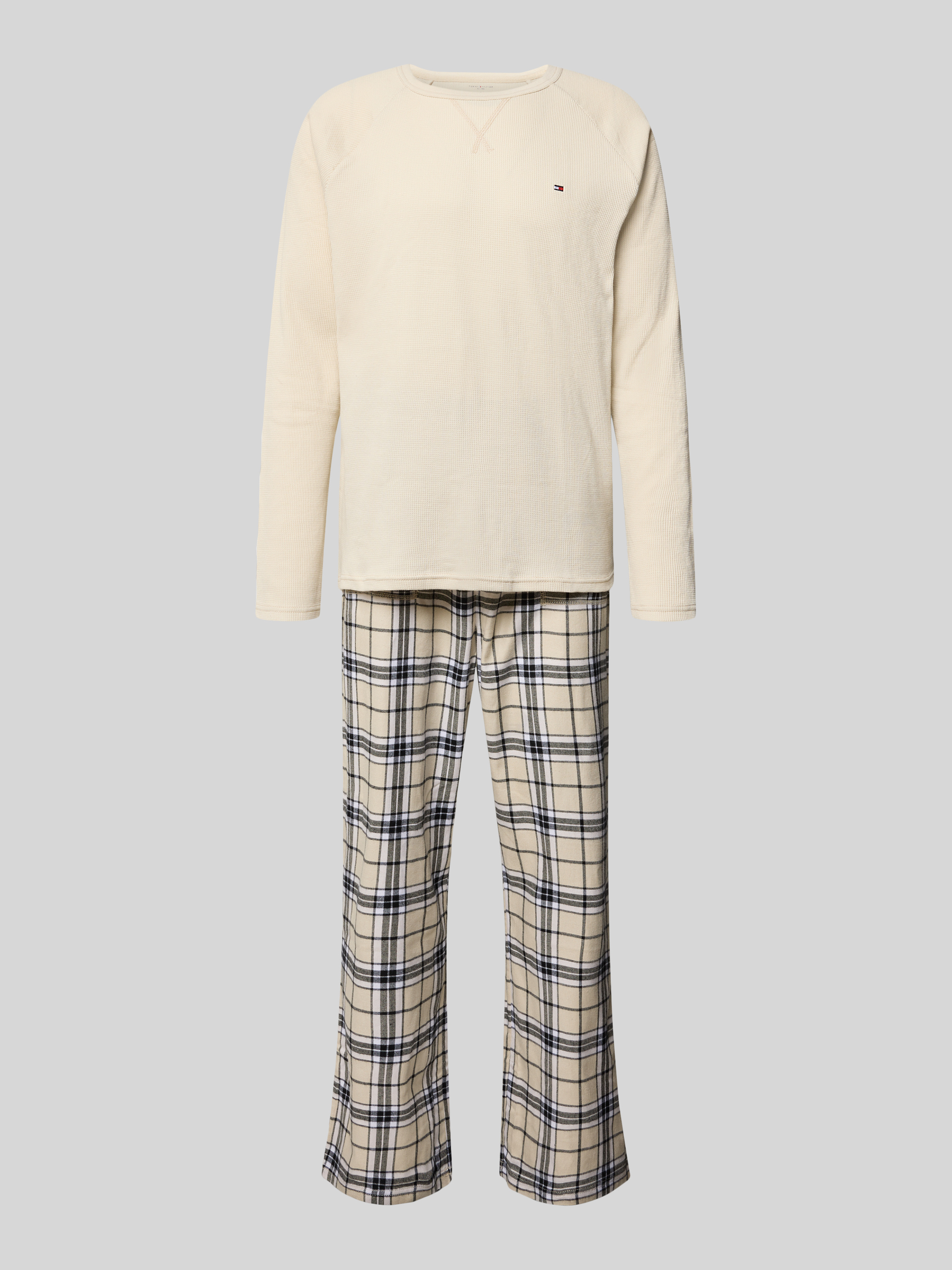 Das Herren Pyjama-Set von Tommy Hilfiger zeigt sich im Regular-Fit-Schnitt und sorgt dank Baumwoll-Mix für ein angenehmes Tragegefühl. Unifarbenes Oberteil mit Waffel-Optik trifft auf eine Hose im Tartan-Muster, während dezentes Logo Stitching Akzente setzt. Integrierte Eingrifftaschen runden das Set alltagstauglich ab.