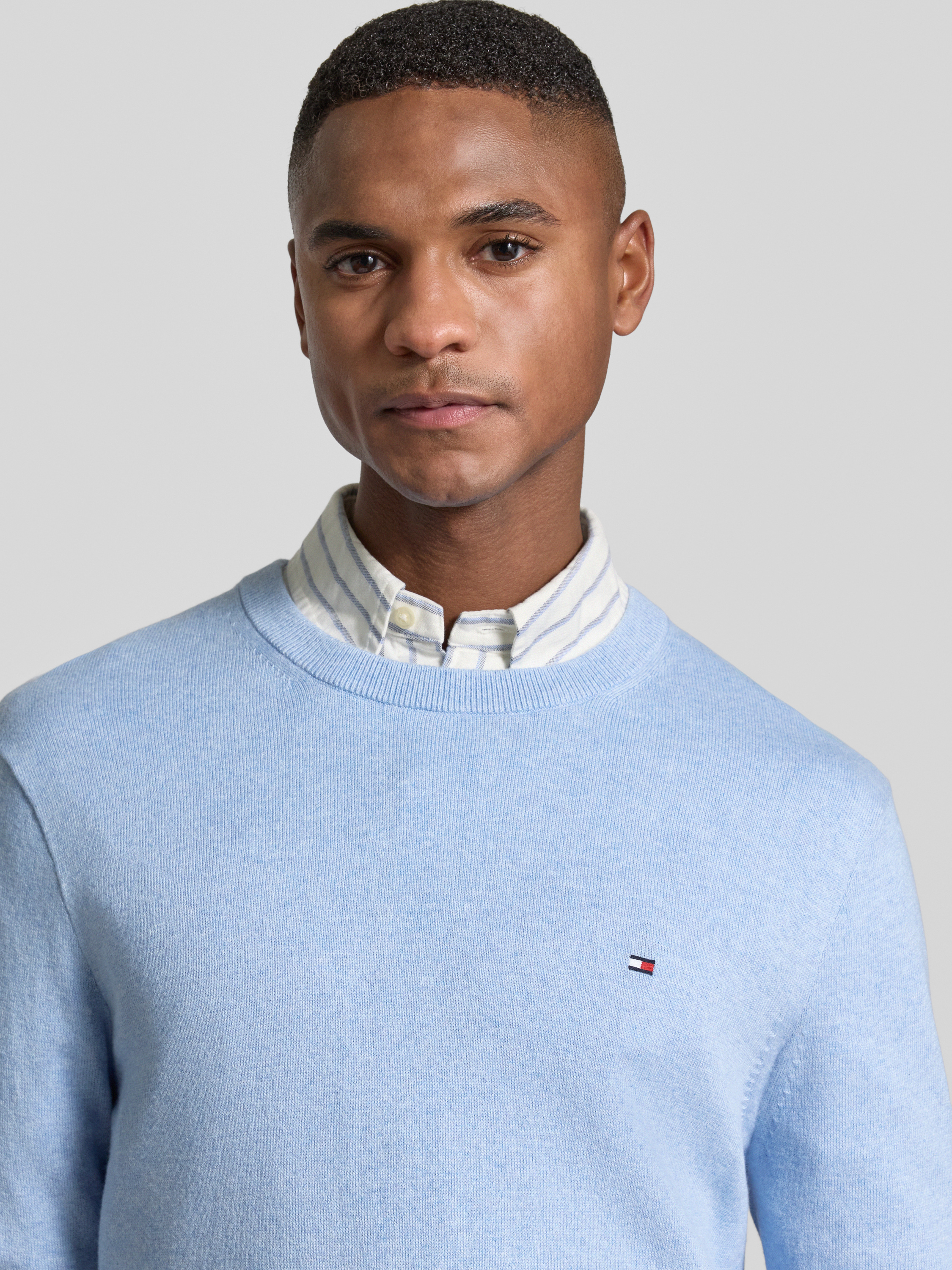 Tommy HilfigerRegular Fit Strickpullover aus Baumwoll-Kaschmir-Mix in hellblau